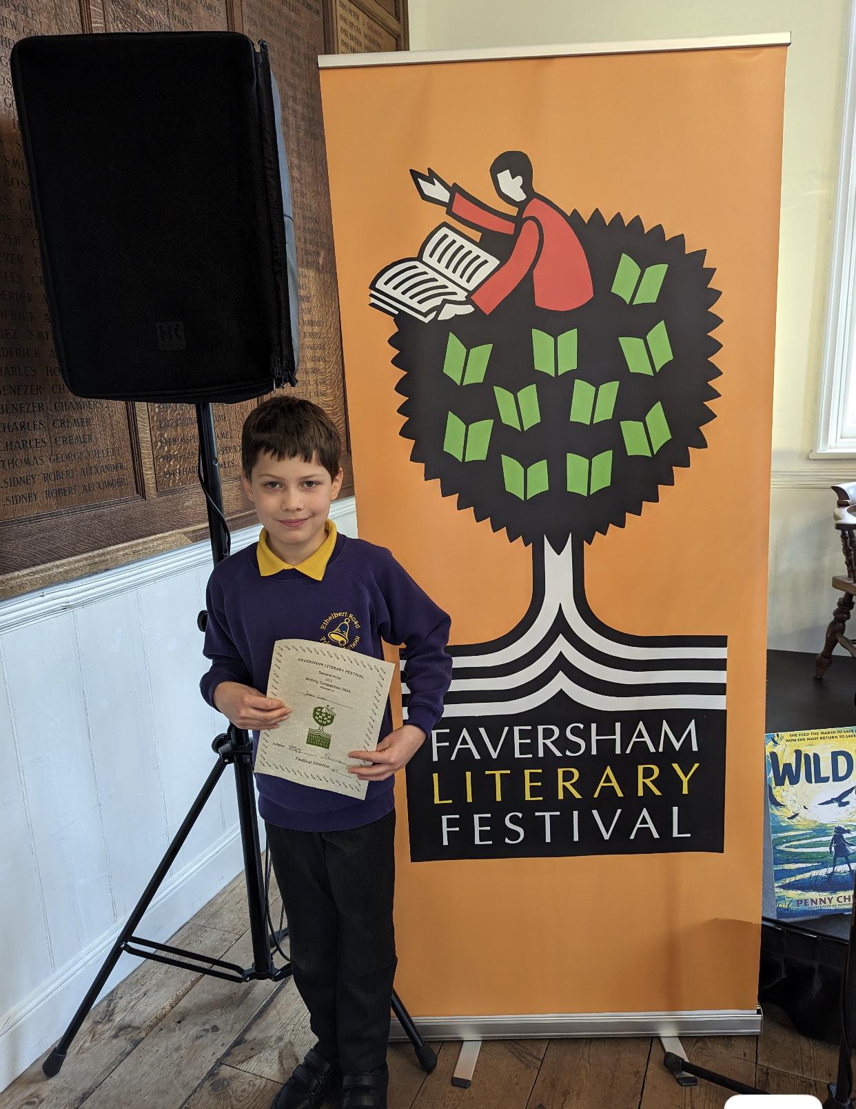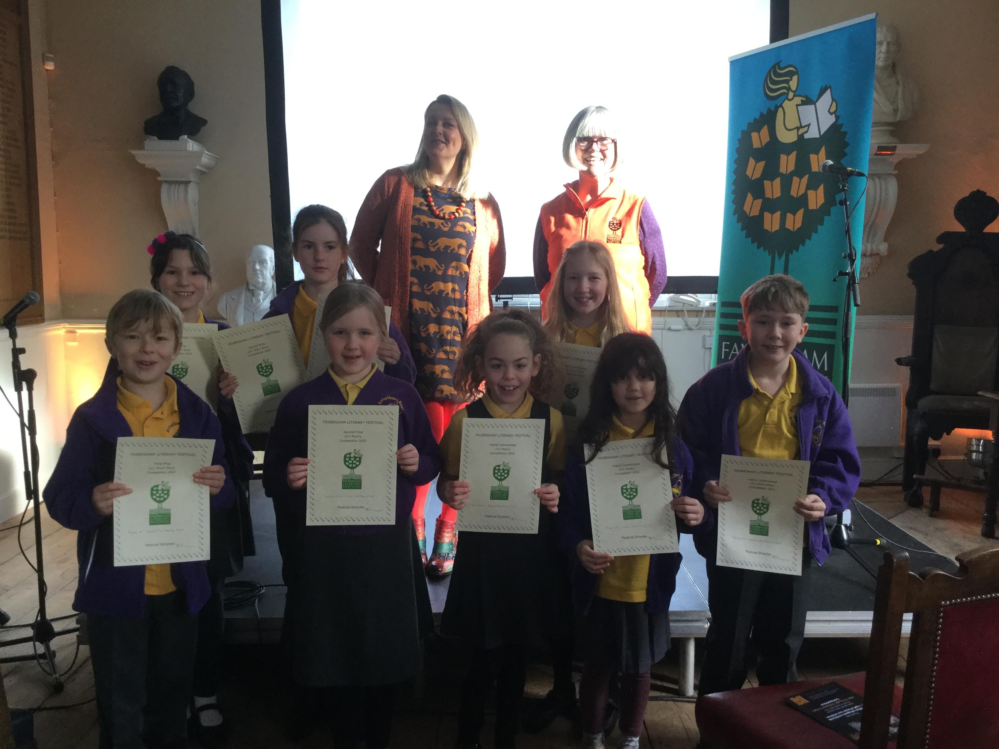 Each year, our children are encouraged to participate in a local creative writing competition run by The Faversham Literary Festival. Every year group submits entries, and we have been highly successful in gaining awards for our children. This year (2022) our children dominated the awards ceremony, with winning entries read by children's author Lucy Strange.
