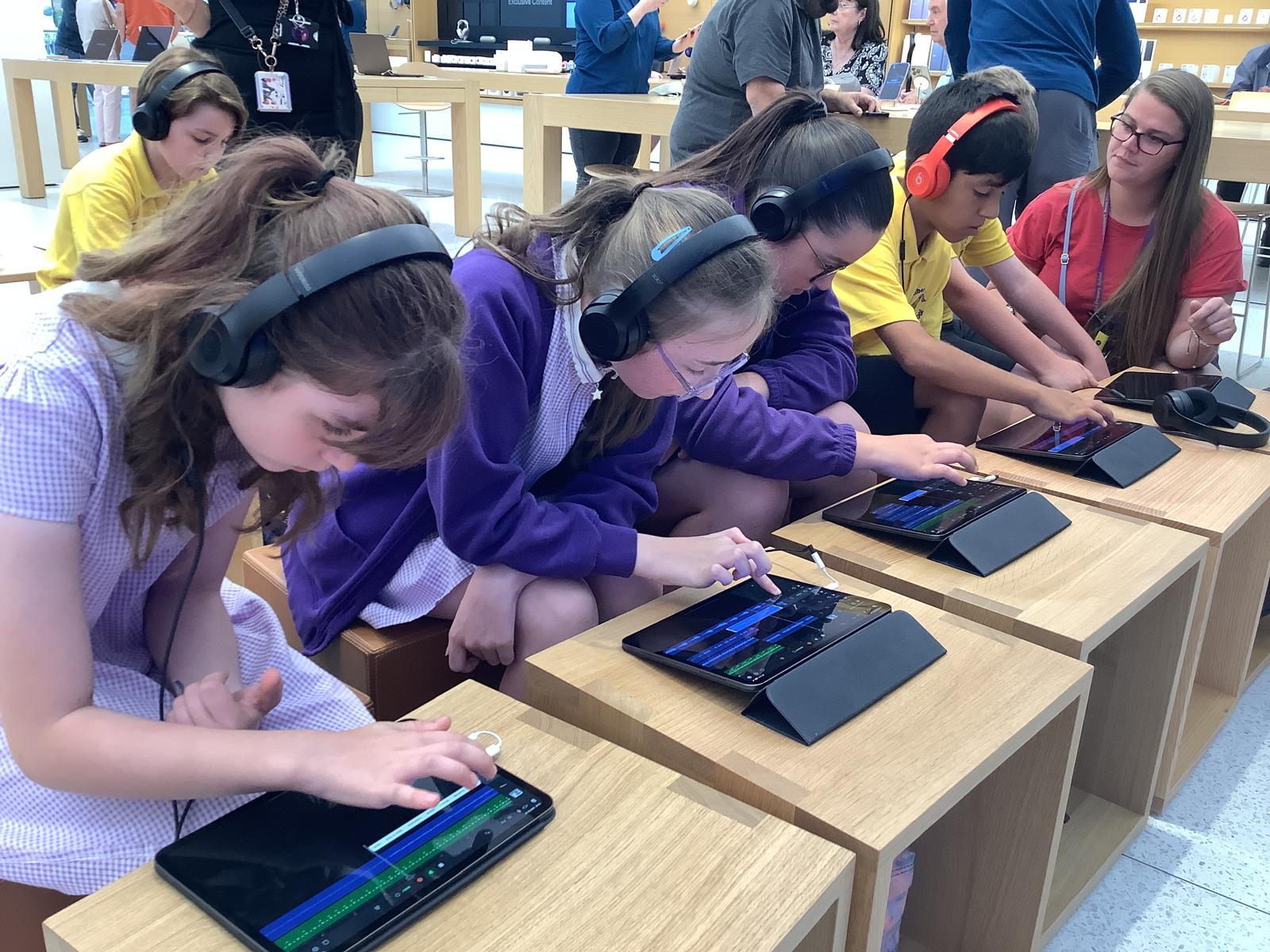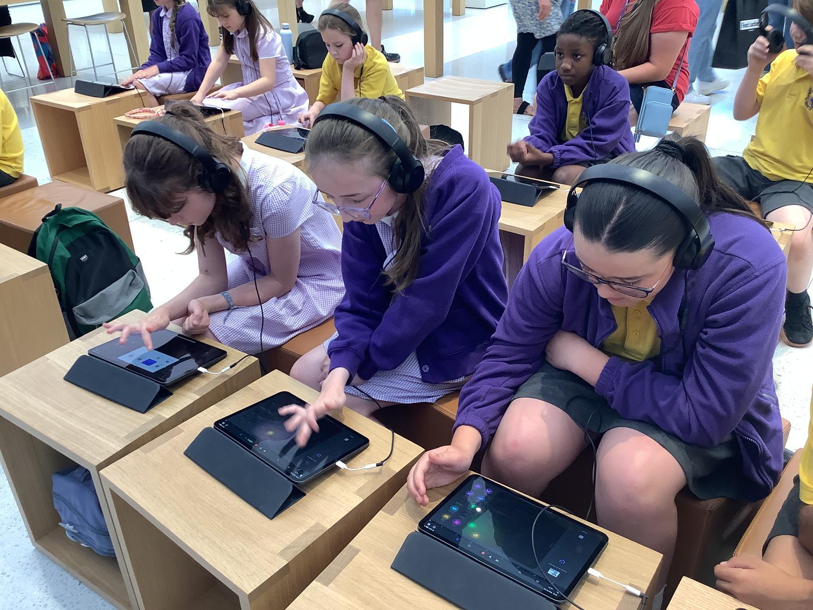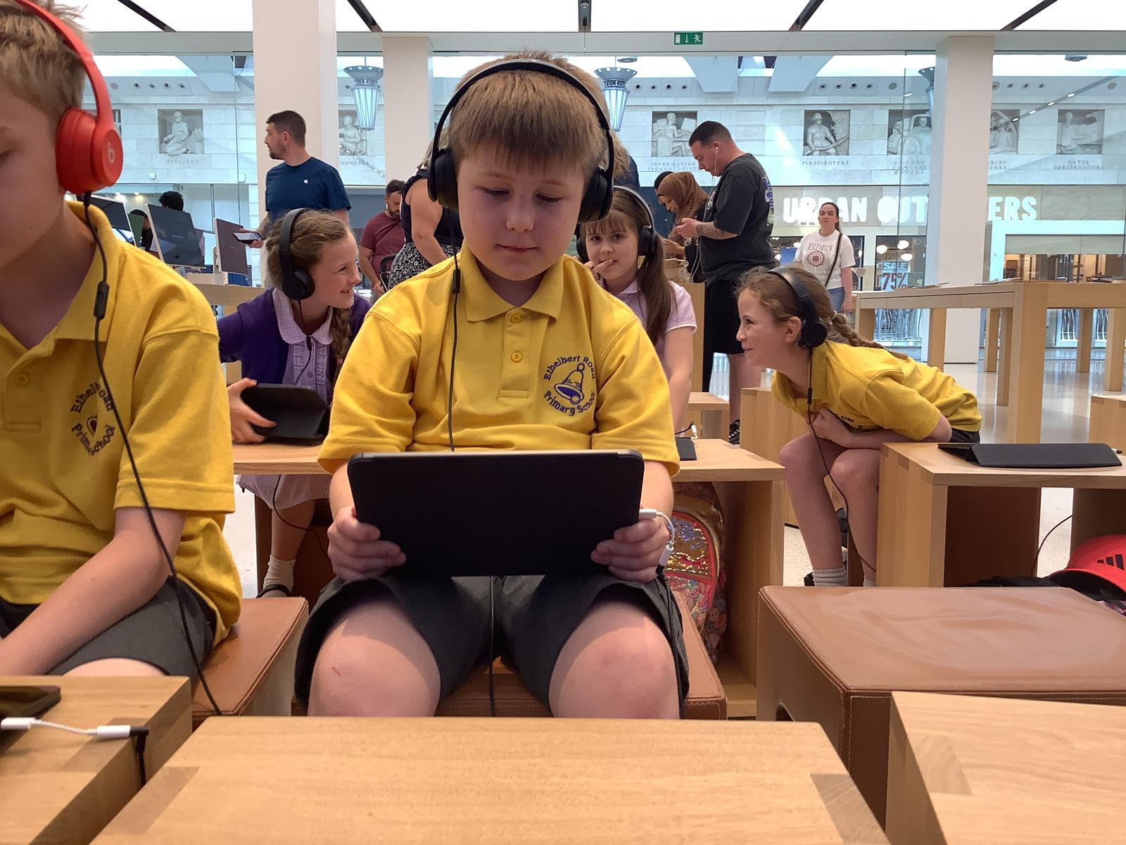 Our current and future Digital Leaders got the chance to visit the Apple Store in Bluewater today for a workshop. They became digital music producers creating their own theme songs using GarageBand, experimenting with different instruments, recording loops and using pre-recorded samples. They had the best time!
