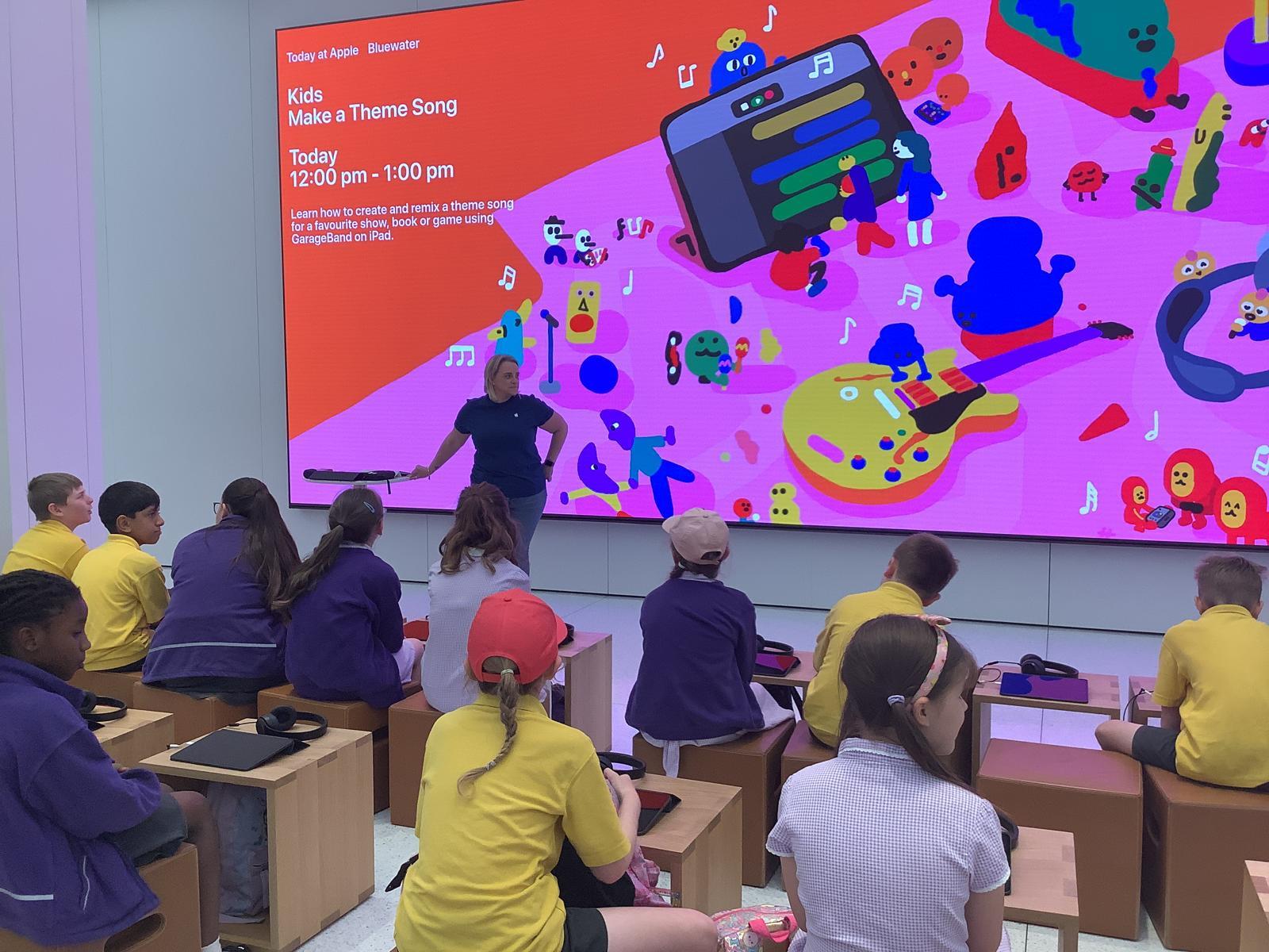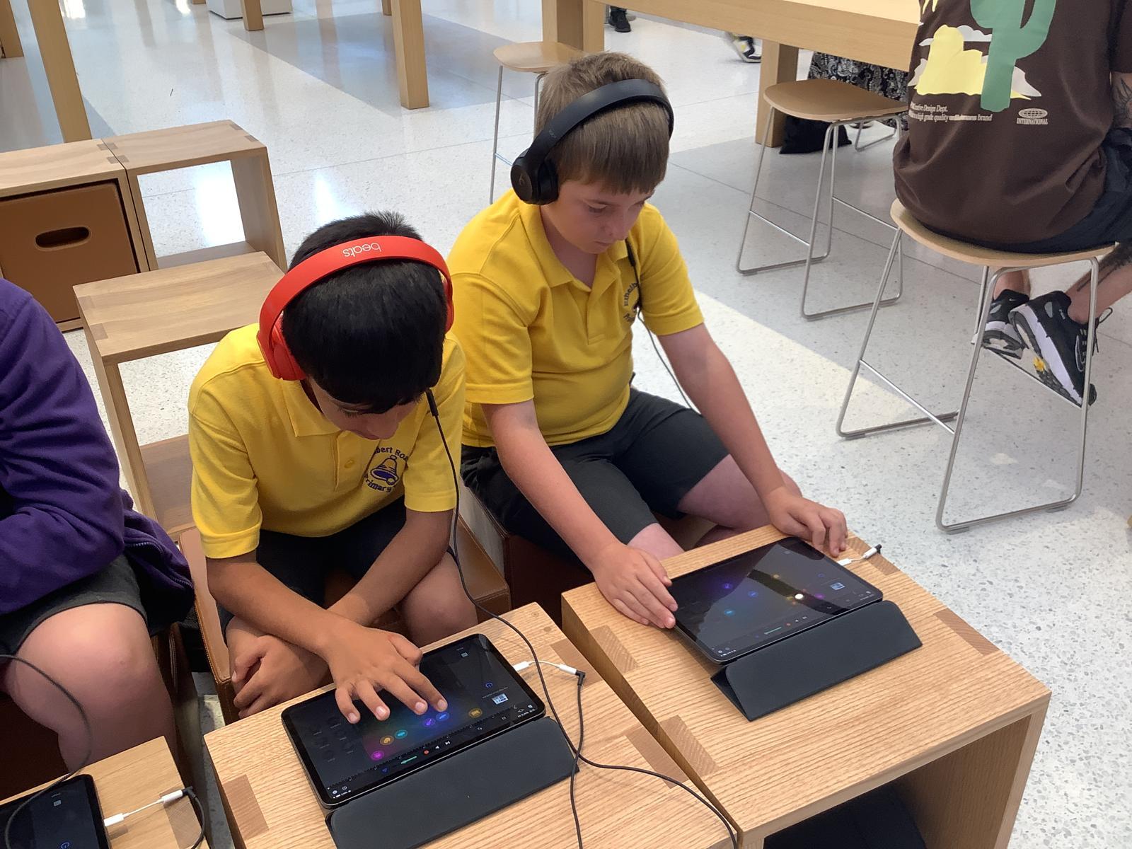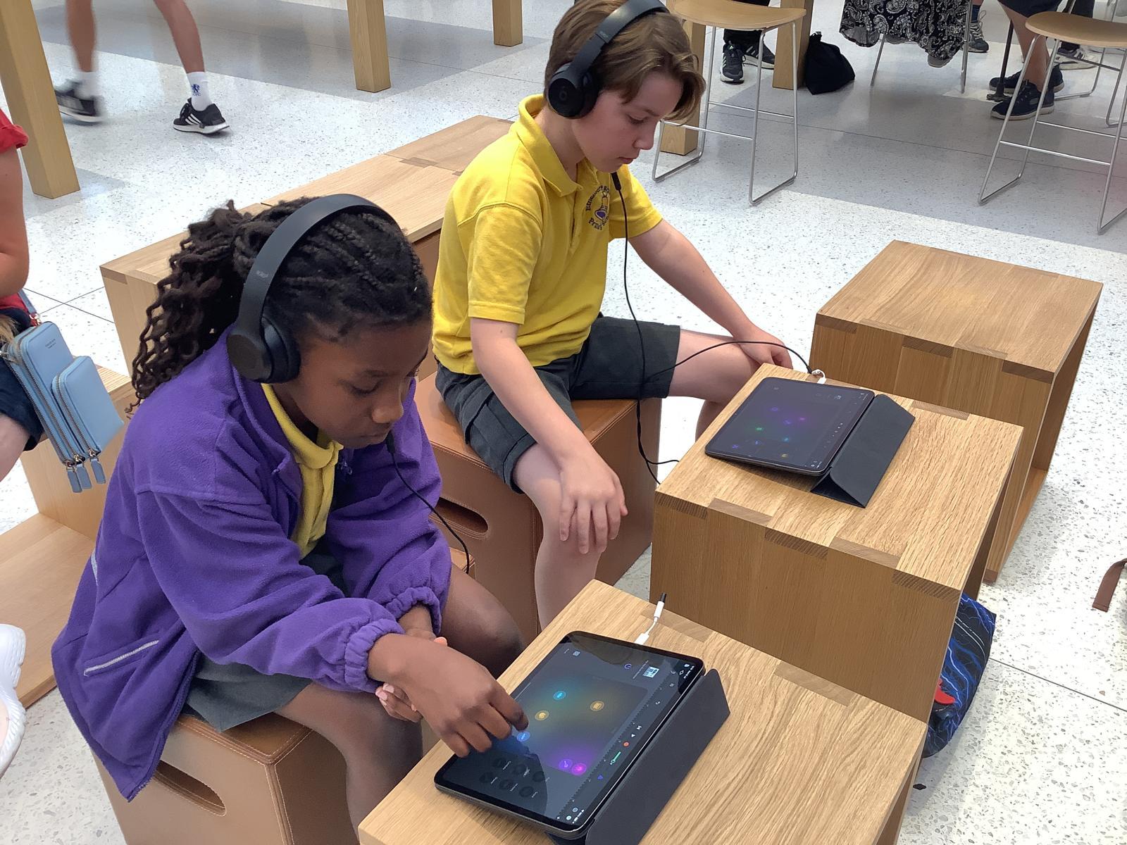Our current and future Digital Leaders got the chance to visit the Apple Store in Bluewater today for a workshop. They became digital music producers creating their own theme songs using GarageBand, experimenting with different instruments, recording loops and using pre-recorded samples. They had the best time!