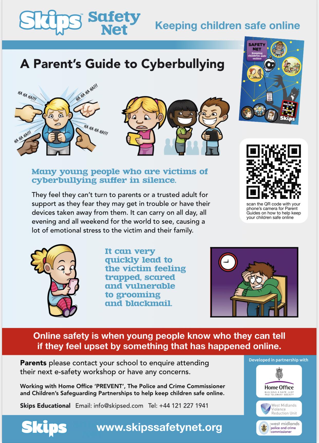 We encourage our children to always be careful when they are using the internet. It can help them to keep in touch with their friends and help their education – but it can also cause harm – to them and to others.