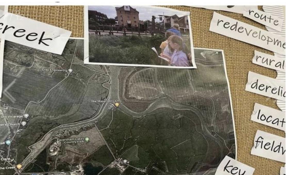In lower KS2 the substantive and disciplinary knowledge of compass points is utilised to support a study of the UK, focusing on regions, counties, landmarks and topography. This study demands analysis and pattern seeking to identify the features of the UK. Further retrieval studies are designed to support conceptual fluency around physical and human features. The children will also undertake a study of Faversham Creek (Year 3). This topic will include a fieldwork visit.