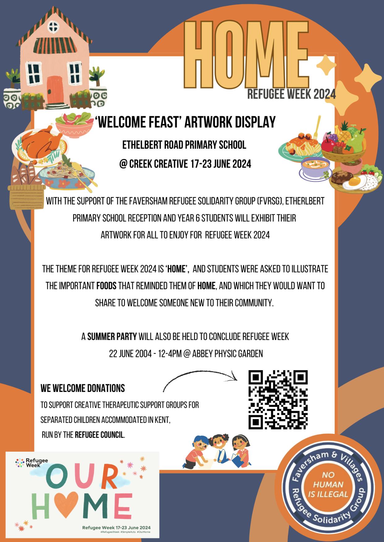 With the support of the Faversham and Villages Refugee Solidarity Group (FVRSG), our Year 6 children and their Year R buddies produced work for Refugee Week linked to the theme of ‘Home’. The children designed a welcome meal and described what it was like to go to school in Faversham. The children’s artwork will be displayed at a fund raising event. A representative from FVRSG stated: ‘Thank you for having us at the session yesterday with the children. It was such a privilege to be there, not only to engage with the children on these important issues but also to witness the skills of the teachers. You must be so very proud!’