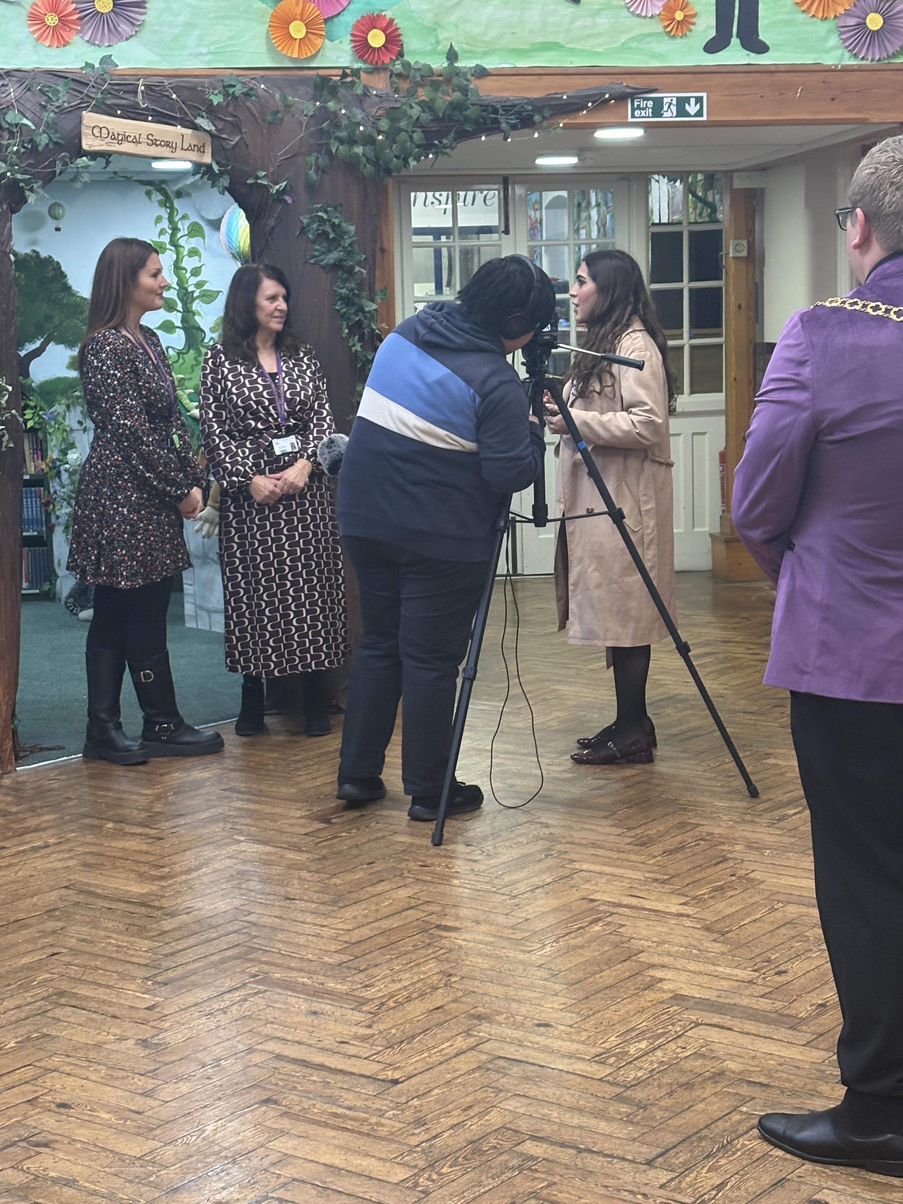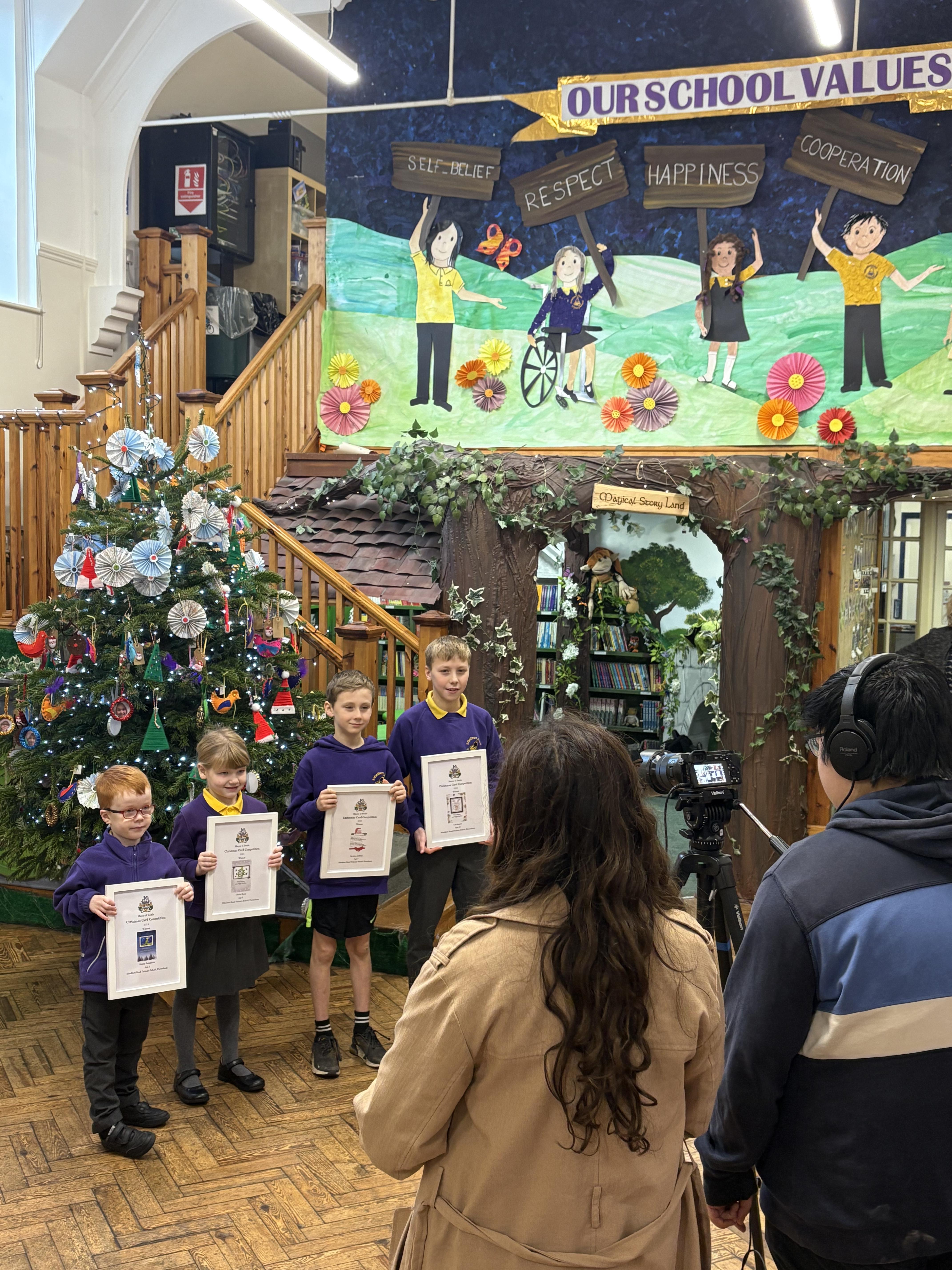 Ethelbert Road had an exciting Thursday morning when a TV reporter and film crew for KMTV - KentOnline's TV station came to film. They had seen the Mayor of Swale’s Christmas card competition write up on BBC South East and wanted to cover the story. They spoke to the children, the Mayor and two staff. We will send out the link when it airs.