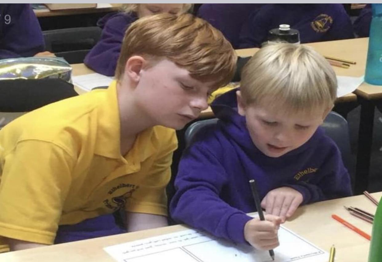 ‘WEKIND is all about kindness and support. This means supporting your friends and helping whenever. Classes will be rewarded for random acts of kindness. Adam and Will (Year5).