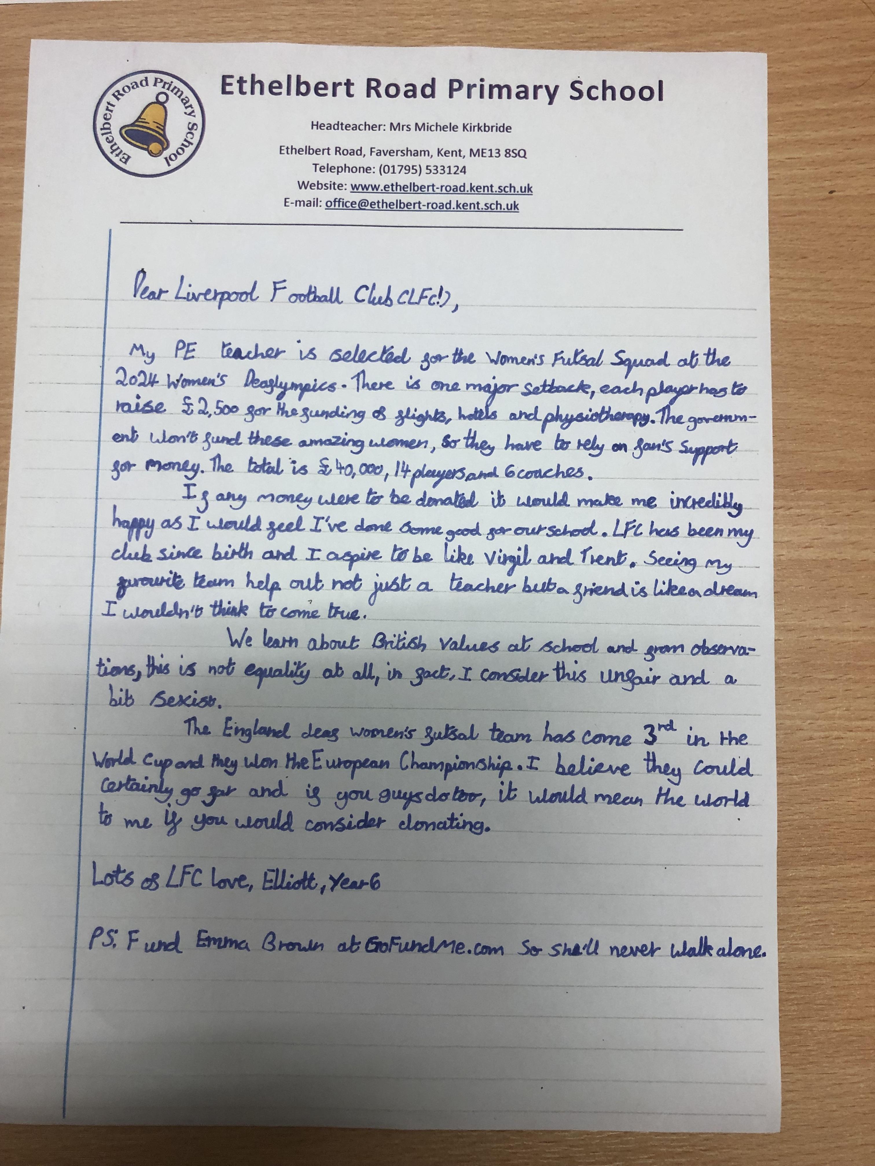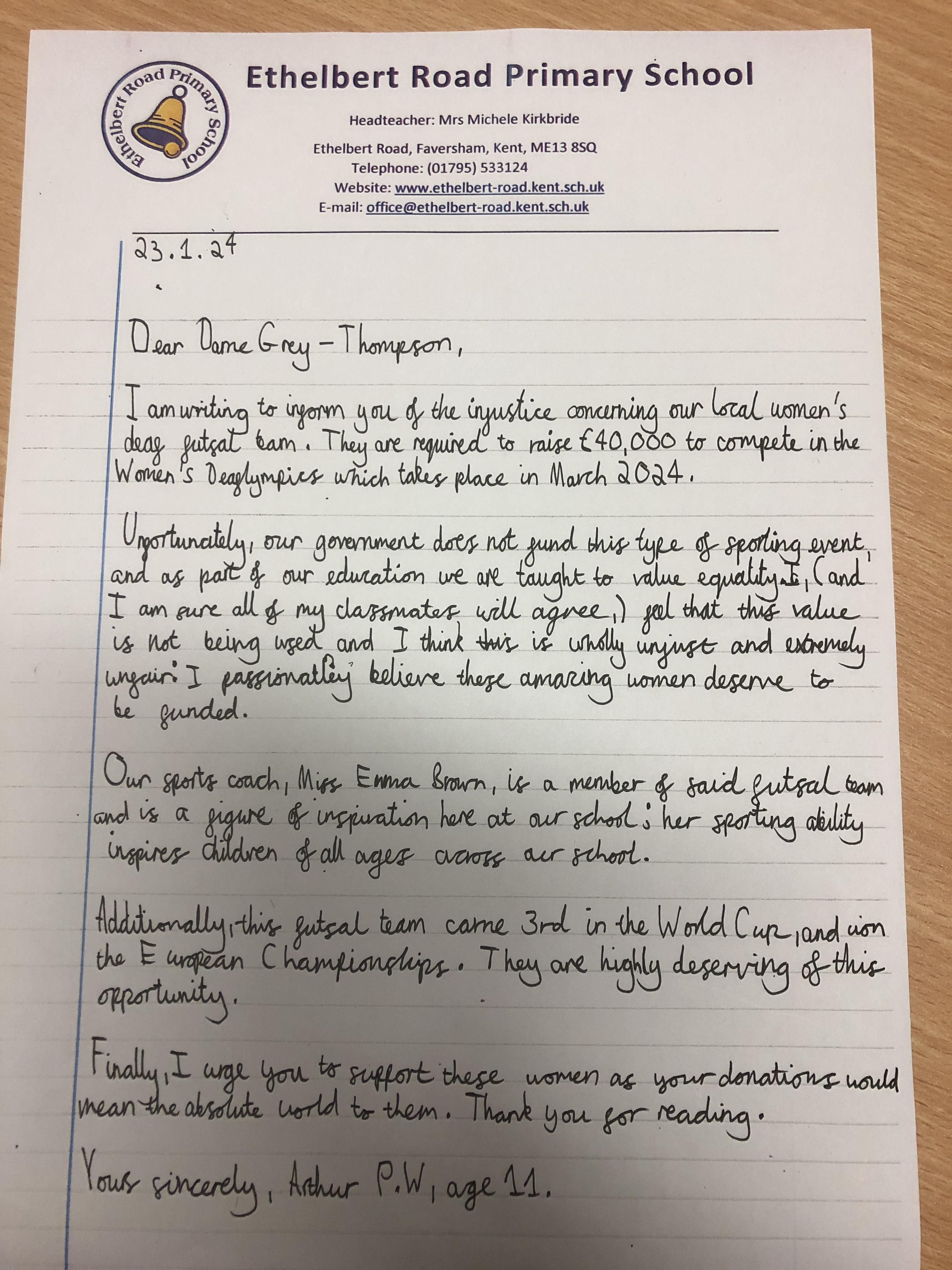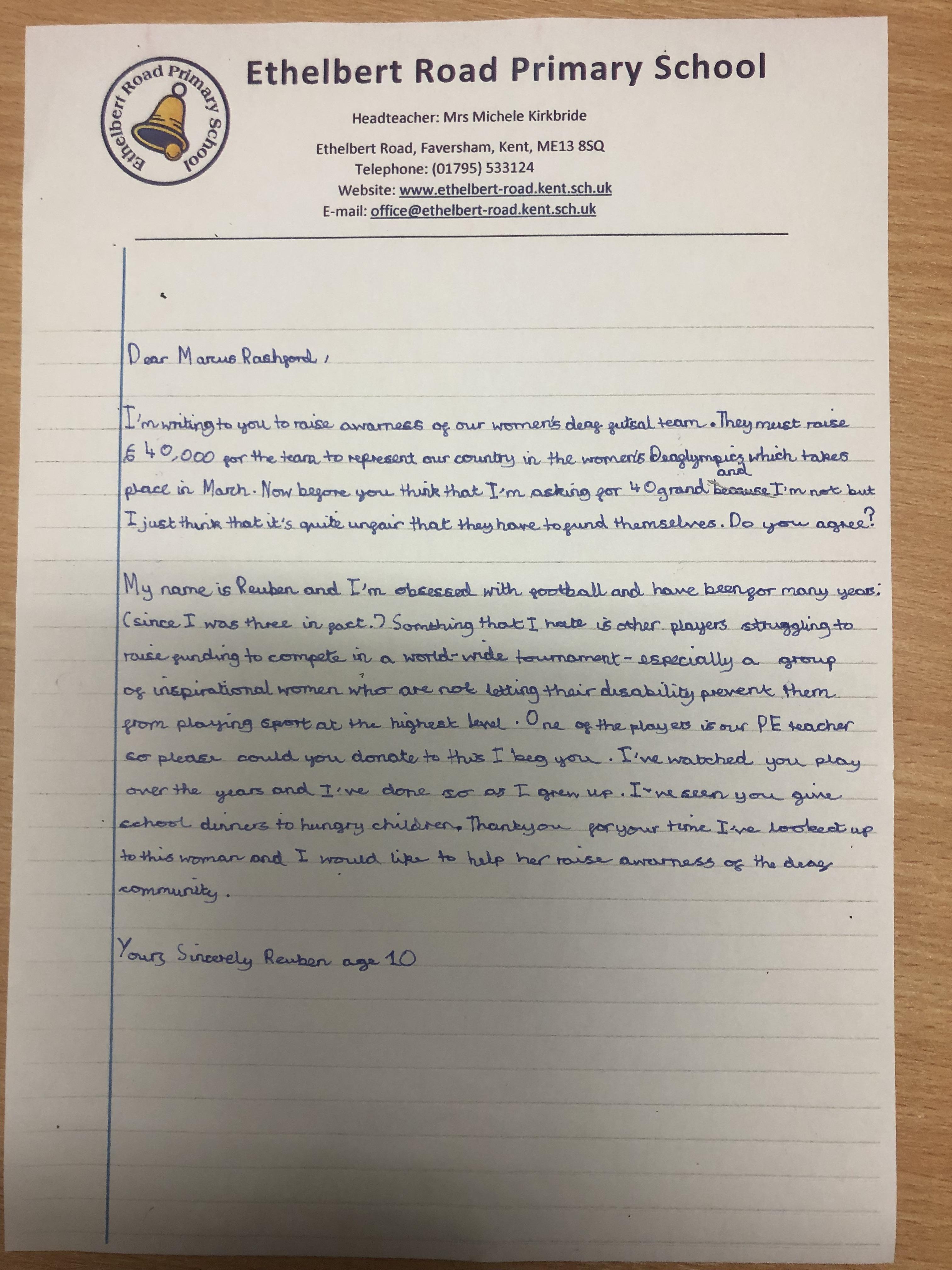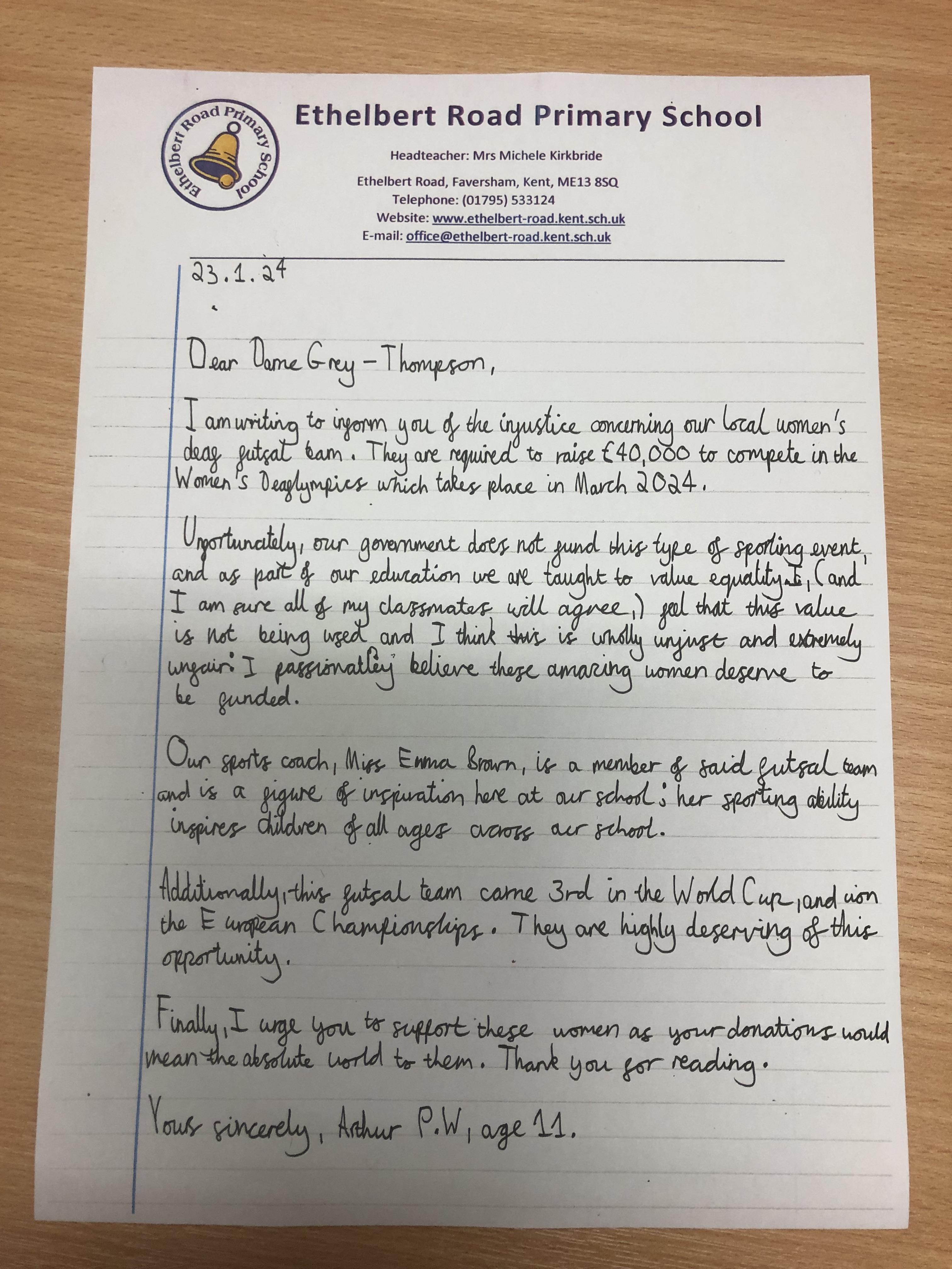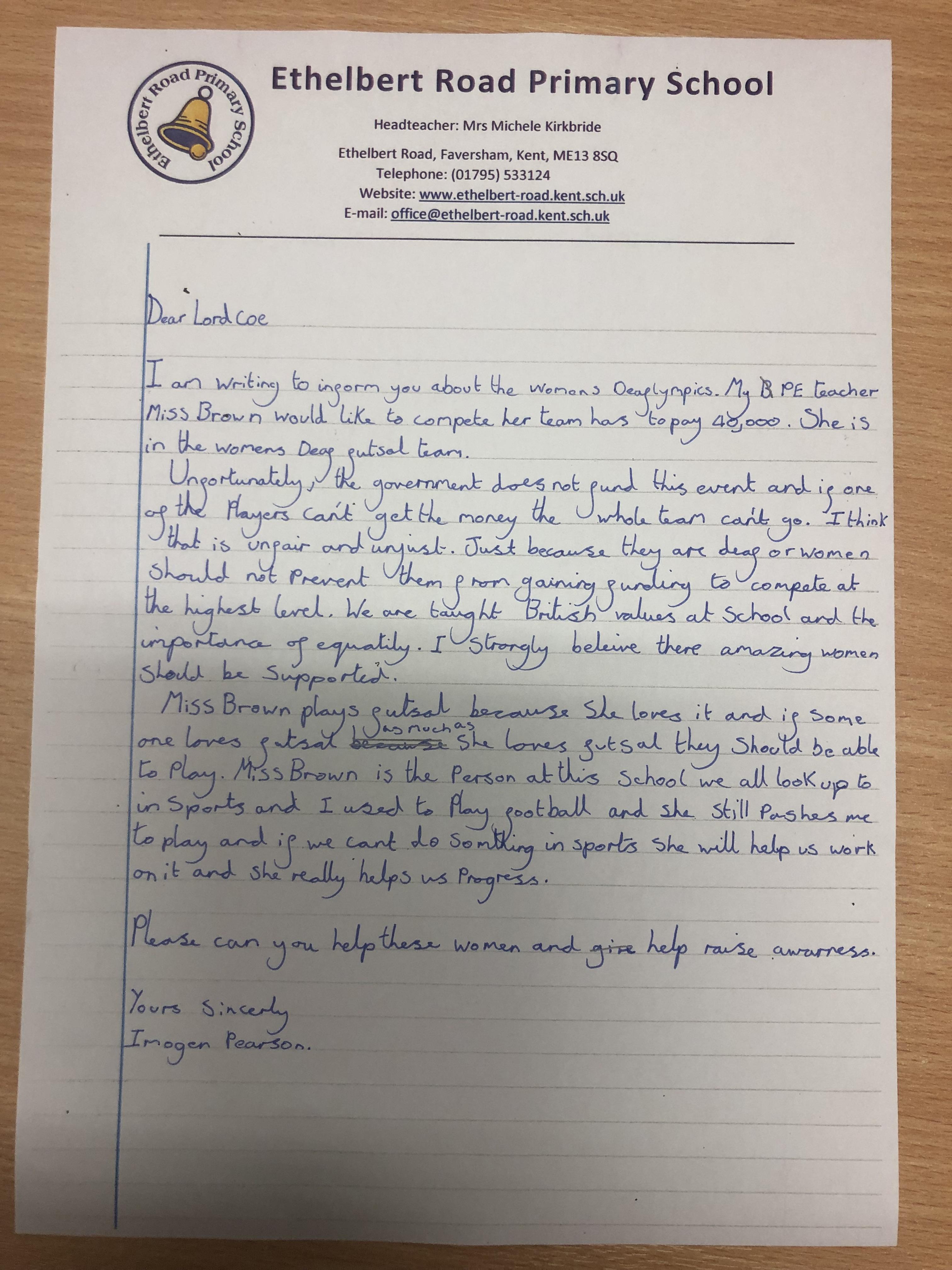 Our amazing Year 6 children have written to sporting heroes to inform them of Miss Brown and the GB Futsal teams fight to get to the Deafolympics. They were shocked to find out that the team players must raise the funds needed to go to this event, even though they are representing Great Britain! The children linked this to the British Value of Equality and felt this value was not being used by the government in this case. Here are some of their powerful letters.