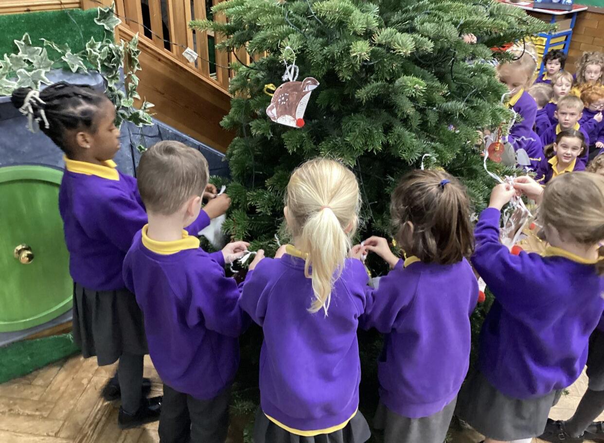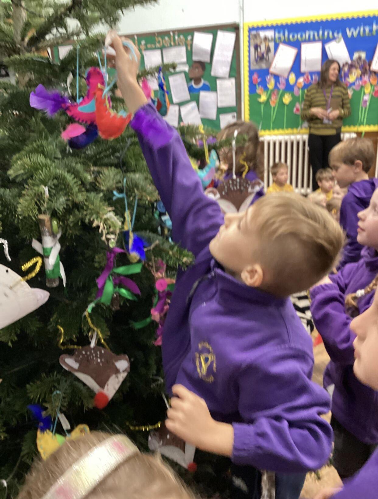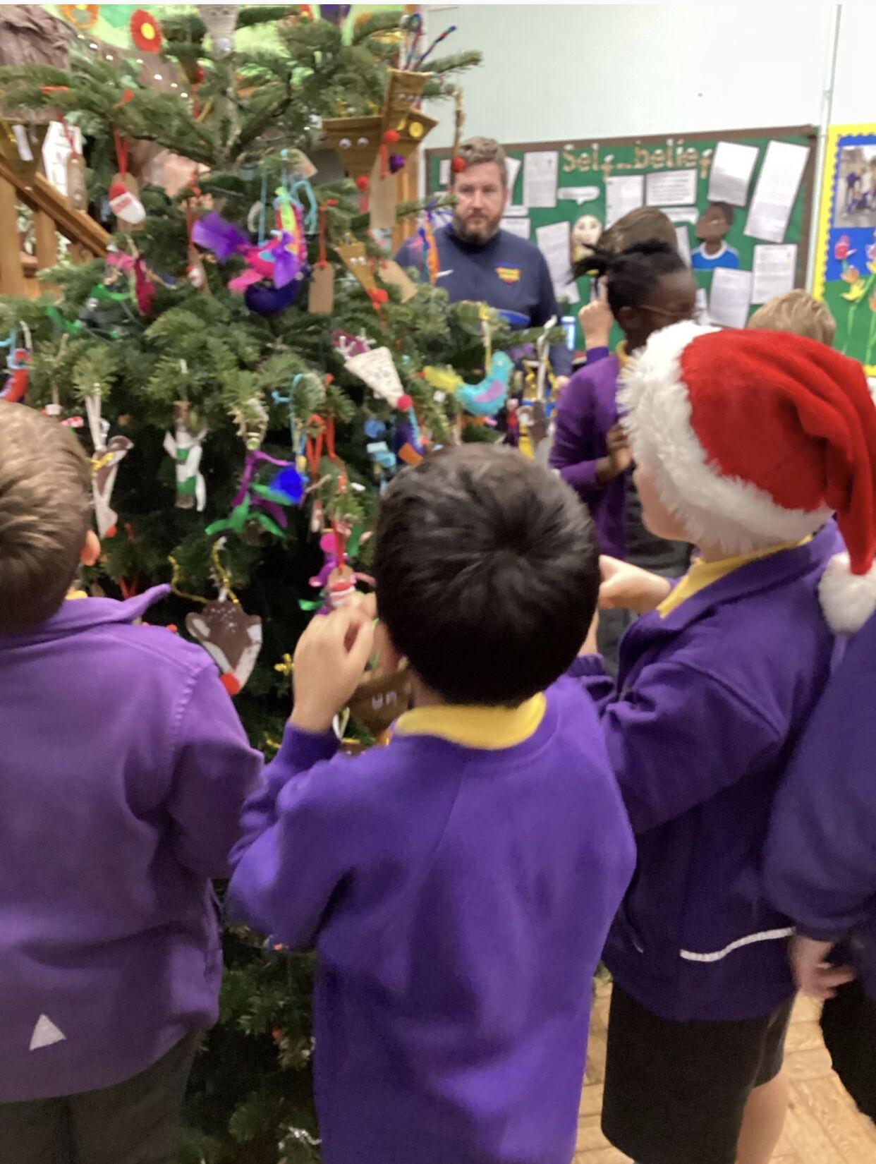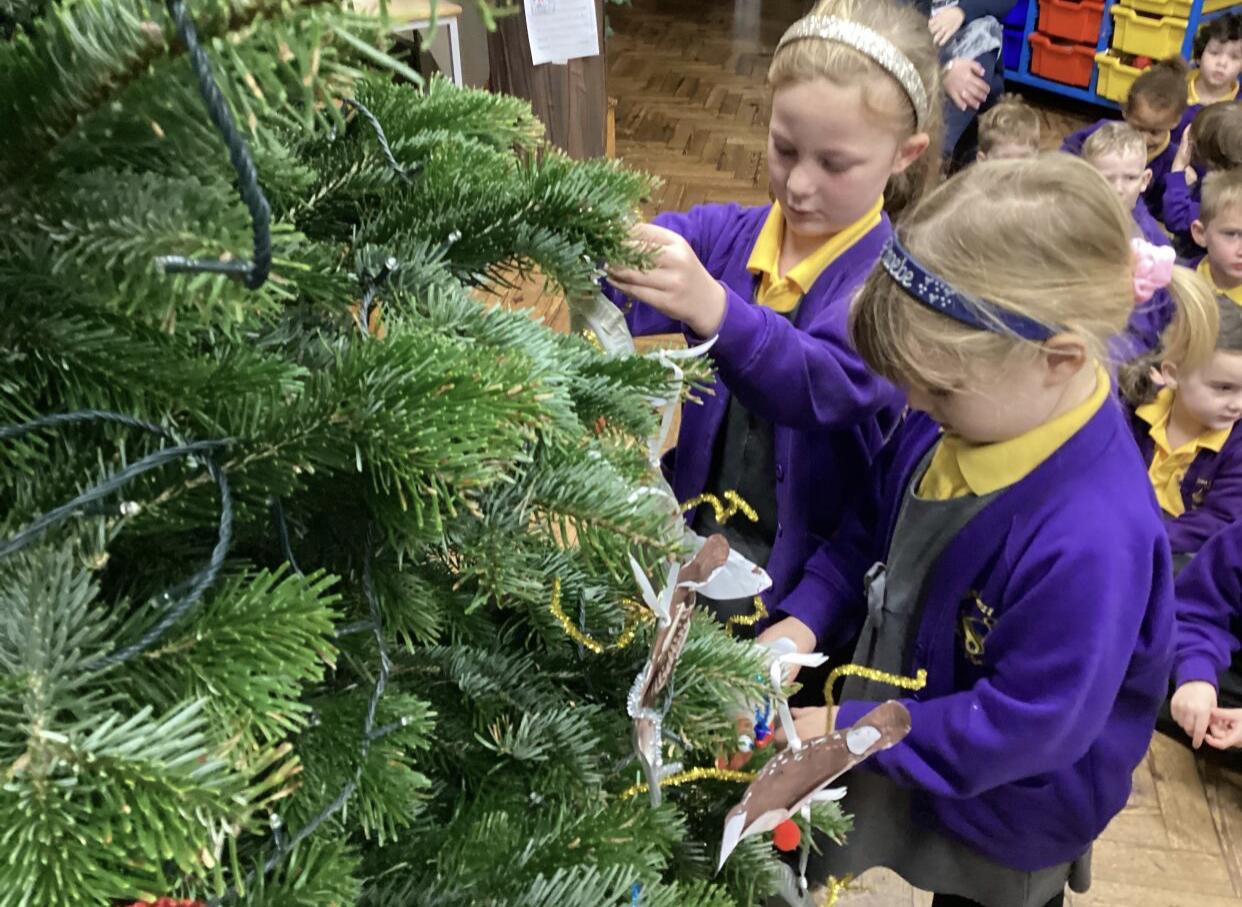 Ethelbert Road held their annual Christmas Tree Assembly today. The children came together in the hall to hang their decorations on the tree and to sing some festive songs. In good old Ethelbert tradition the youngest and oldest child in the school switched on the lights
