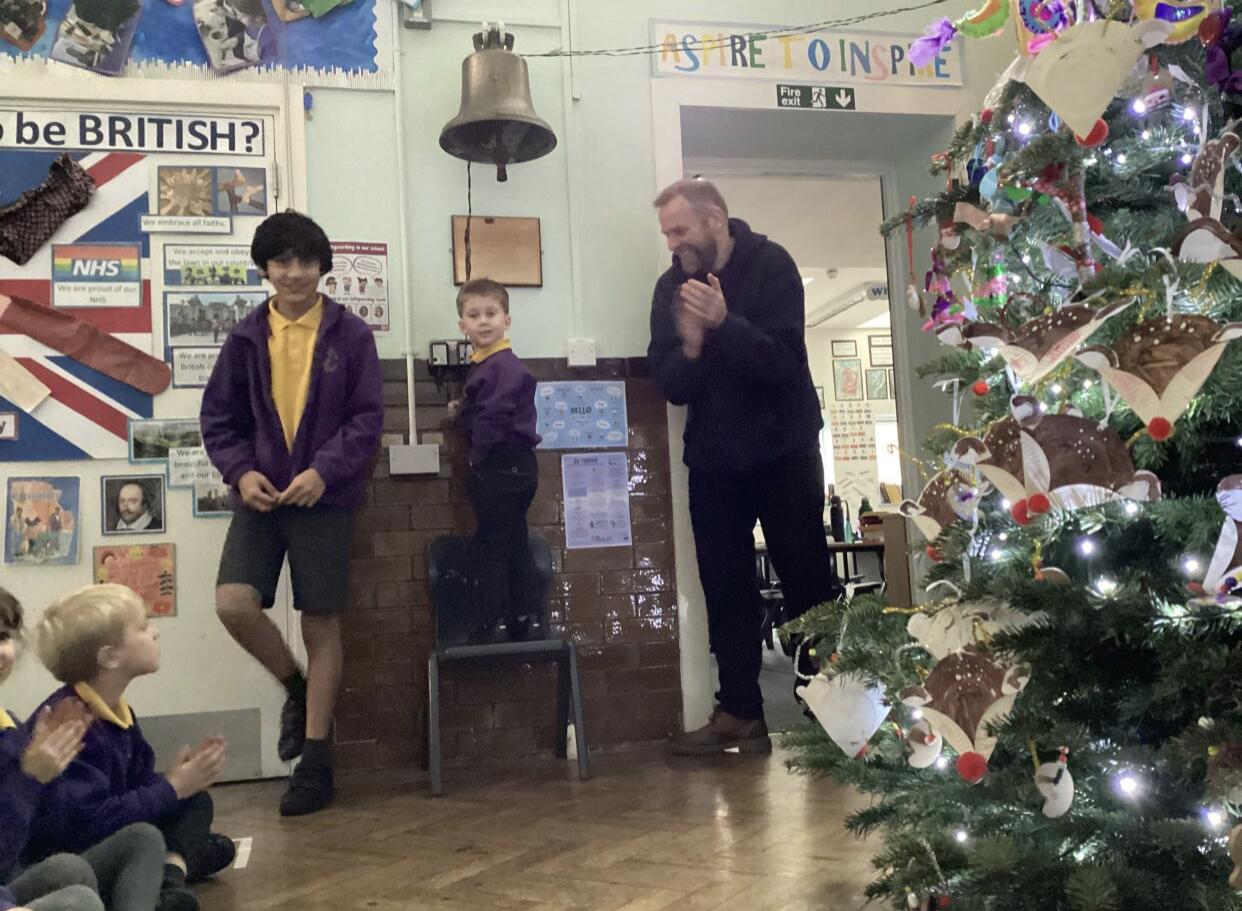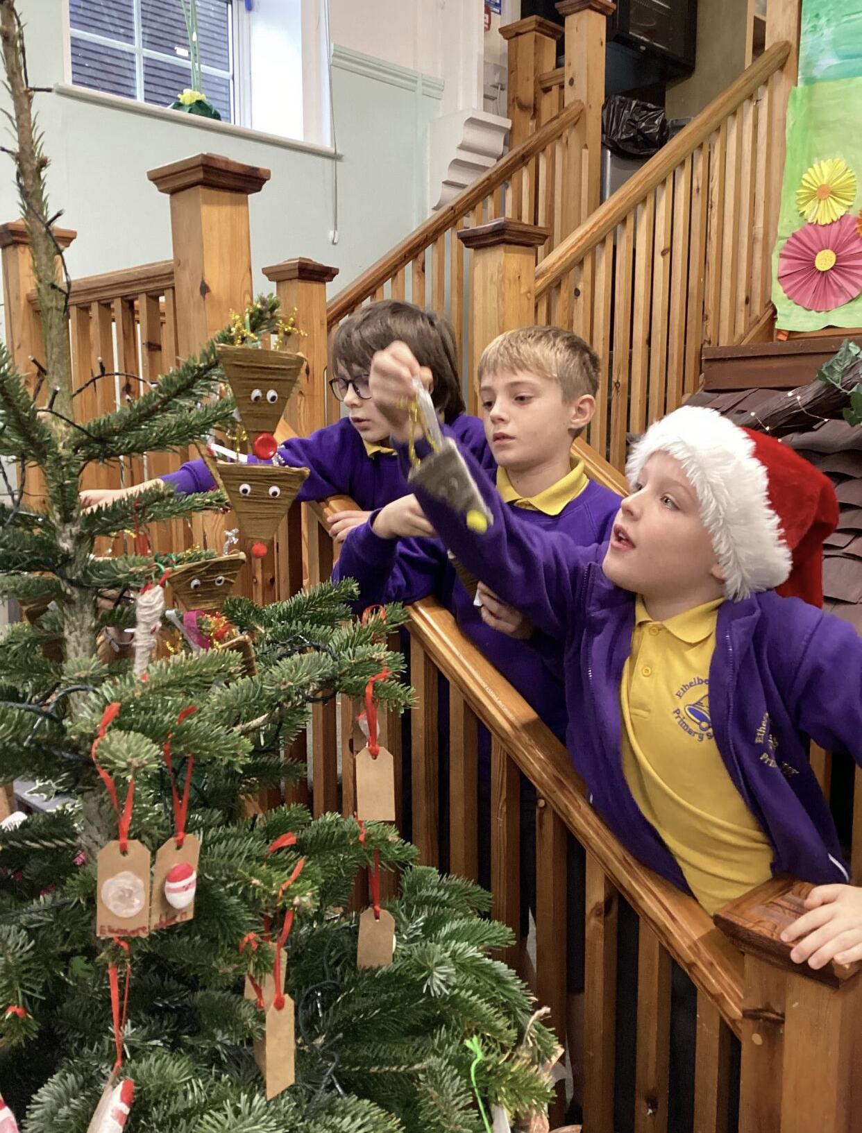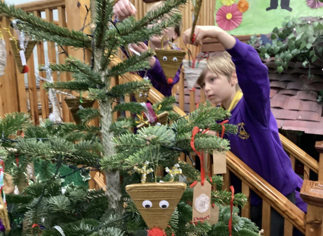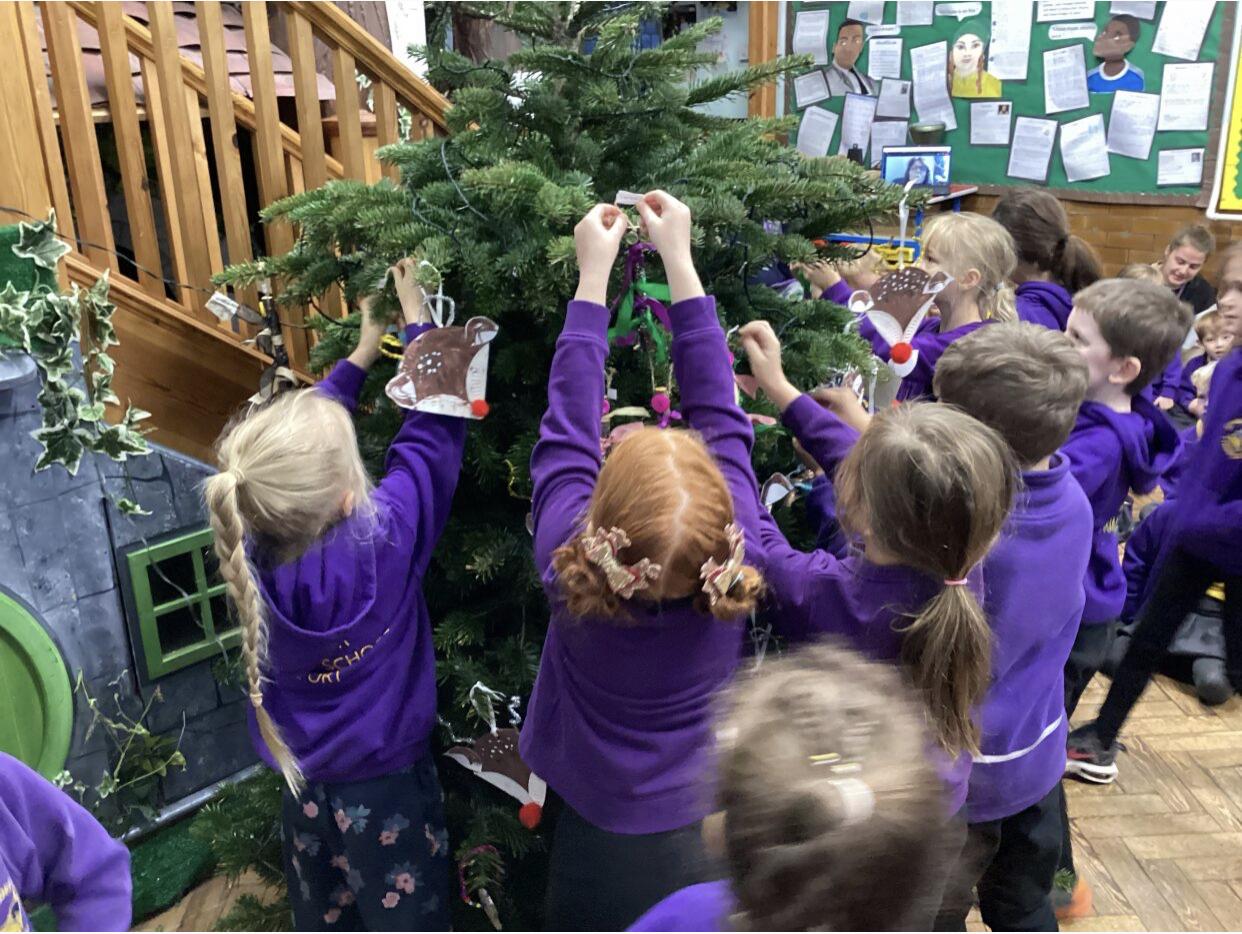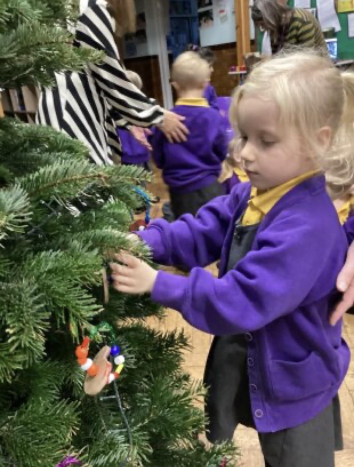 Ethelbert Road held their annual Christmas Tree Assembly today. The children came together in the hall to hang their decorations on the tree and to sing some festive songs. In good old Ethelbert tradition the youngest and oldest child in the school switched on the lights