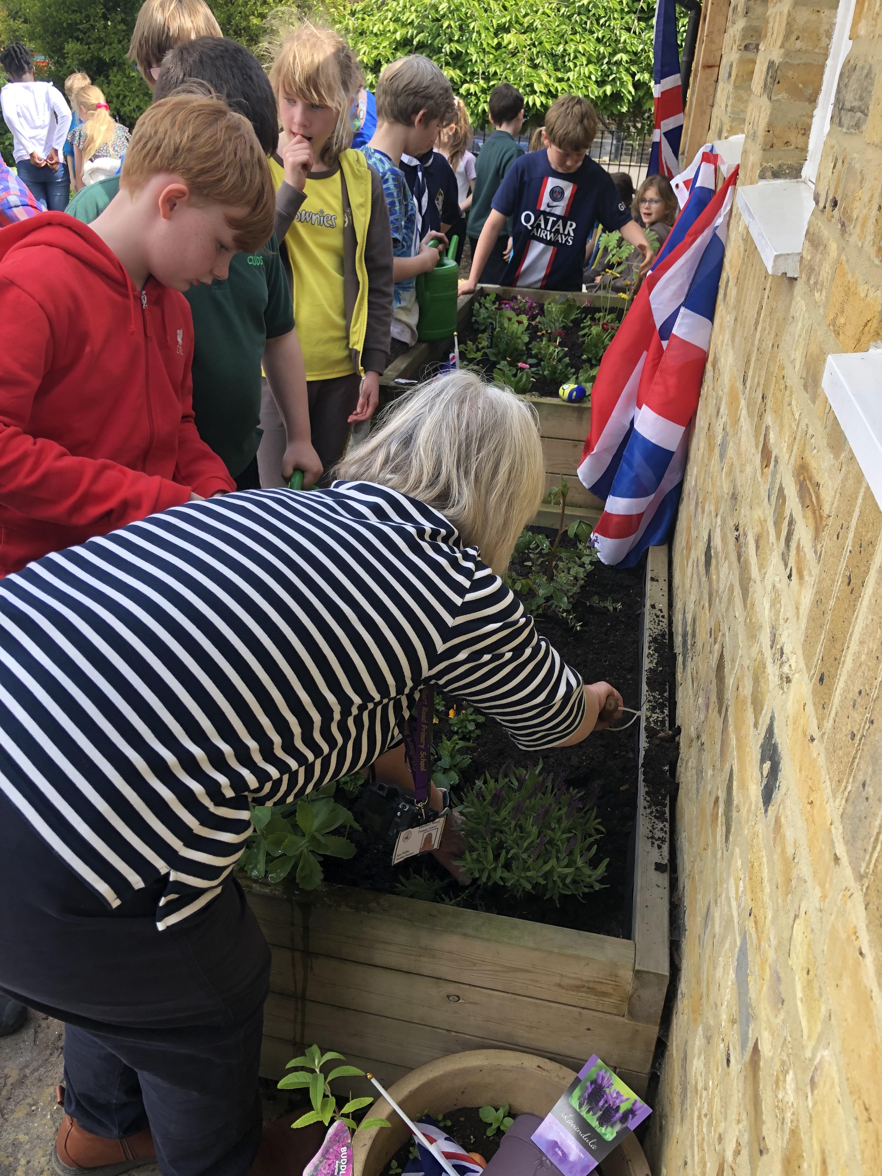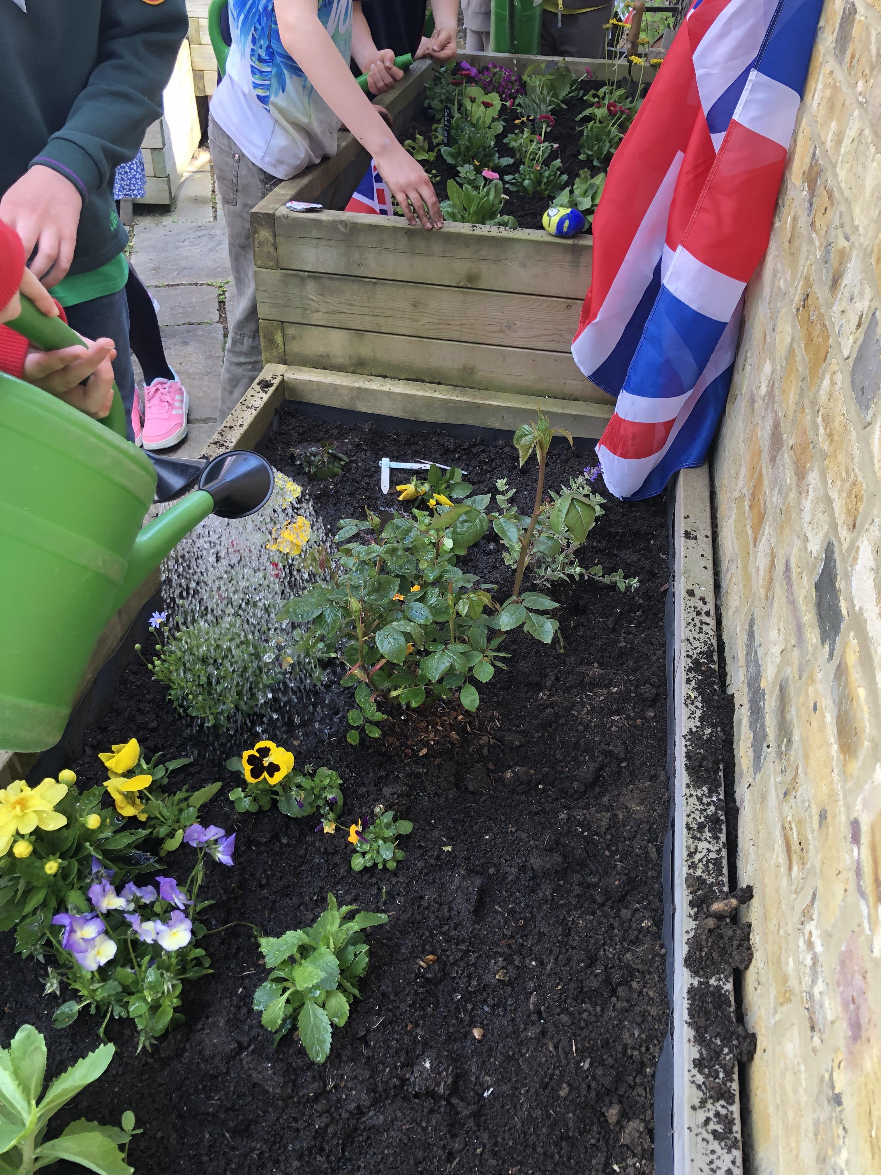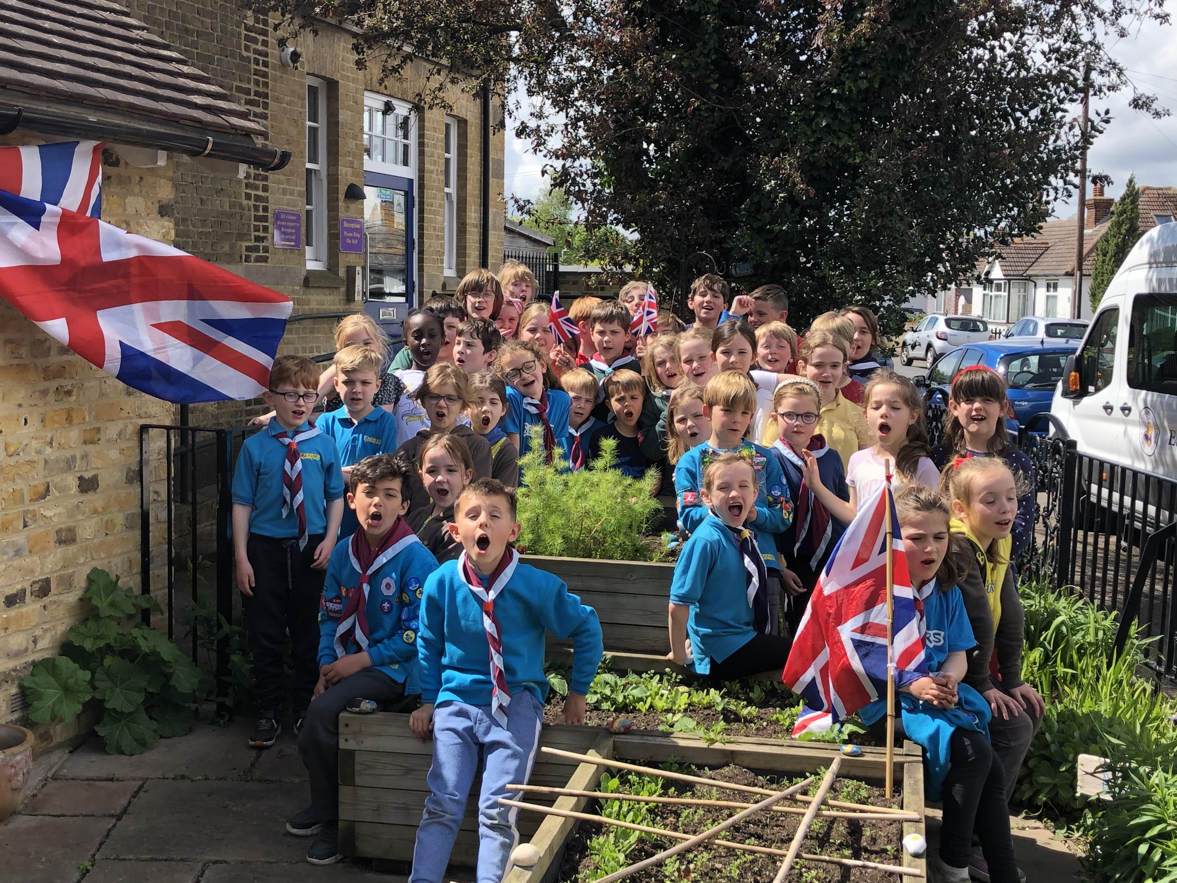Ethelbert Road celebrated the Kings coronation yesterday with a special assembly. The Scout, Guide, Cub and Brownie community planted a special Coronation bed designed by James in Year 3, we created a whole school picture using our finger prints, and each child received a commemorative medal.