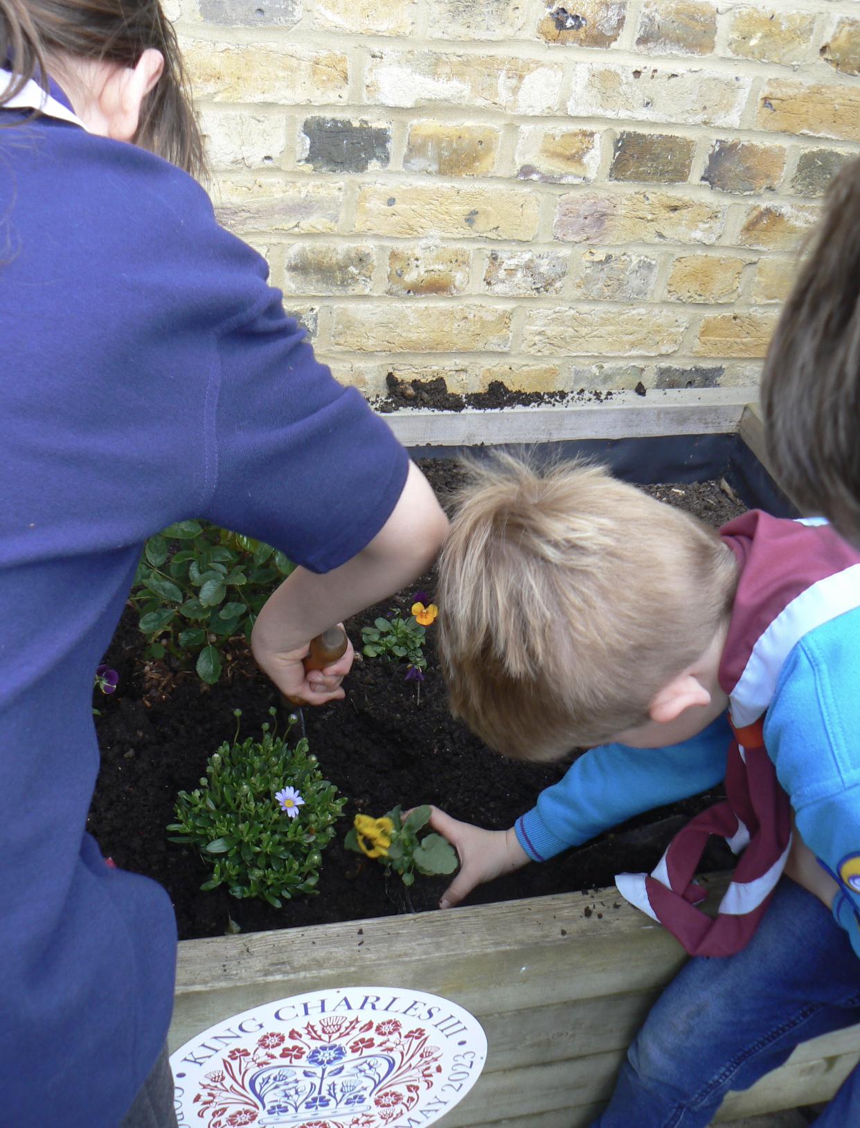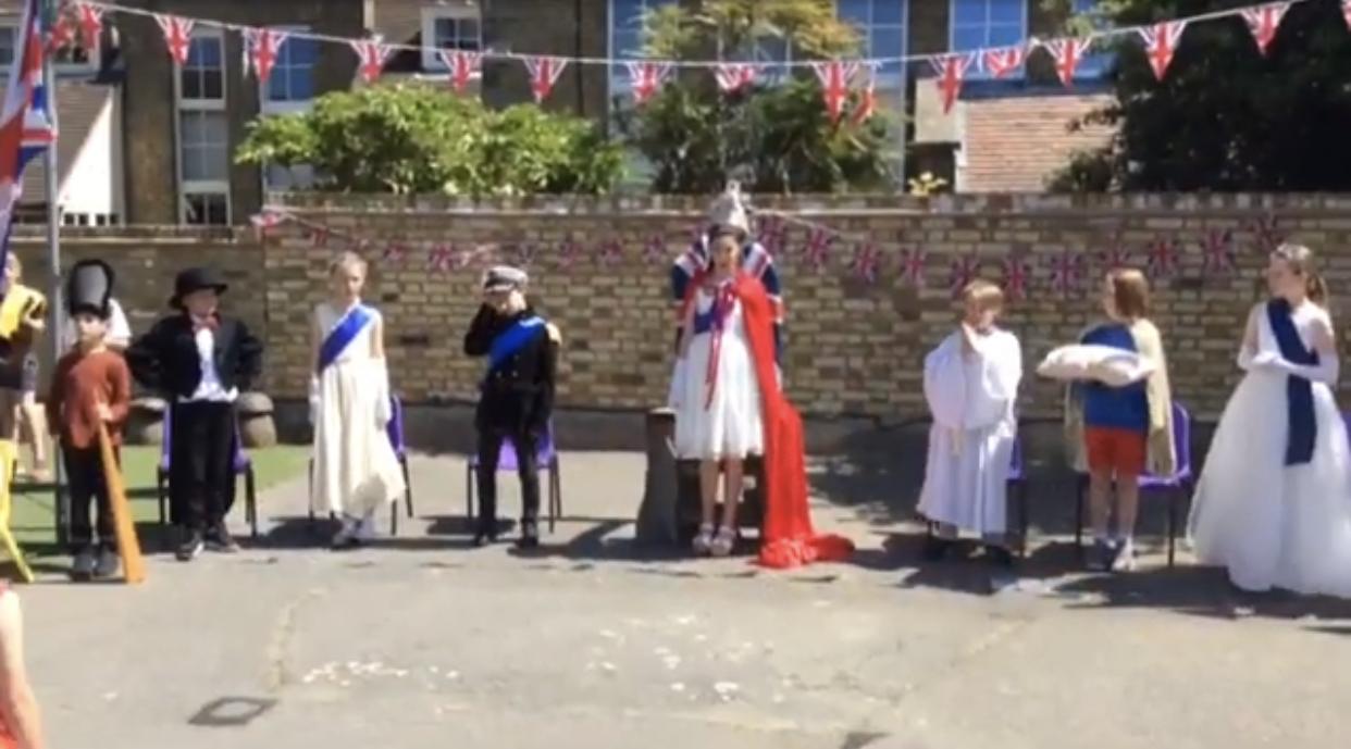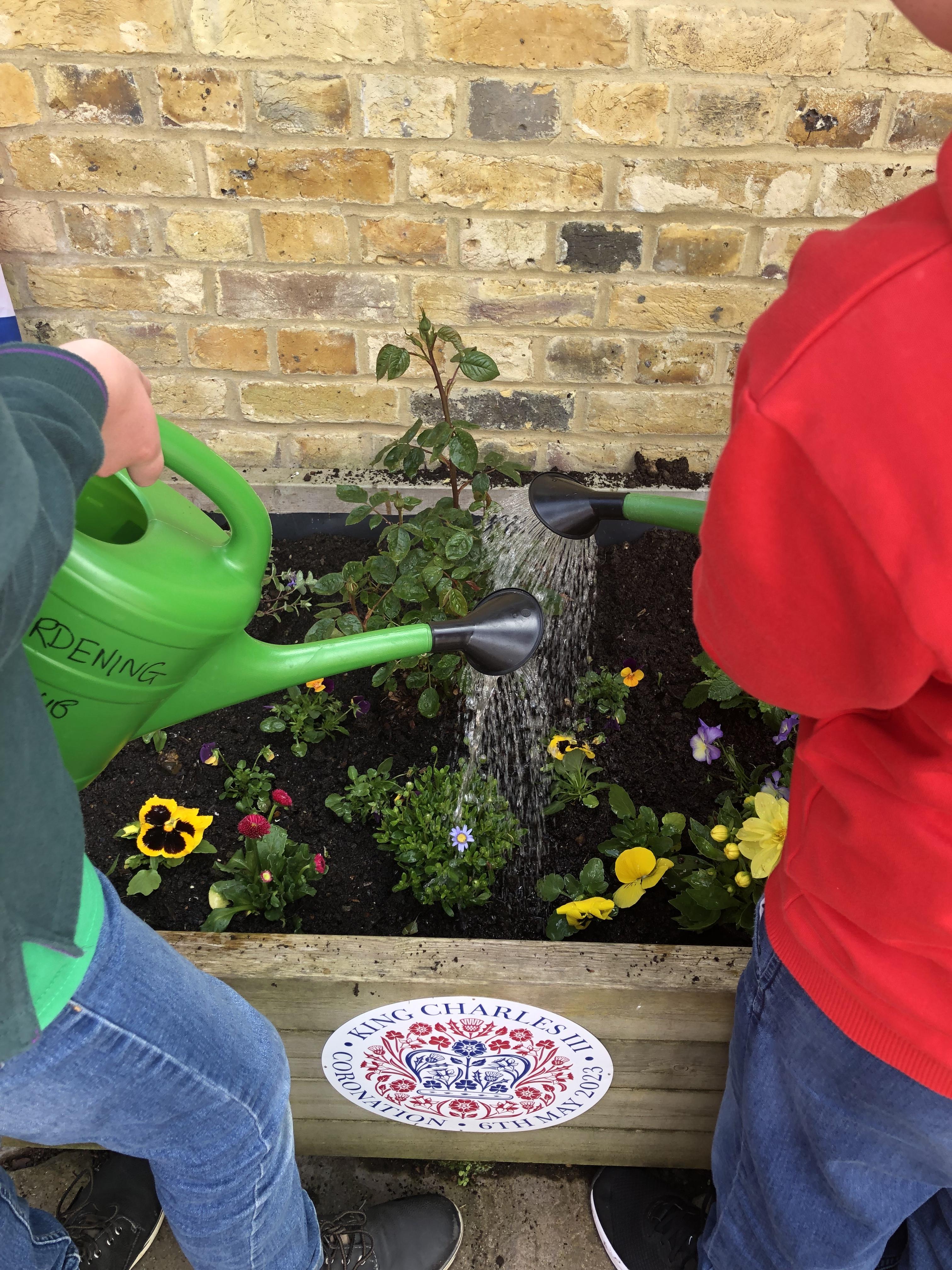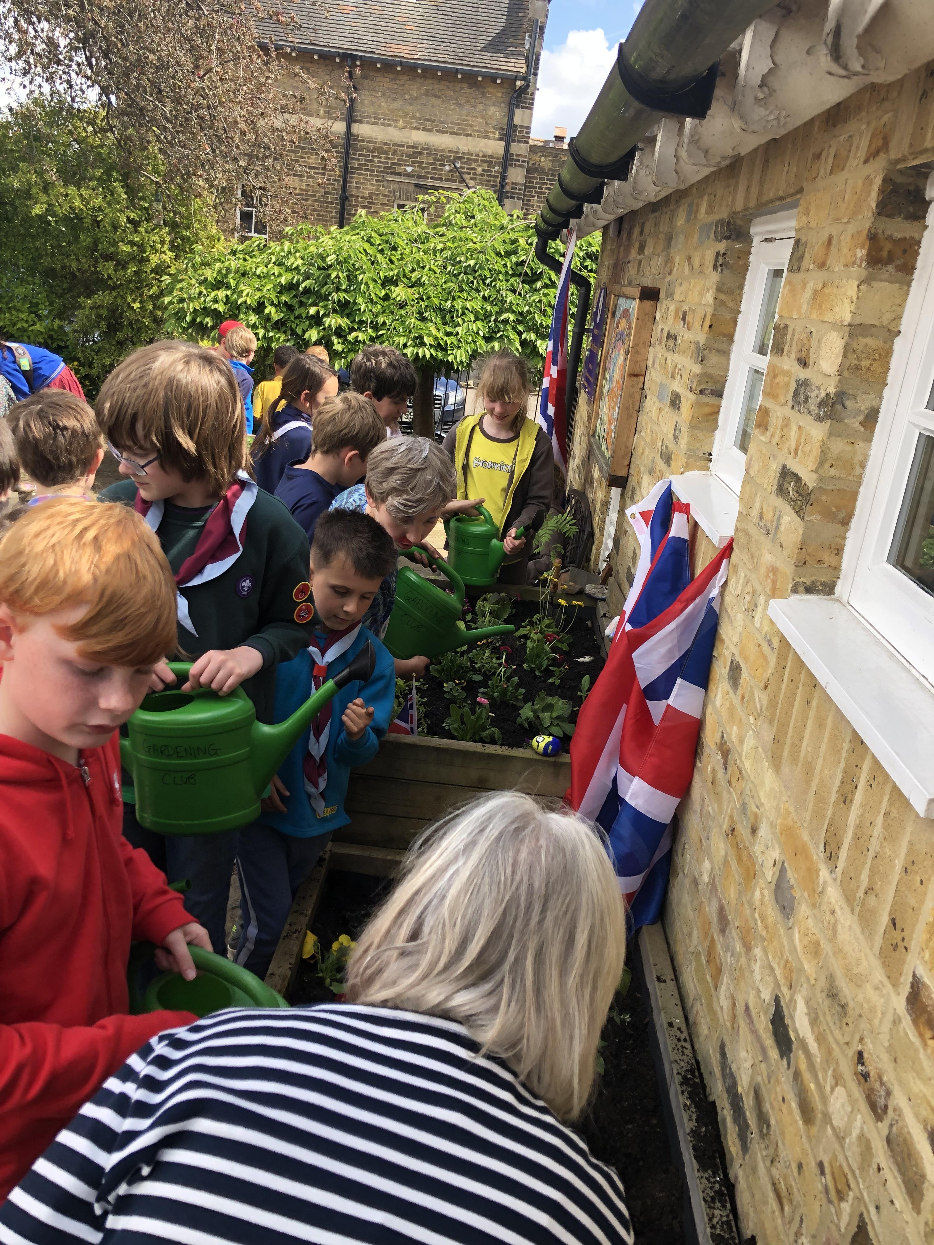 Ethelbert Road celebrated the Kings coronation yesterday with a special assembly. The Scout, Guide, Cub and Brownie community planted a special Coronation bed designed by James in Year 3, we created a whole school picture using our finger prints, and each child received a commemorative medal.