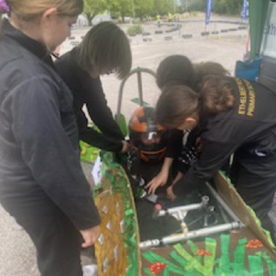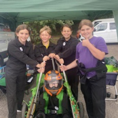 All of Year 5 were involved in building the go-cart during our school's STEM week. They also designed the bodywork and decided on the team name.  As part of the project, the children had to complete a workbook that documented their progress building the go-cart and other investigations they carried out to answer set questions (relating to, levers, gears, friction, aerodynamics, batteries, circuits, energy transfer, sustainability and recycling).