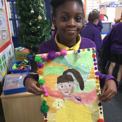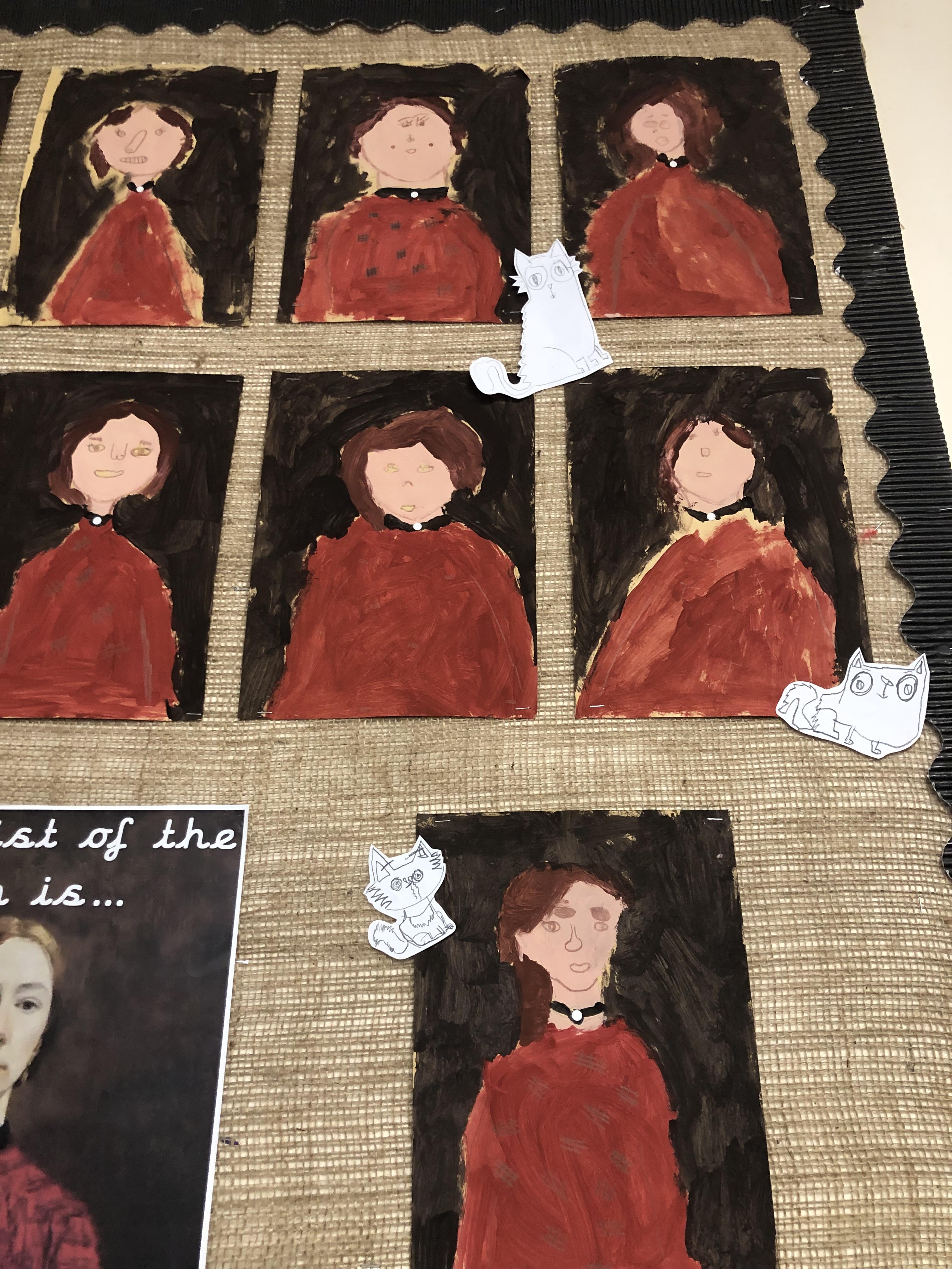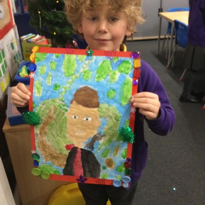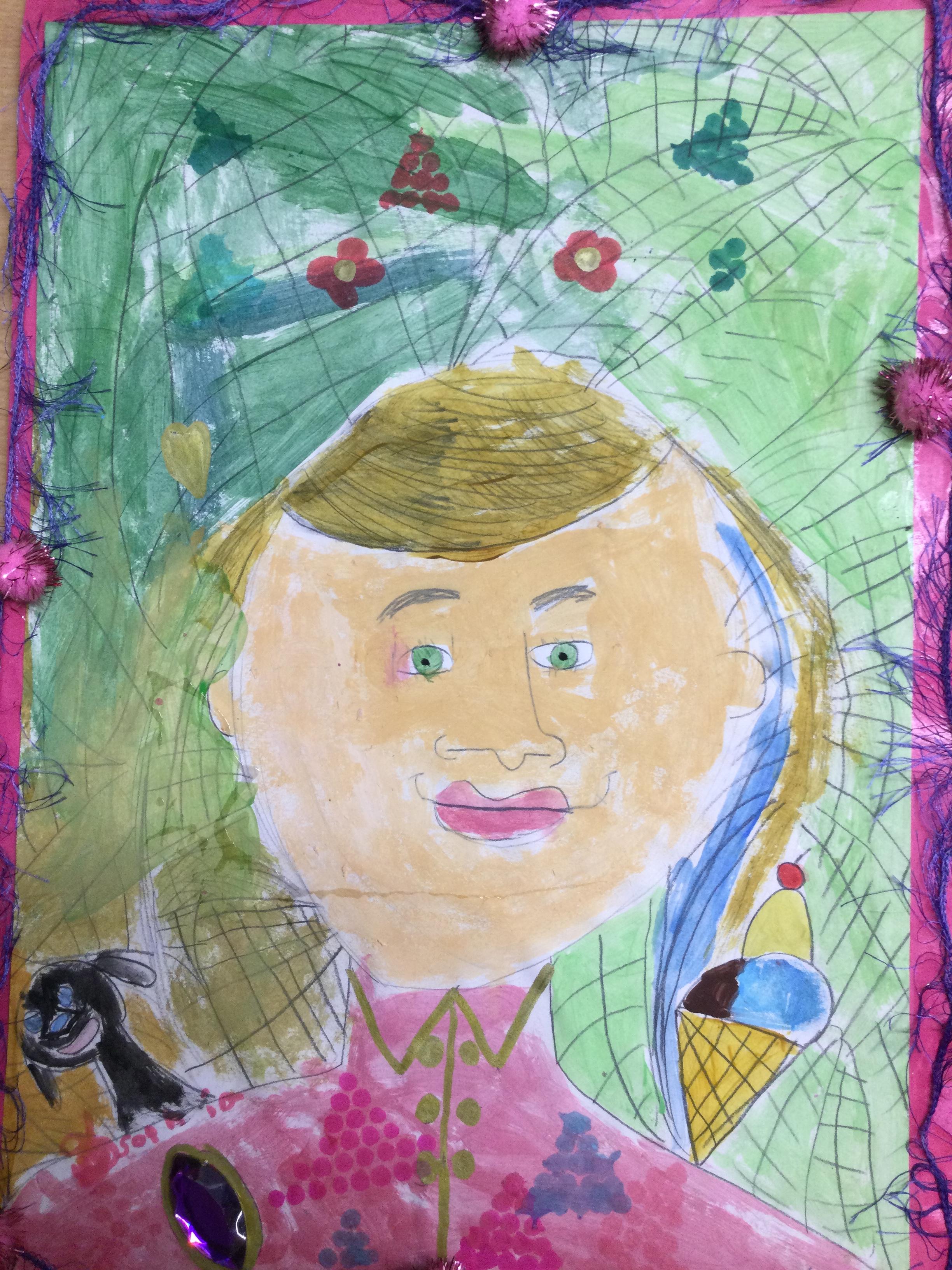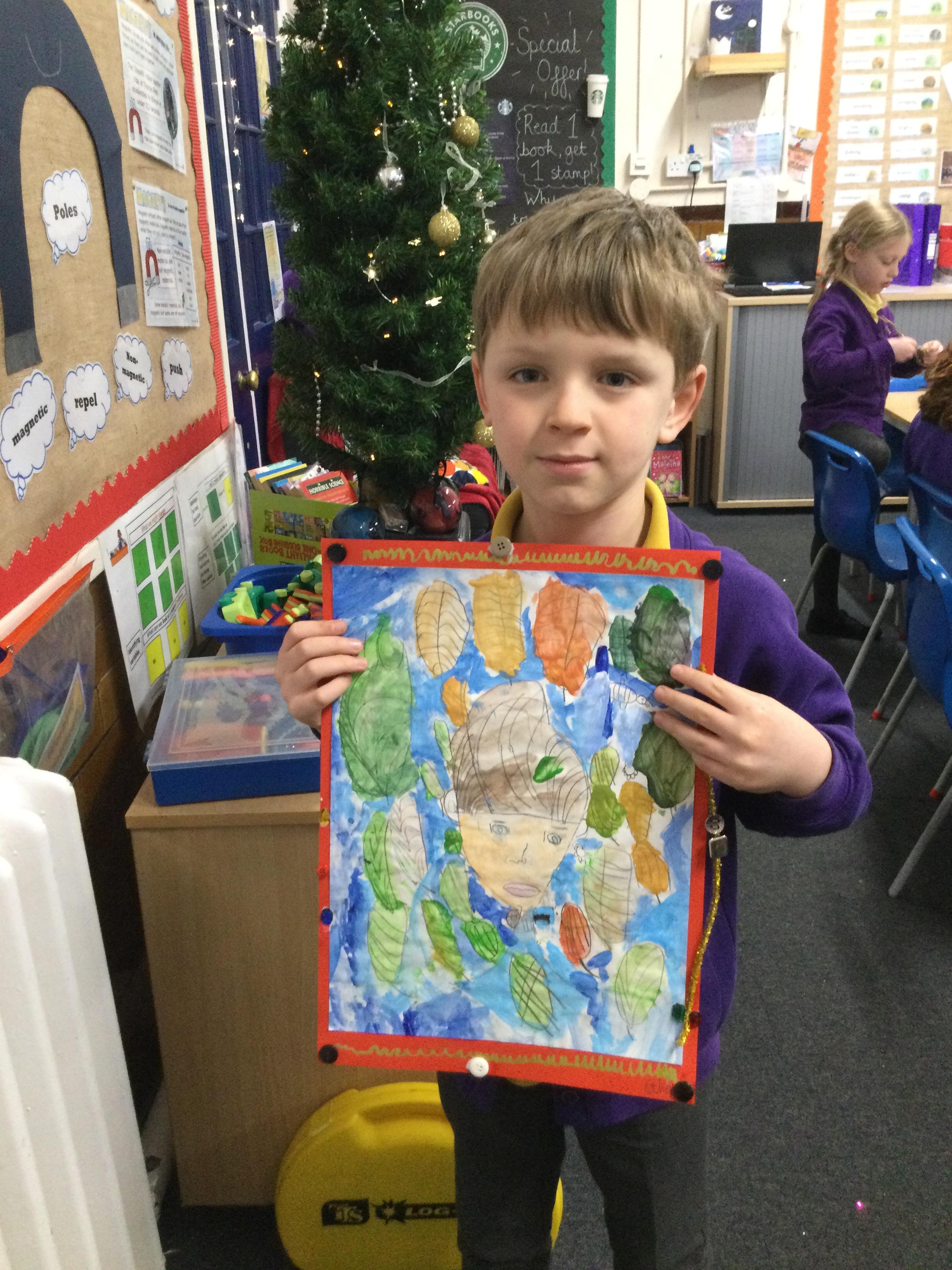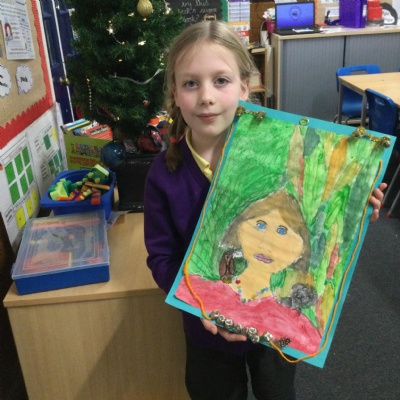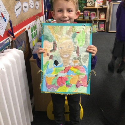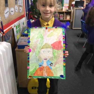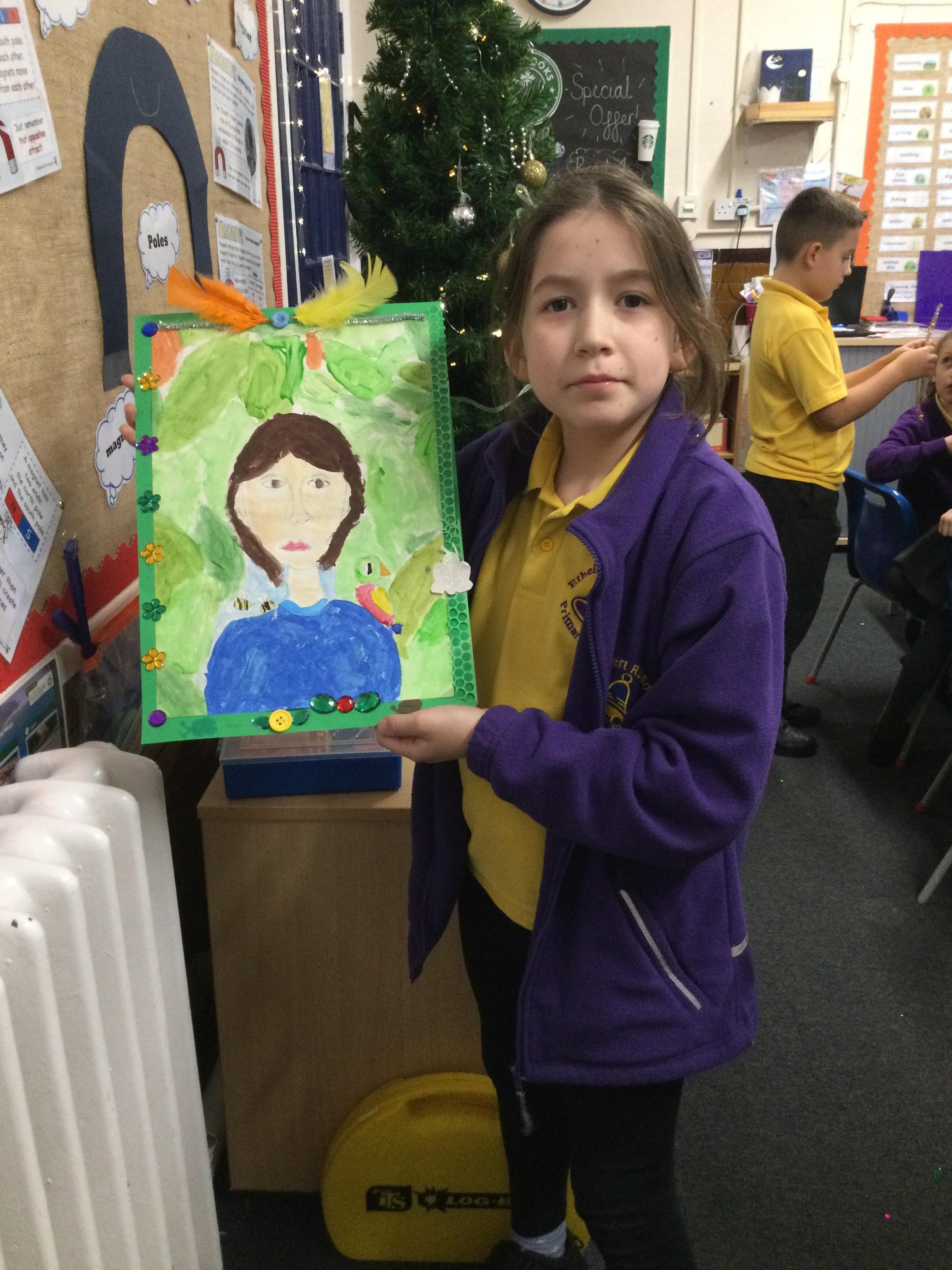 Year 3 have been learning how to draw a self-portrait. They looked at the work of Frida Kahlo and took inspiration from her self-portraits, in particular her Self Portait with Thorn Necklace and Hummingbird. They learned how to draw a face to include the correct proportions and positions of eyes, nose, mouth ears and hair. They included a leafy background and " special objects" on their shoulders - just like Frida! They then learned how to mix colours to create a realistic skin tone before painting their self-portrait. A decorative frame completed their amazing work.