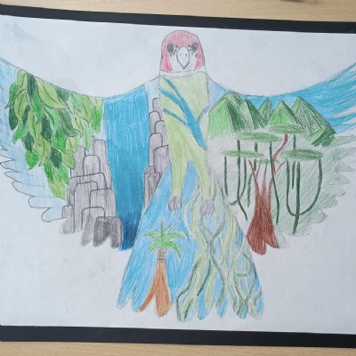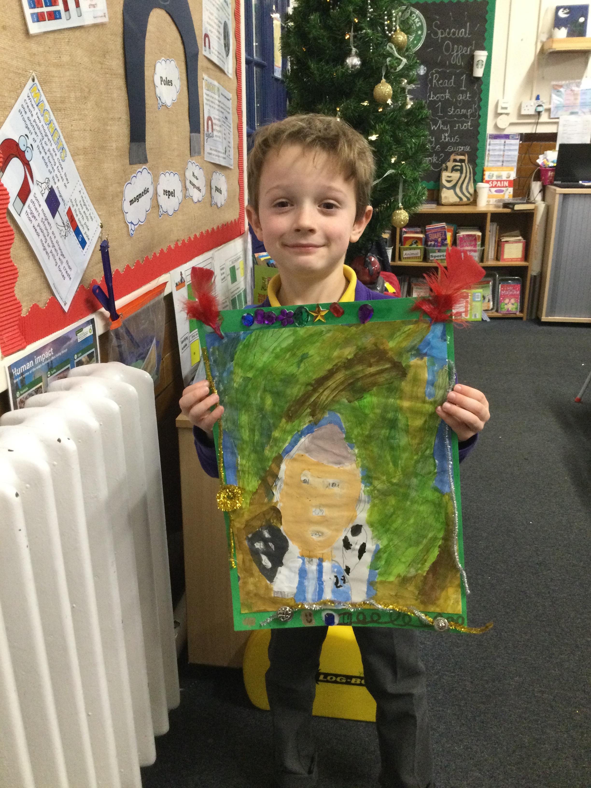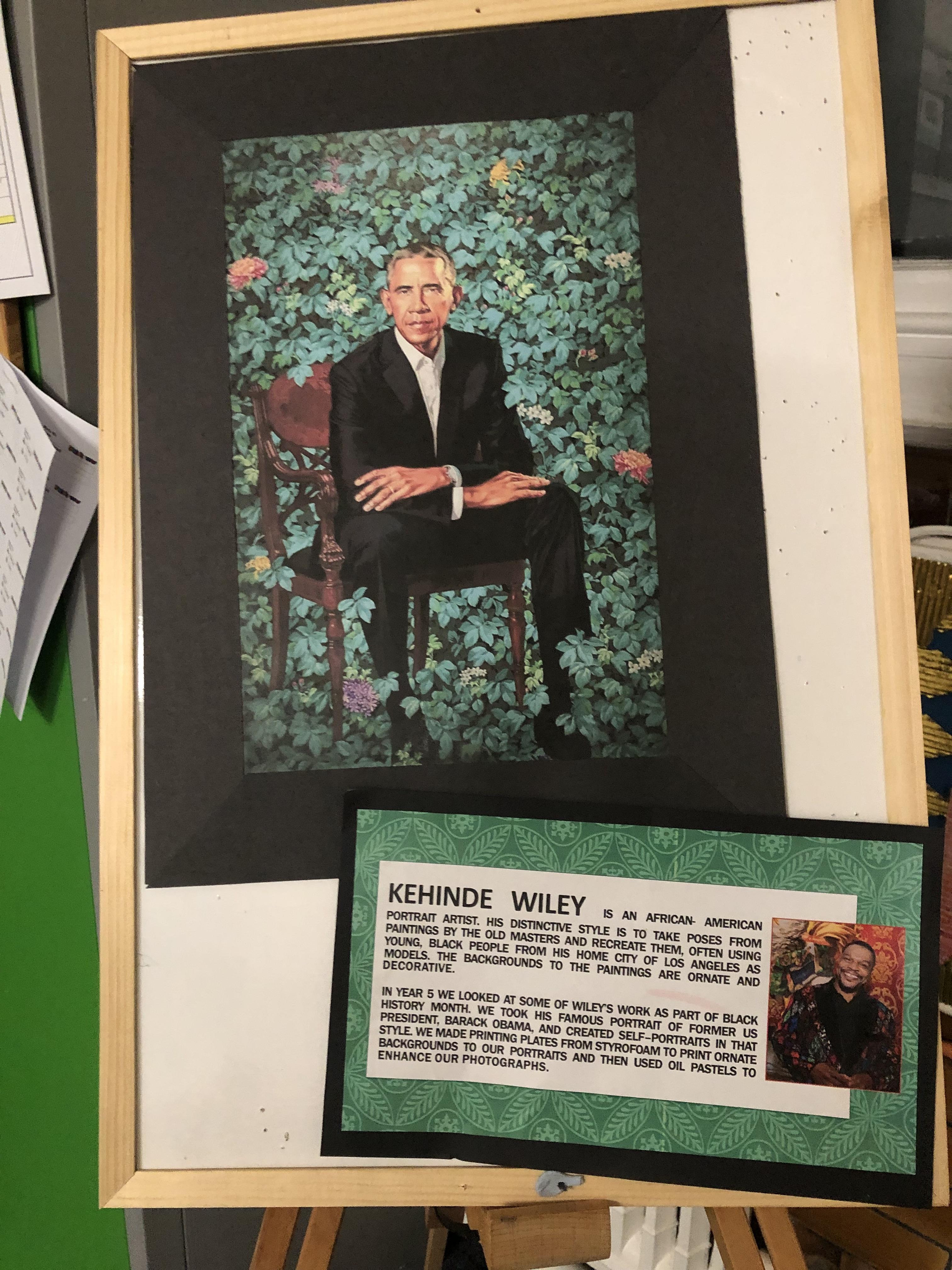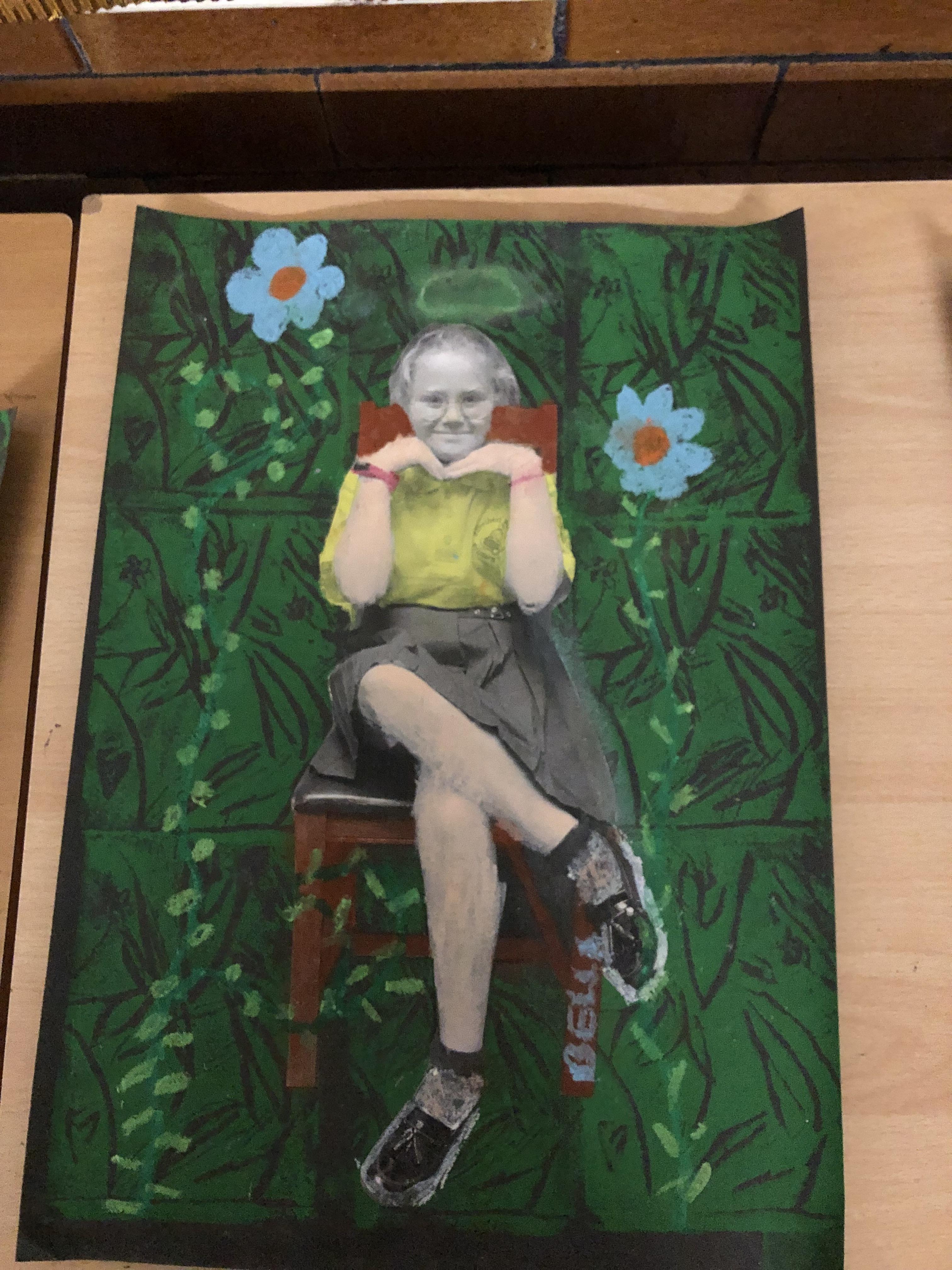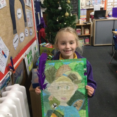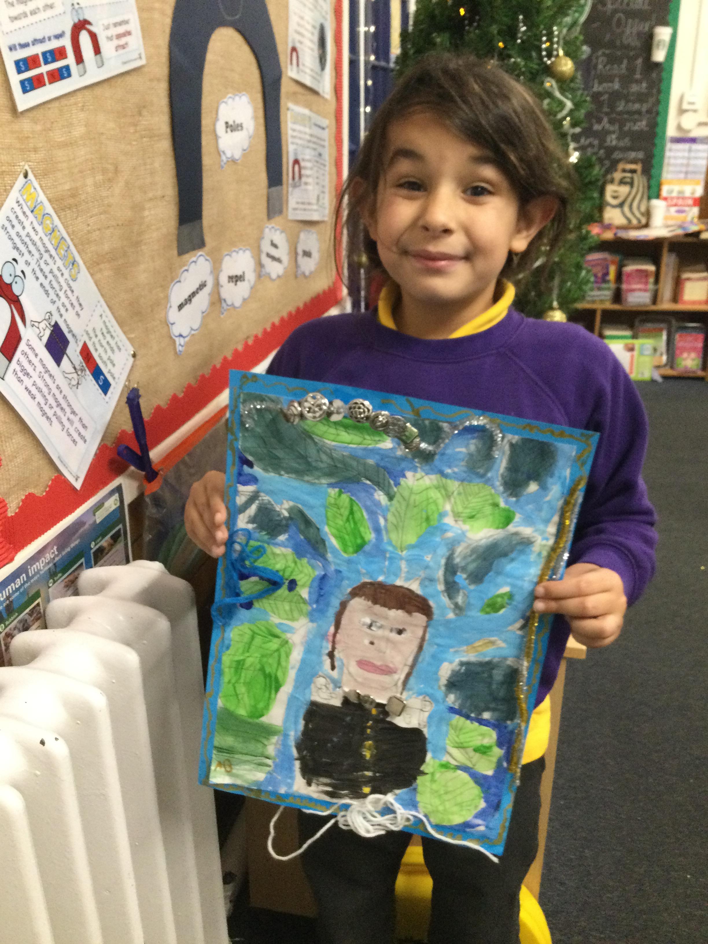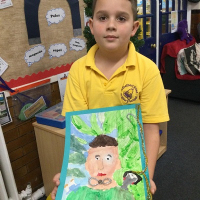 Year 3 have been learning how to draw a self-portrait. They looked at the work of Frida Kahlo and took inspiration from her self-portraits, in particular her Self Portait with Thorn Necklace and Hummingbird. They learned how to draw a face to include the correct proportions and positions of eyes, nose, mouth ears and hair. They included a leafy background and " special objects" on their shoulders - just like Frida! They then learned how to mix colours to create a realistic skin tone before painting their self-portrait. A decorative frame completed their amazing work.