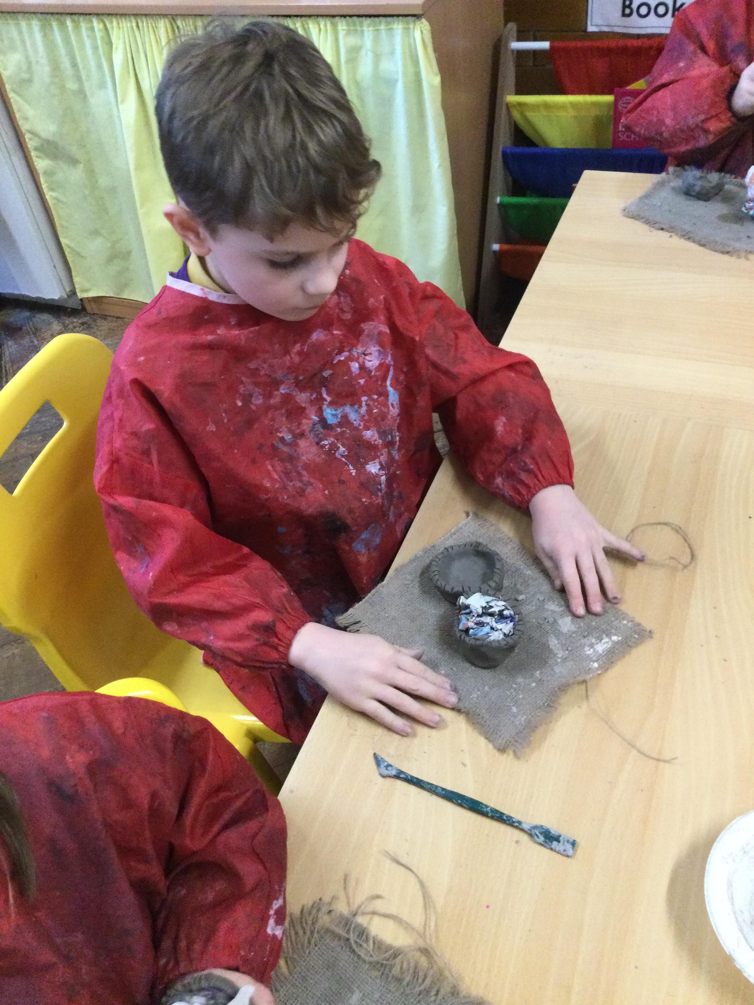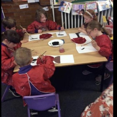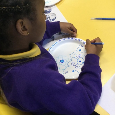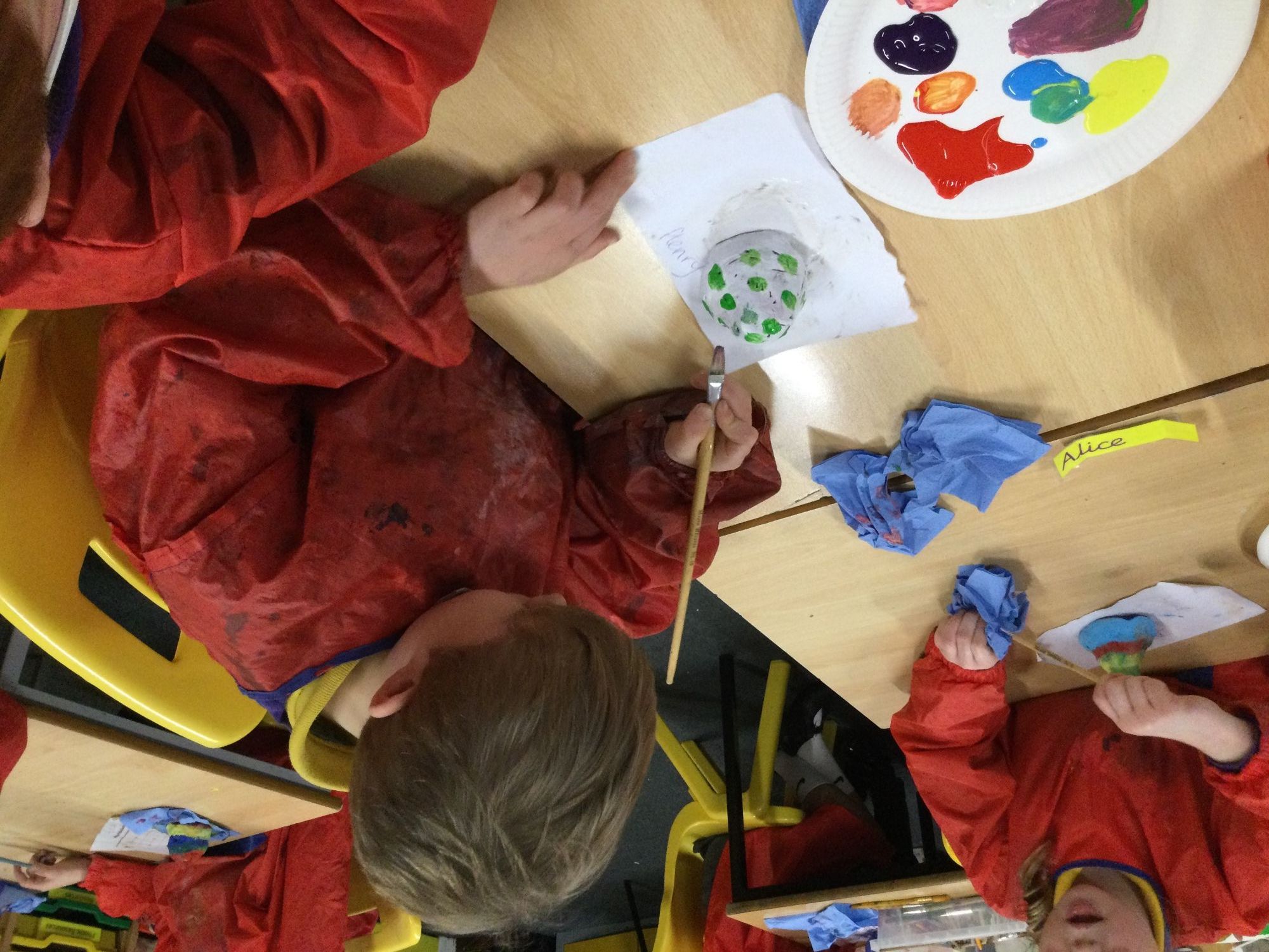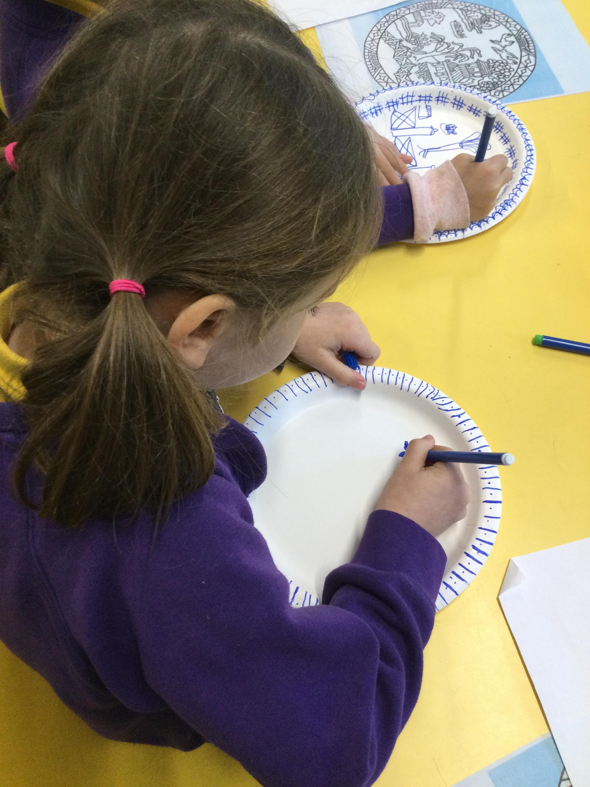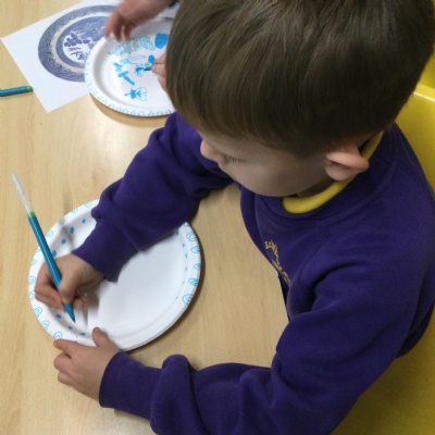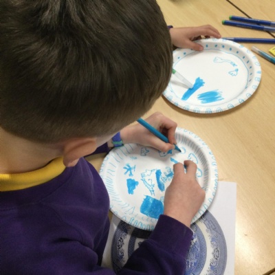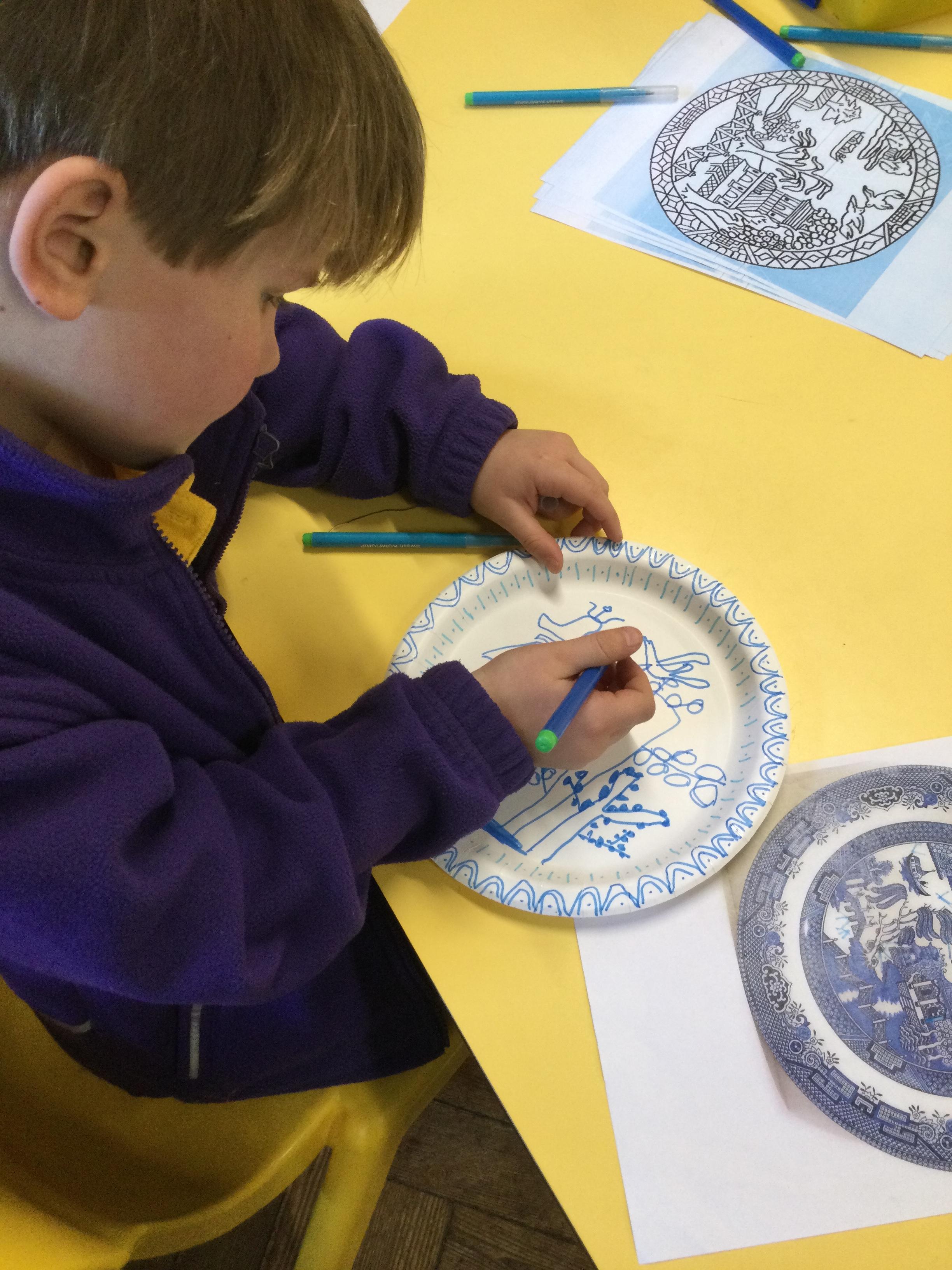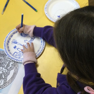 This term year 2's art has been inspired by their topic, China. They painted bamboo, made willow pattern plates, used clay to sculpt dragon eggs, made shadow puppets to tell the story of the willow pattern plate and created Ming vase pictures!