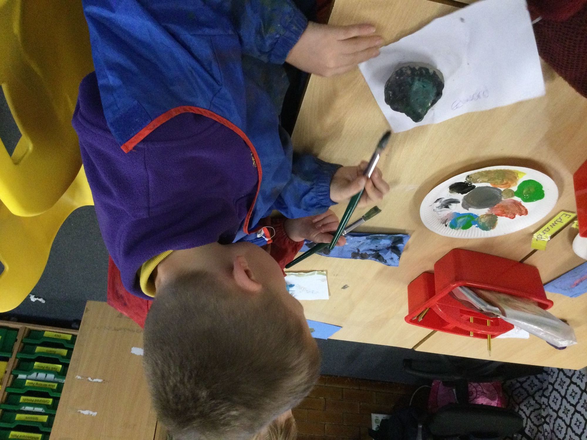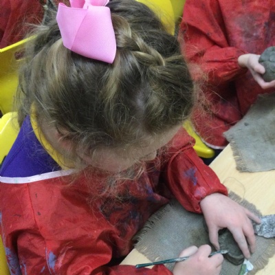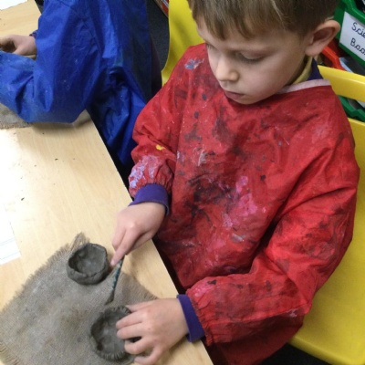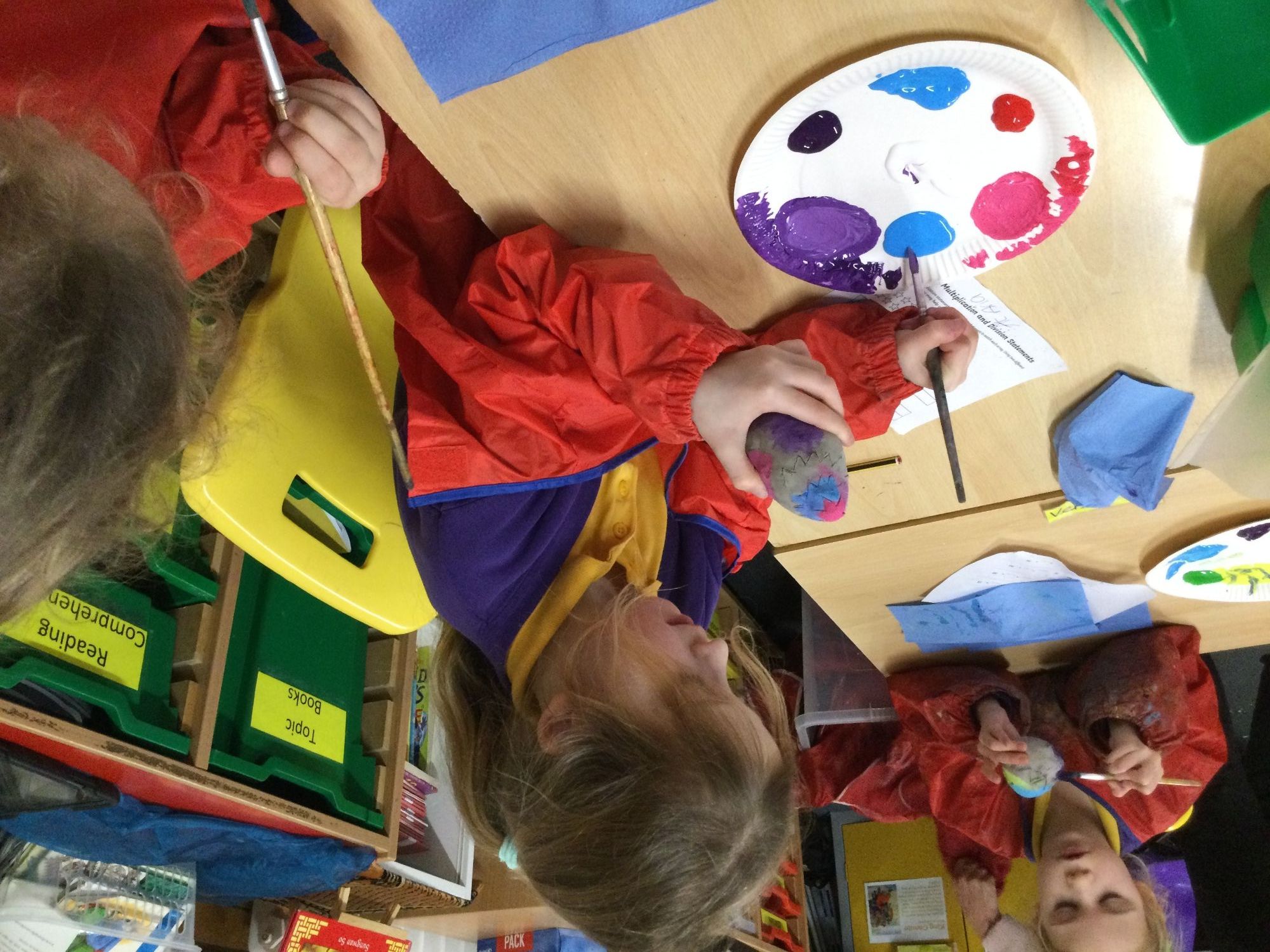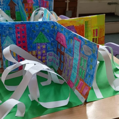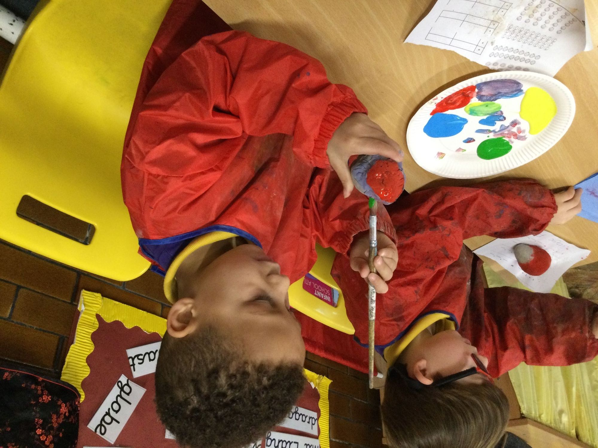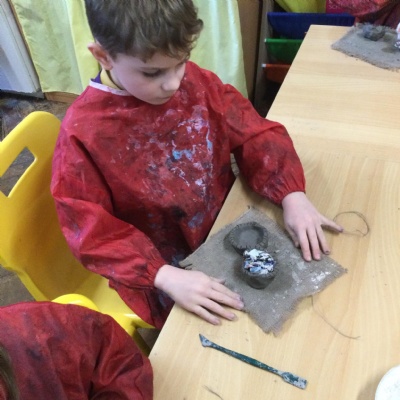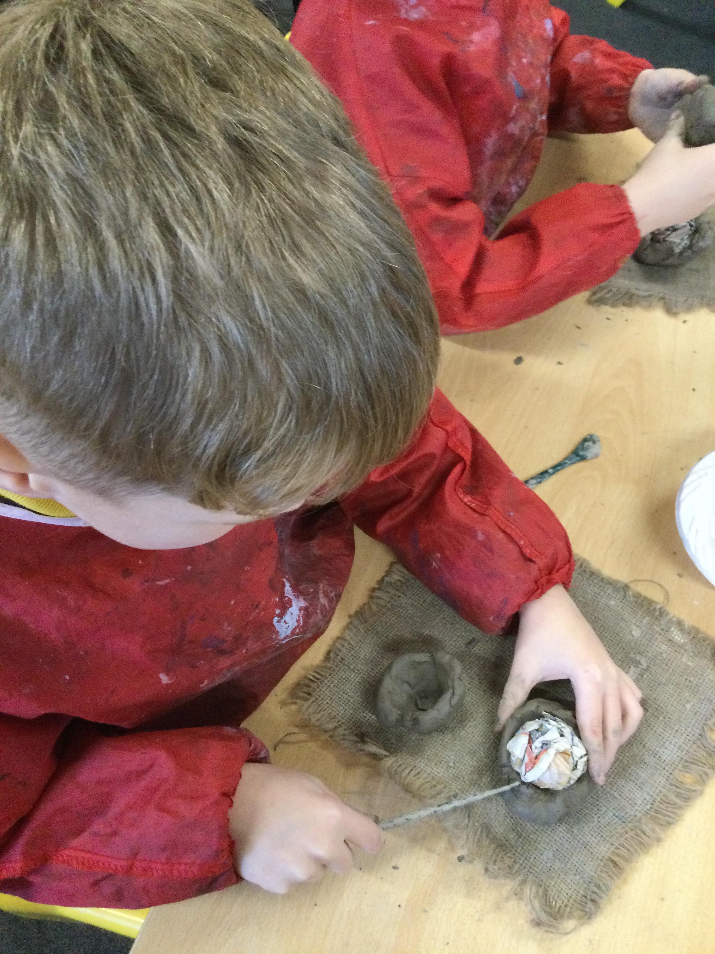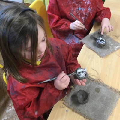 This term year 2's art has been inspired by their topic, China. They painted bamboo, made willow pattern plates, used clay to sculpt dragon eggs, made shadow puppets to tell the story of the willow pattern plate and created Ming vase pictures!