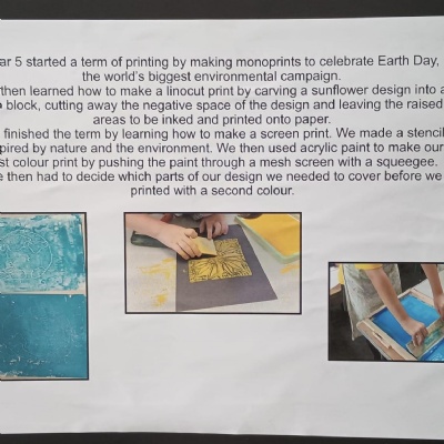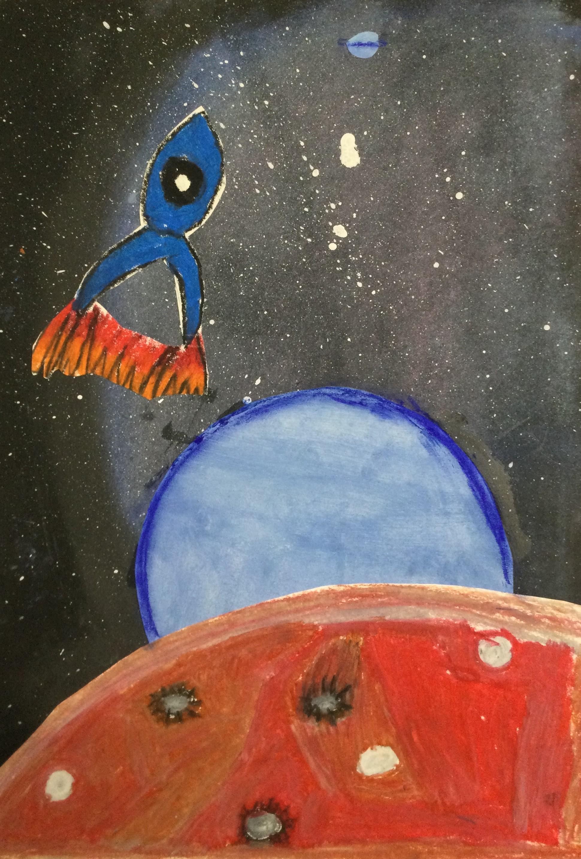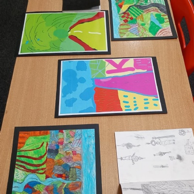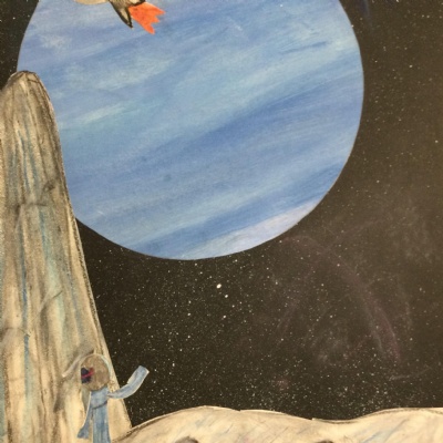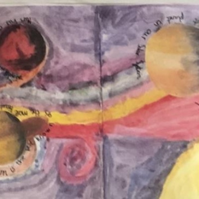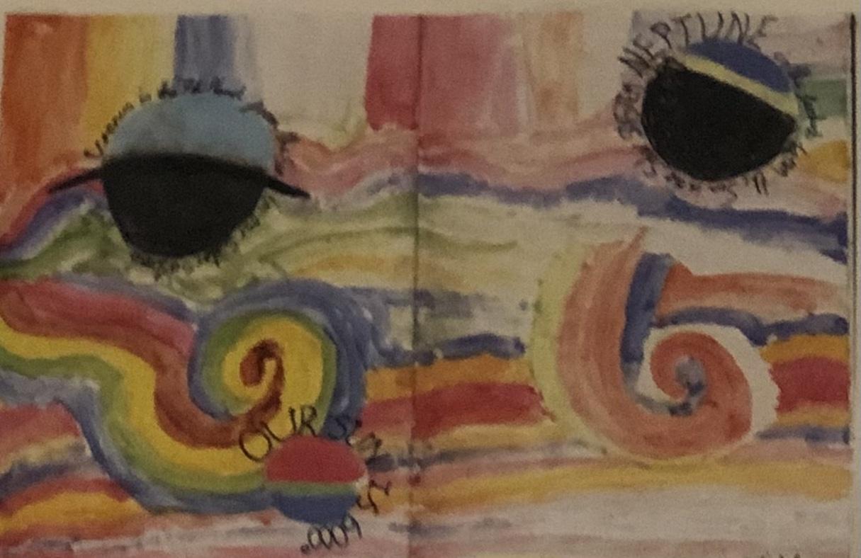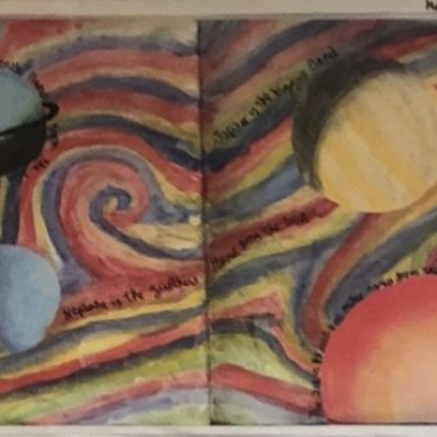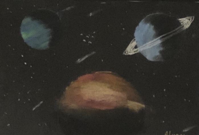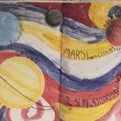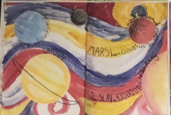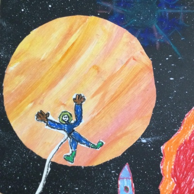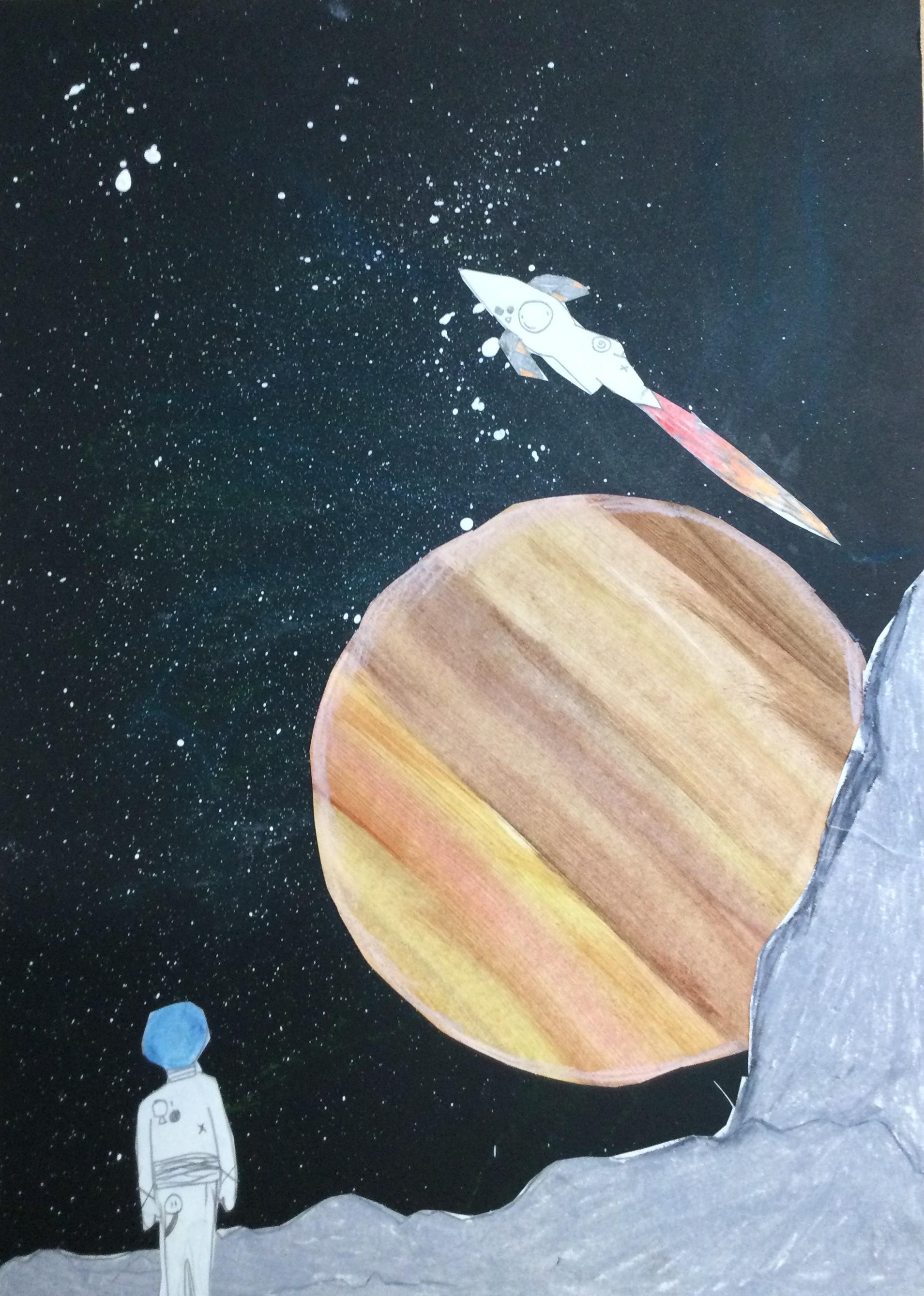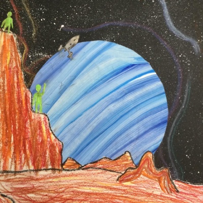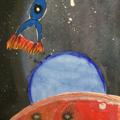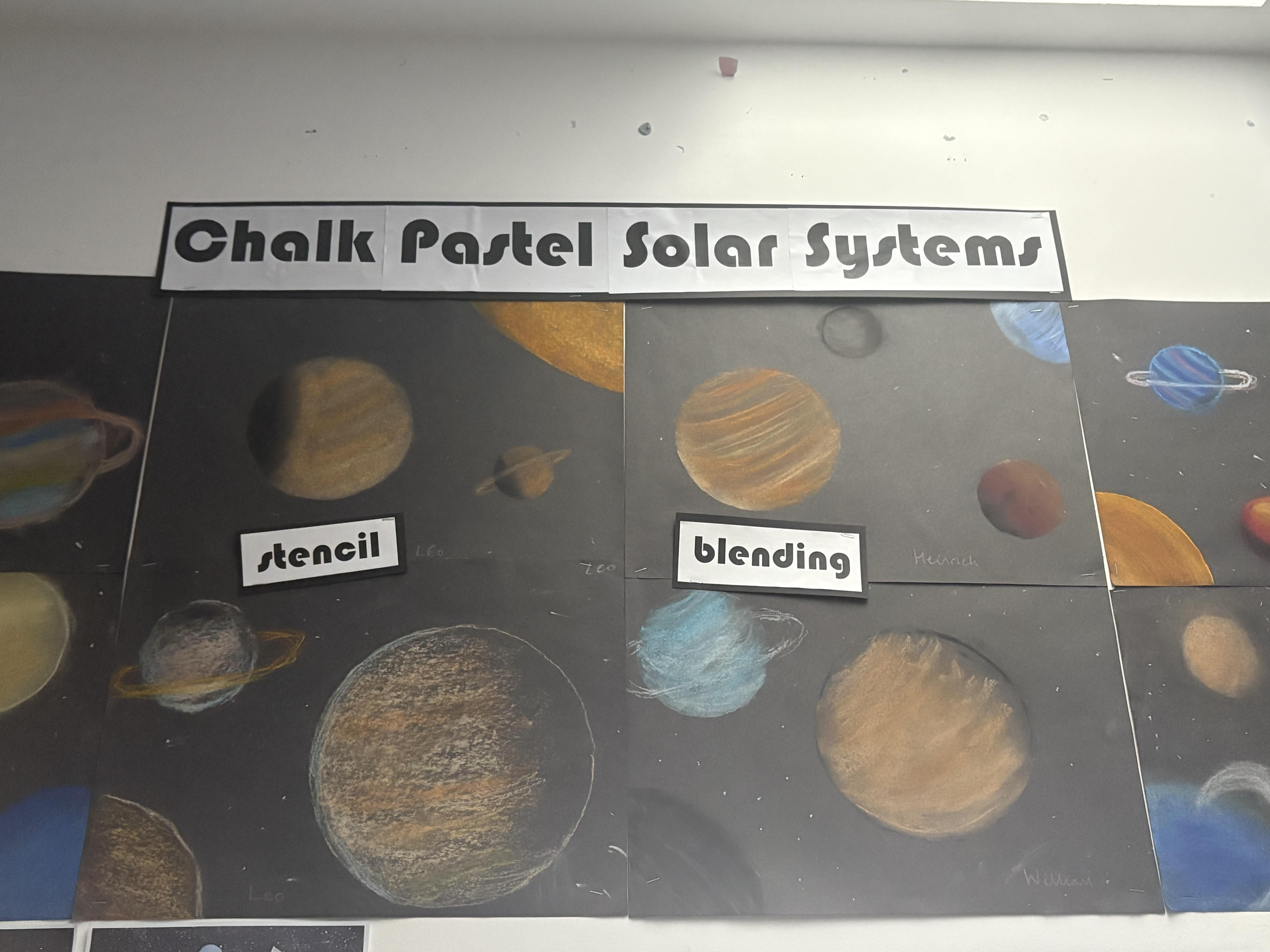 Years 5 & 6 explored examples of Retro-Futuristic art from the 1950s and 60s. They used a range of techniques to create their own space art inspired by artwork of that period. They colour mixed and matched a middle ground planet, used chalk pastels and spatter painting techniques to create a nebula and galaxy background and then used oil pastels to create a textured planet foreground. The final composition was then planned and assembled.