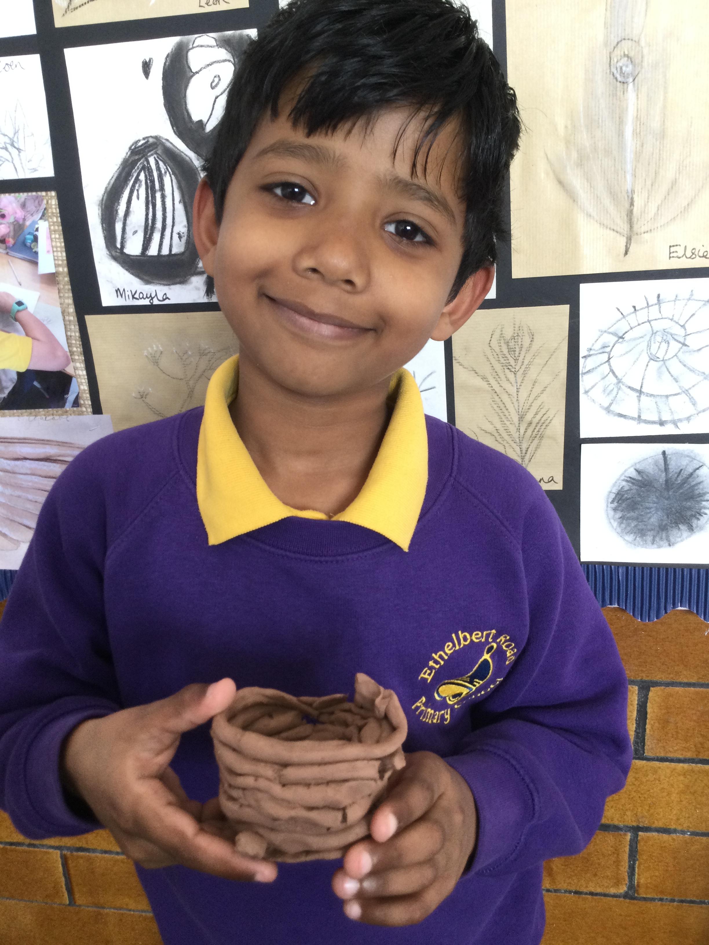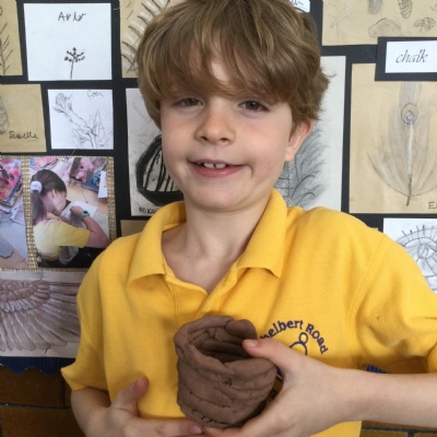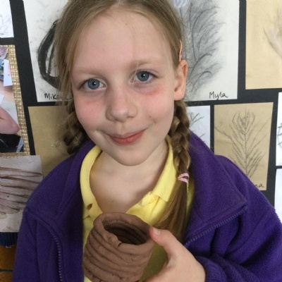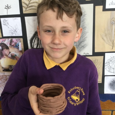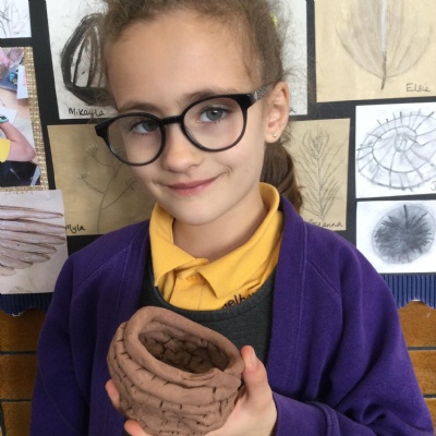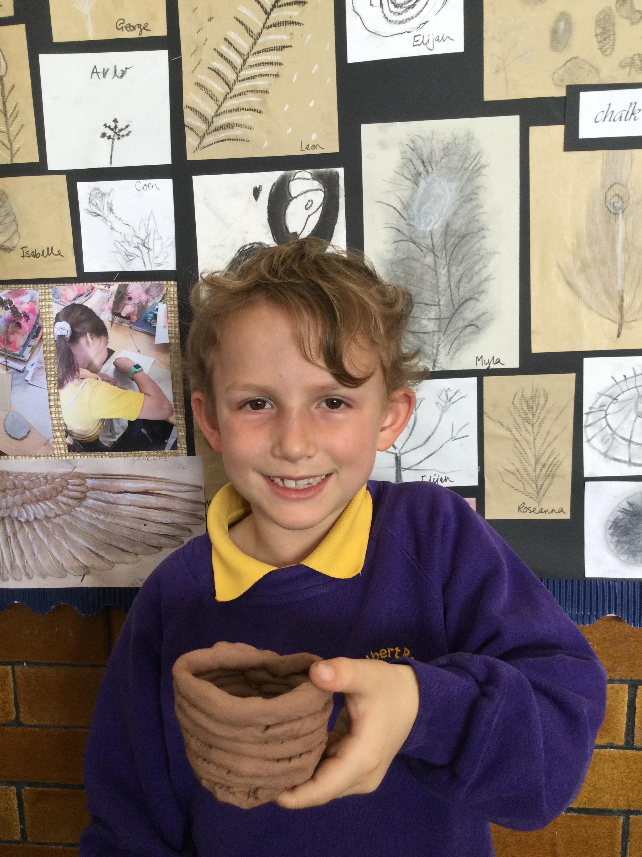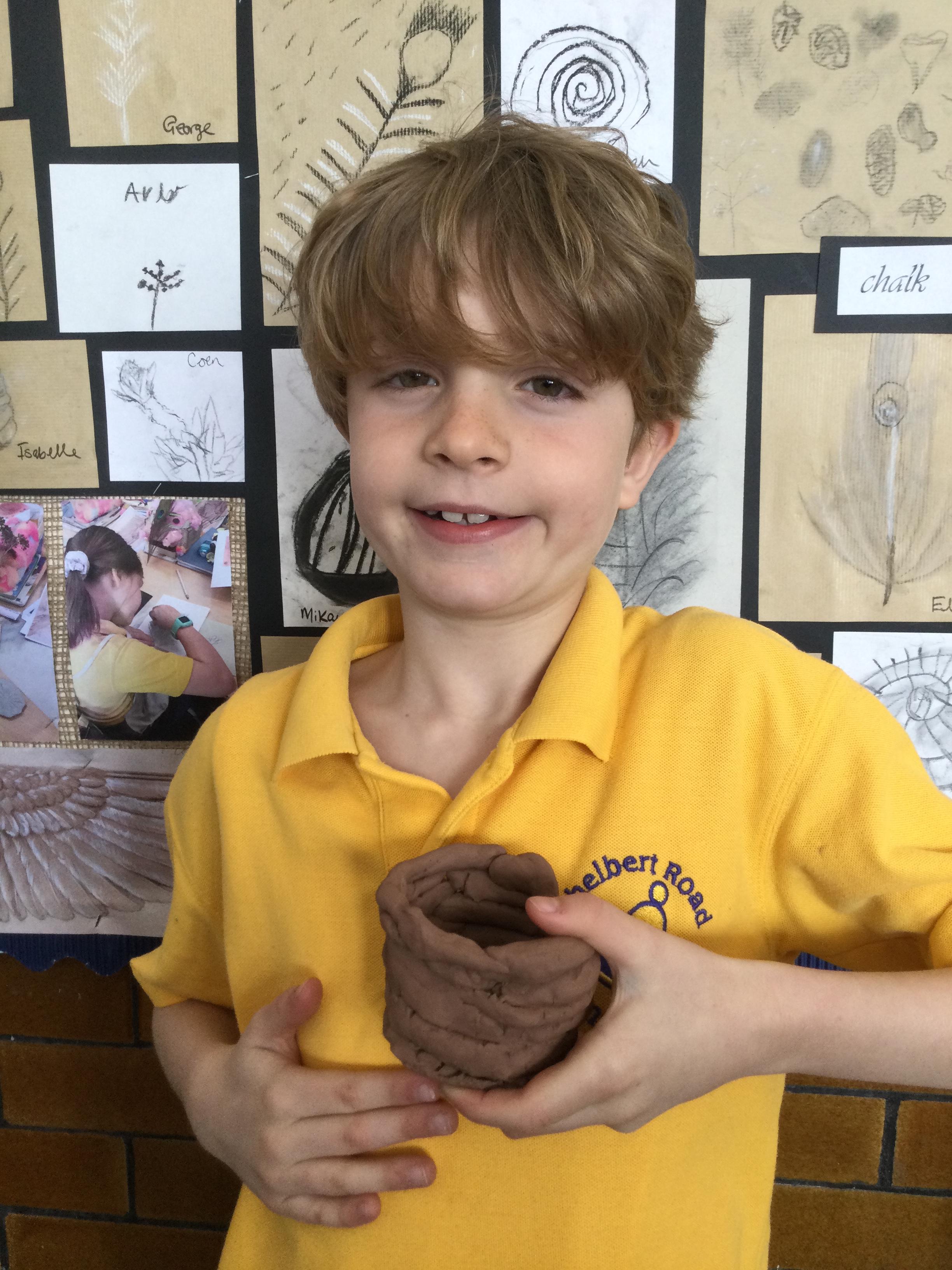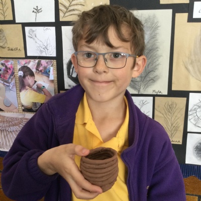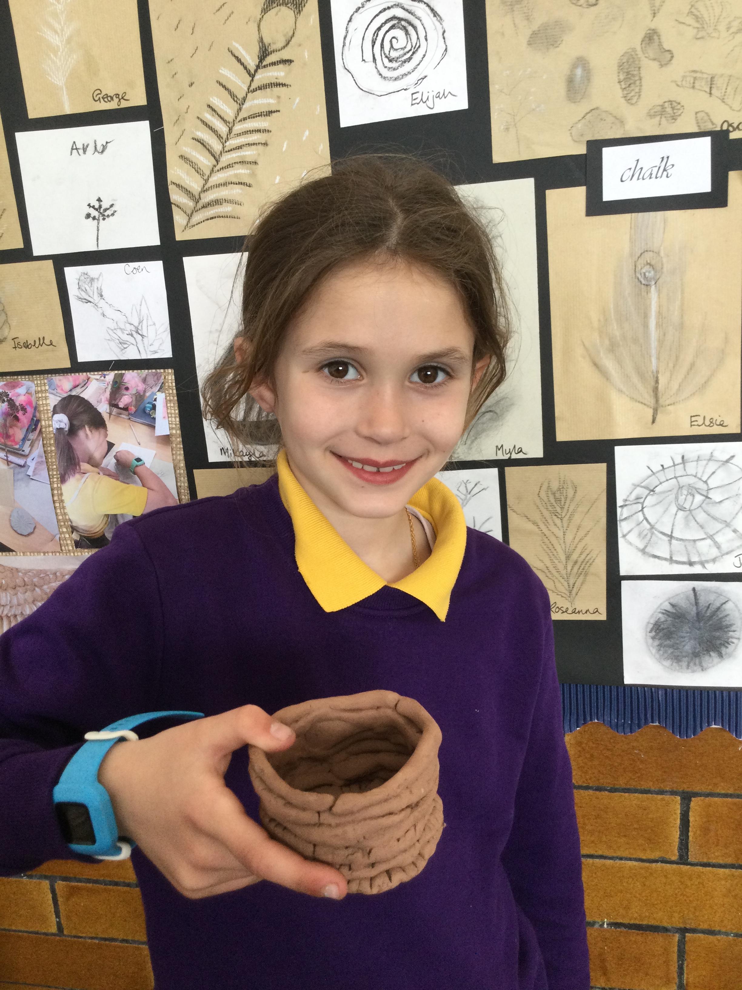 Year 3 have been learning about volcanoes. In art this term they painted pop art volcanoes in the style of Andy Warhol, they made observational drawings inspired by Leonardo da Vinci and they made these beautiful clay coil pots!