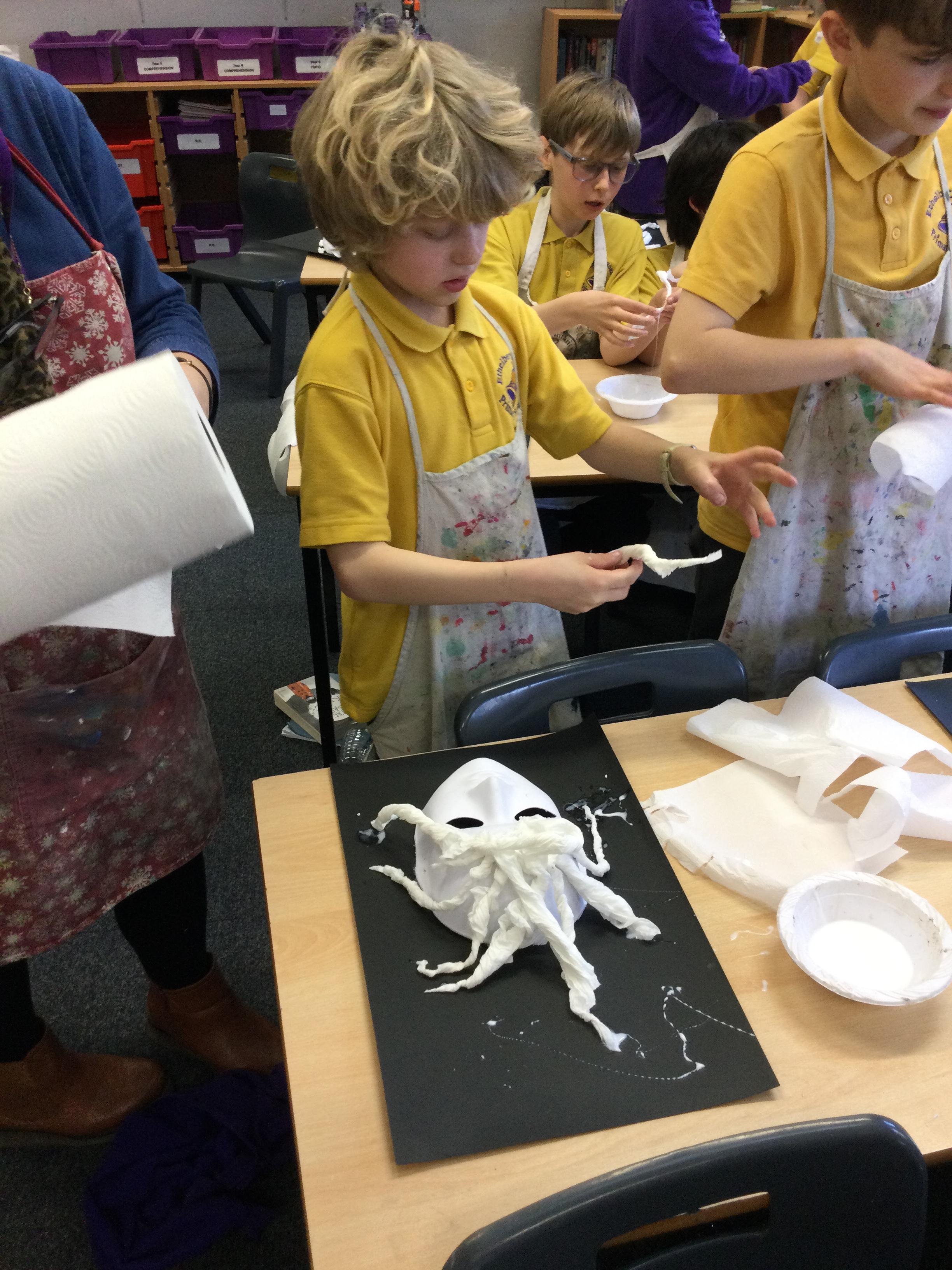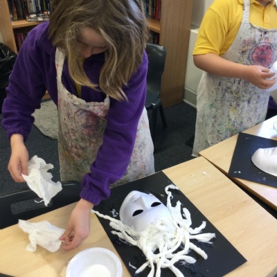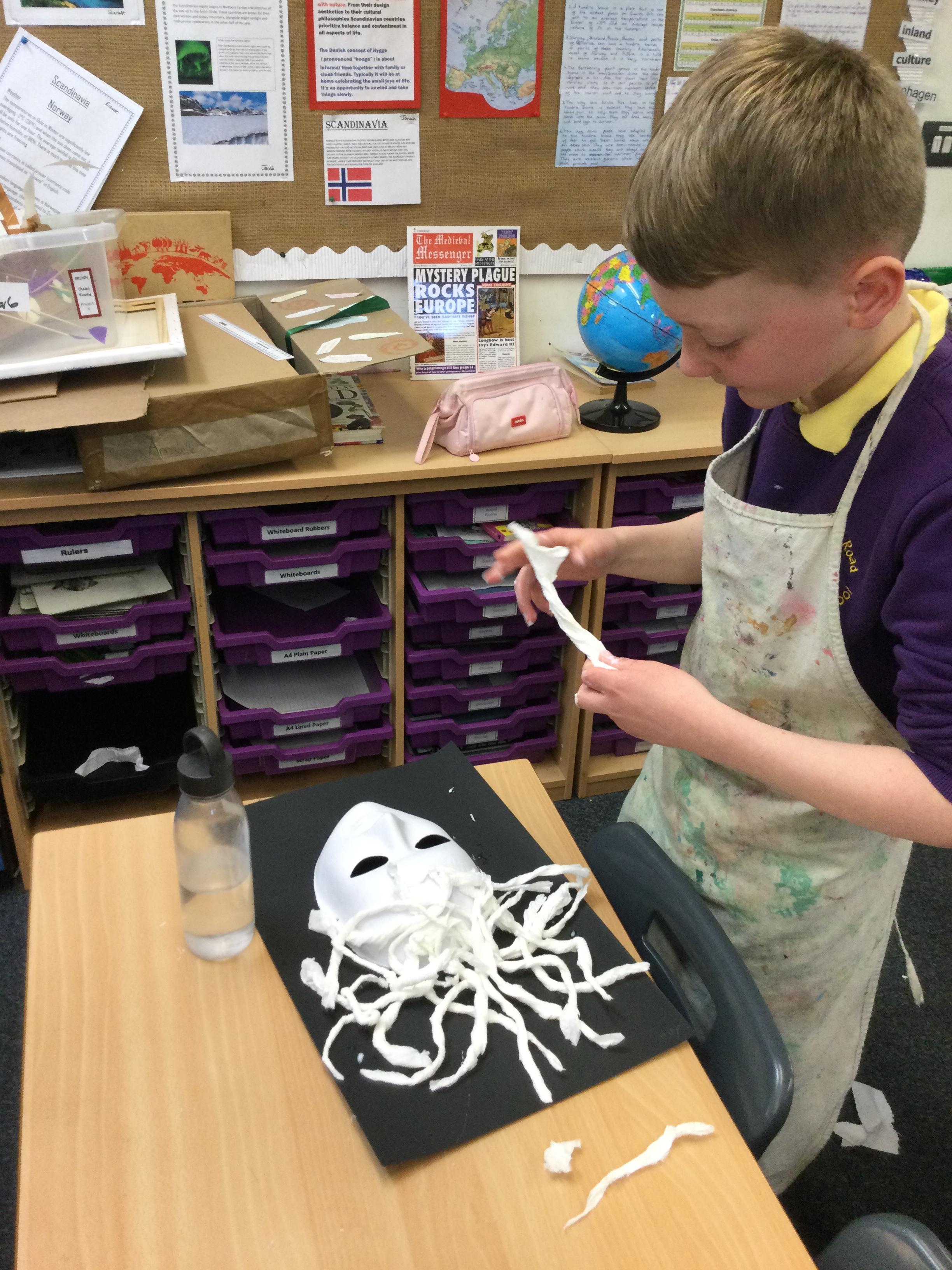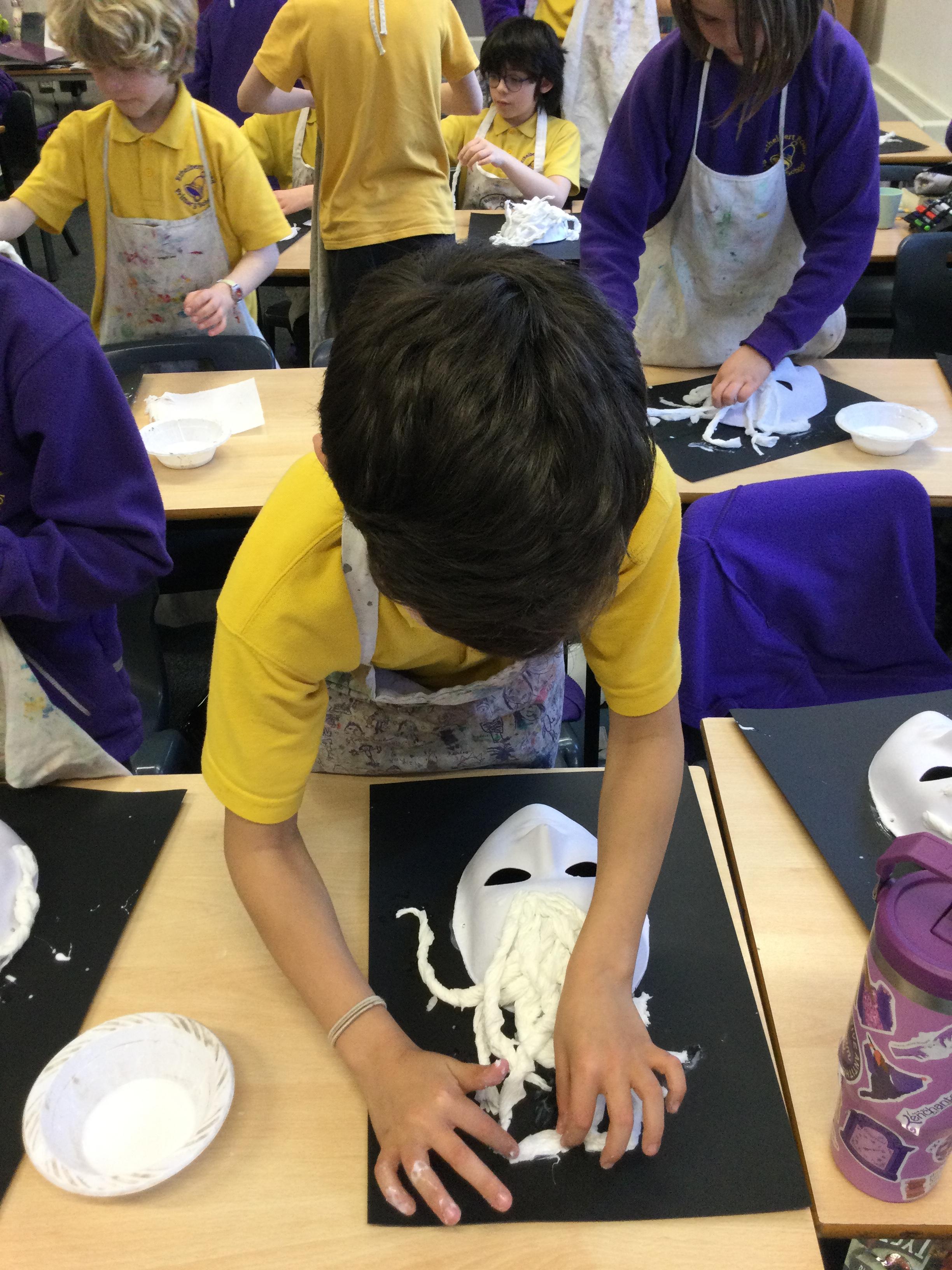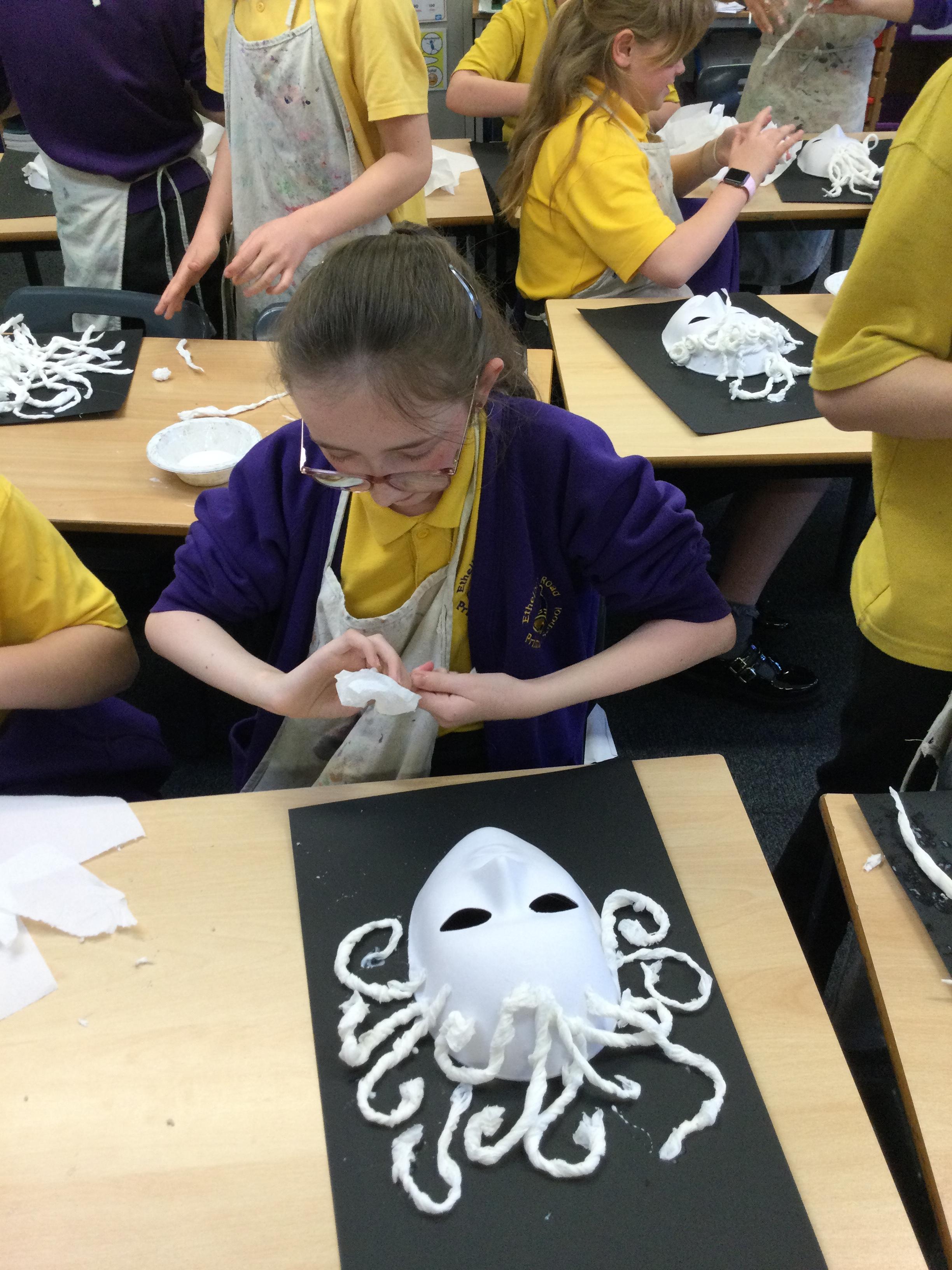 Year 6 are learning about ancient Greece. In art they used kitchen roll and pva glue to sculpt heads of Medusa; messy but fun!