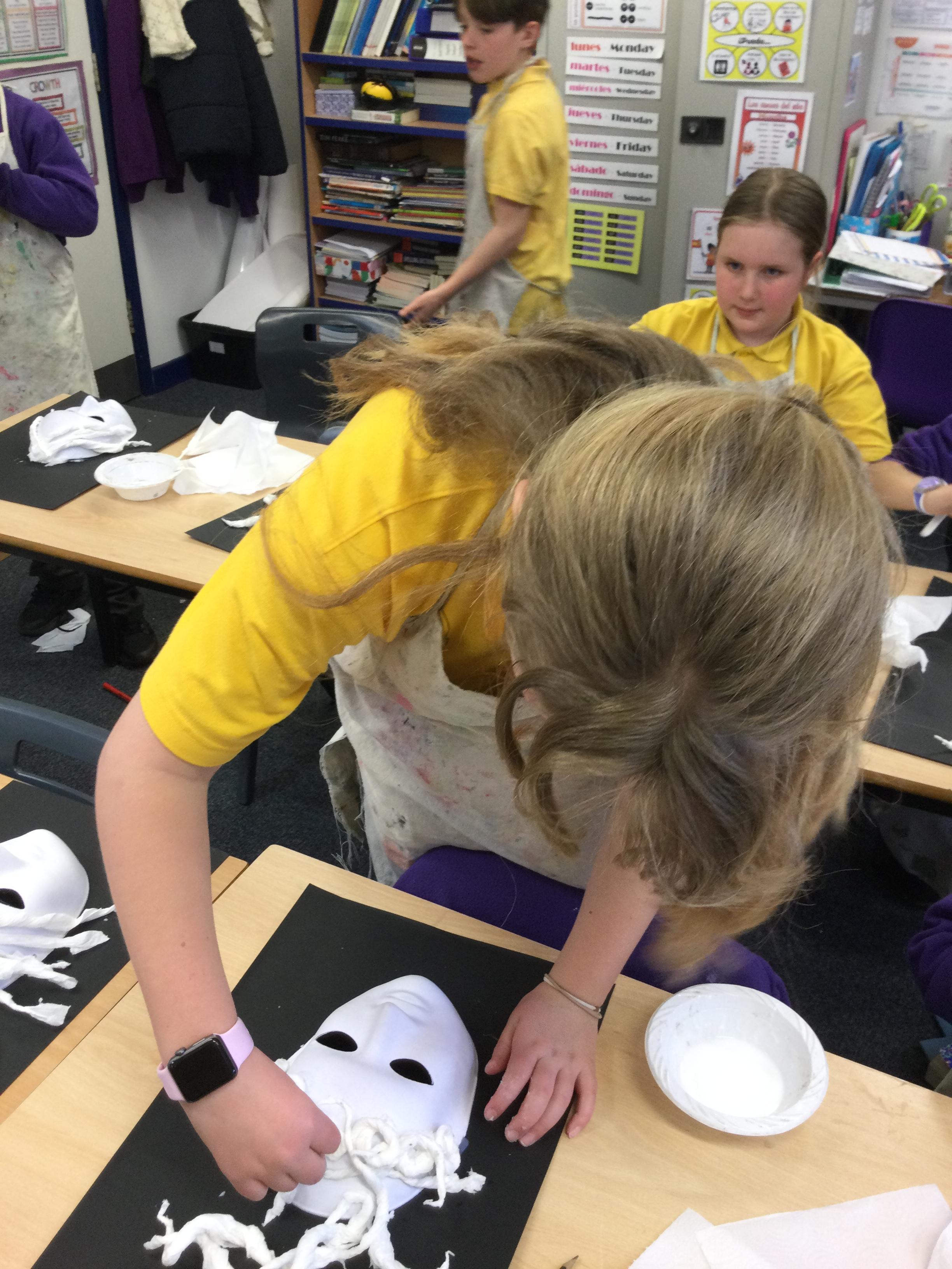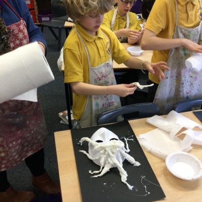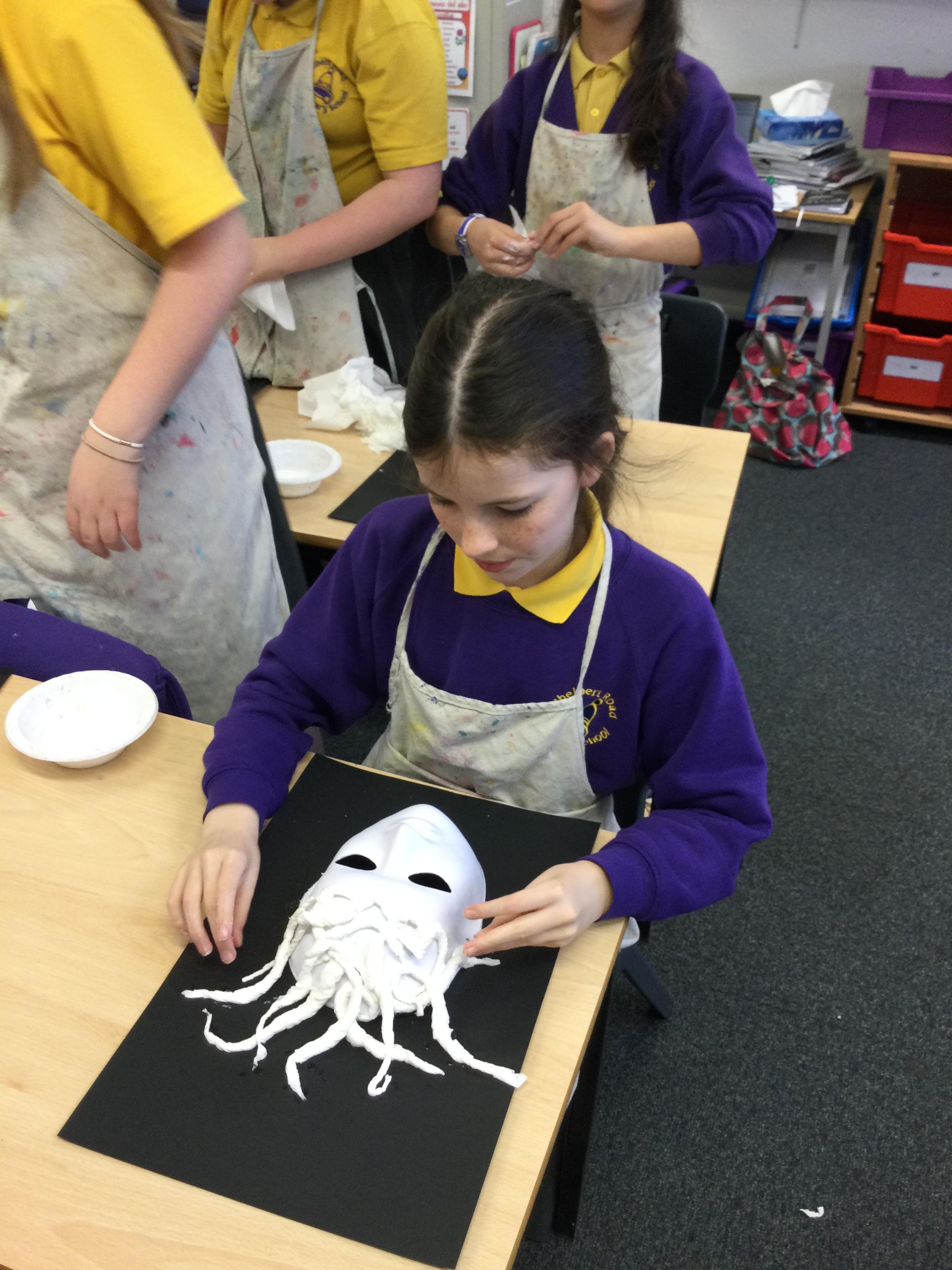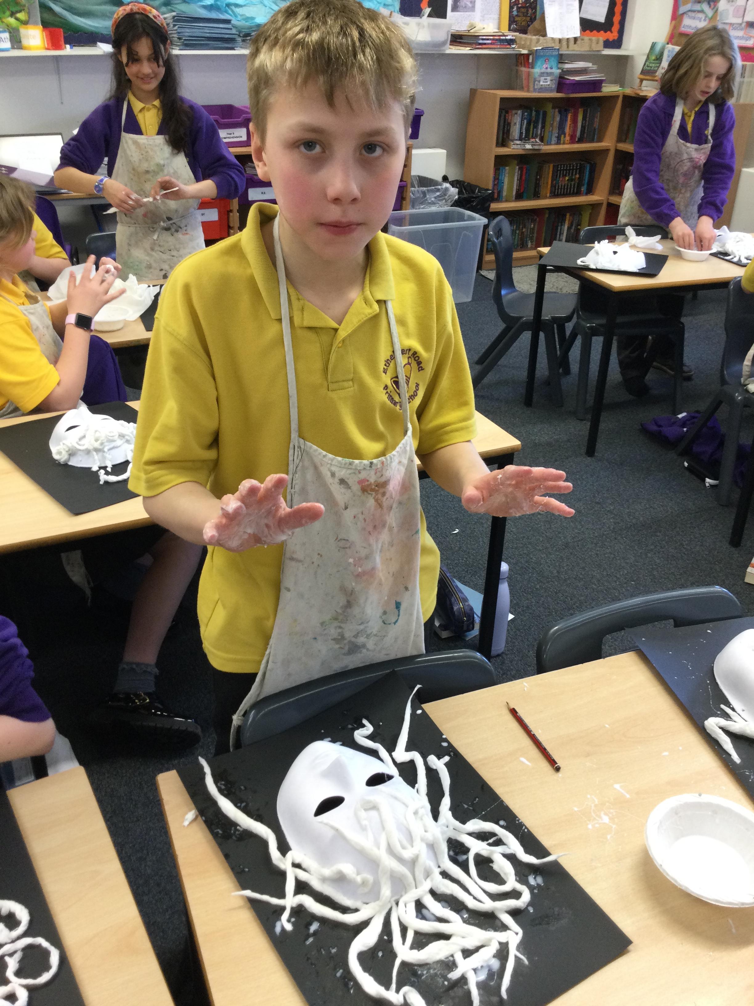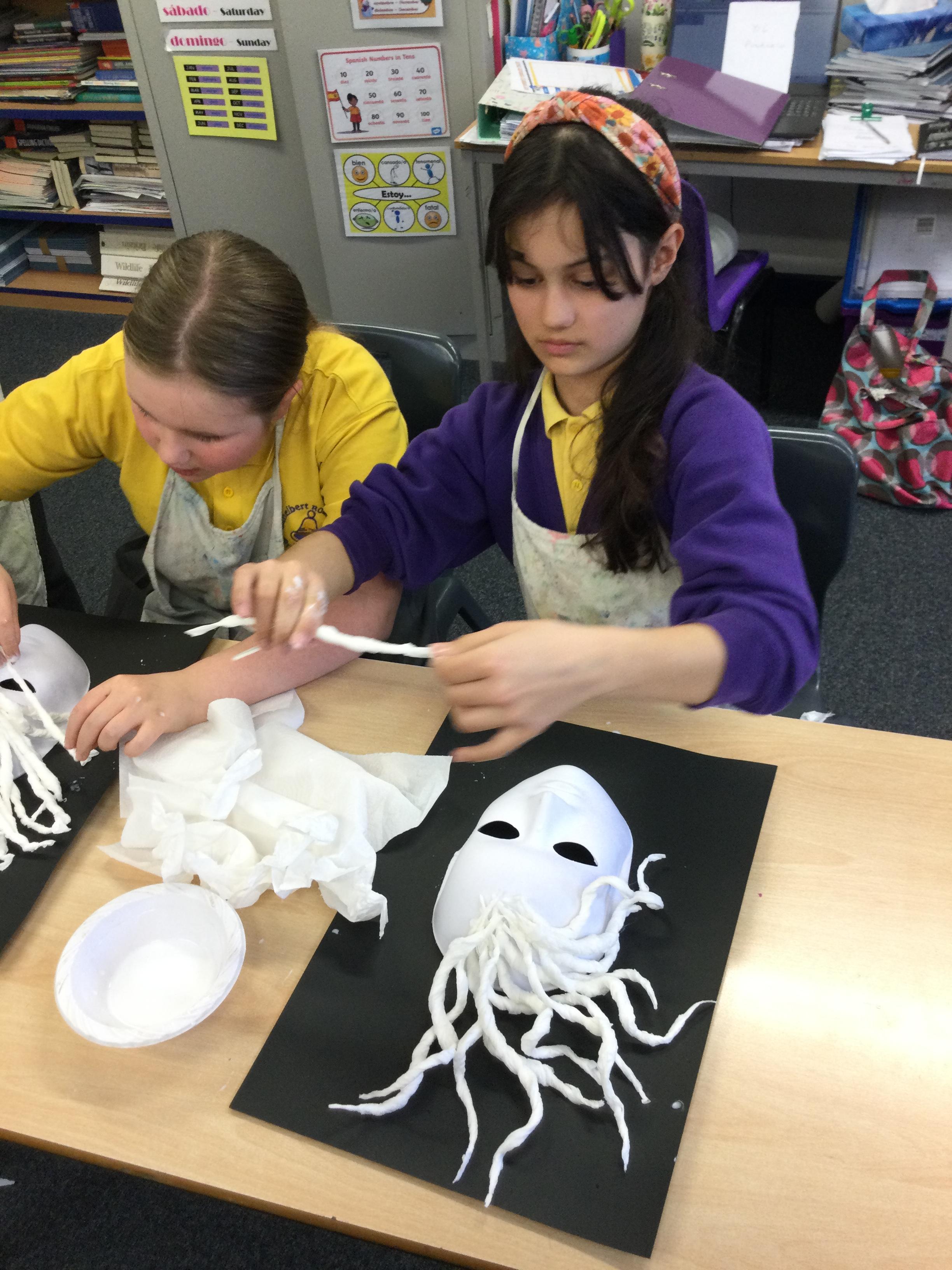Year 6 are learning about ancient Greece. In art they used kitchen roll and pva glue to sculpt heads of Medusa; messy but fun!