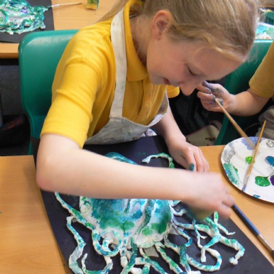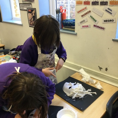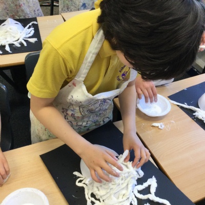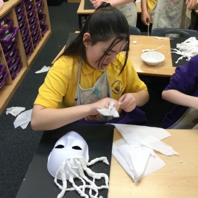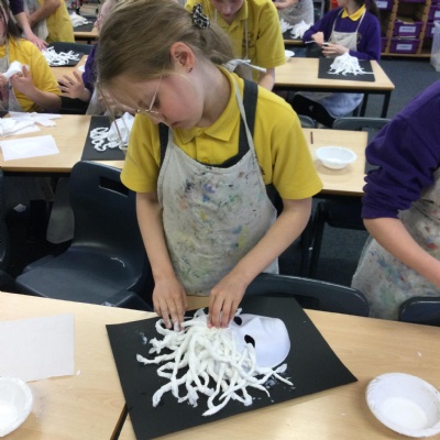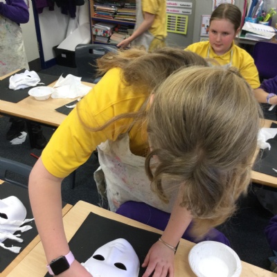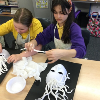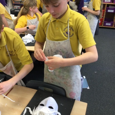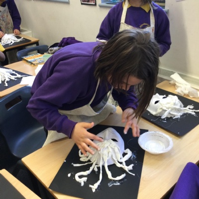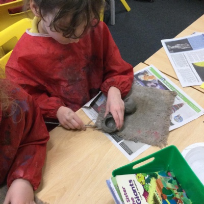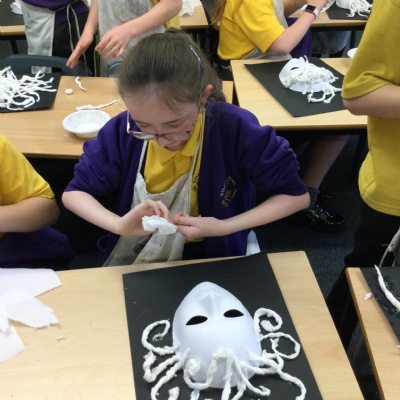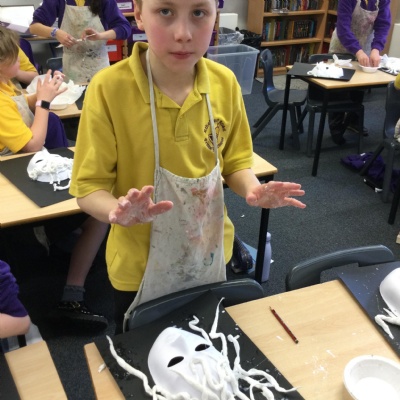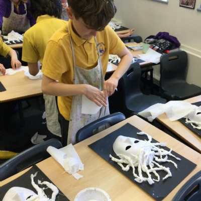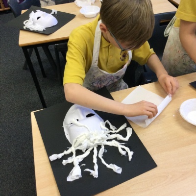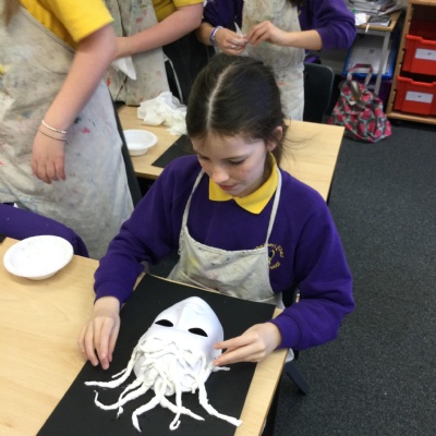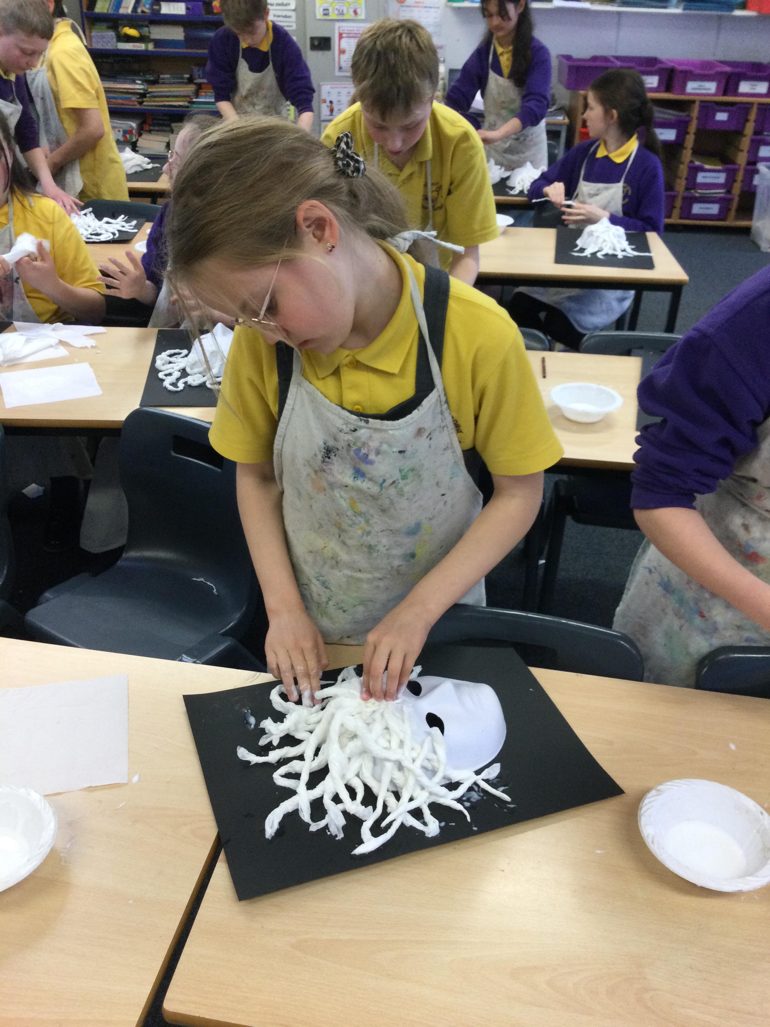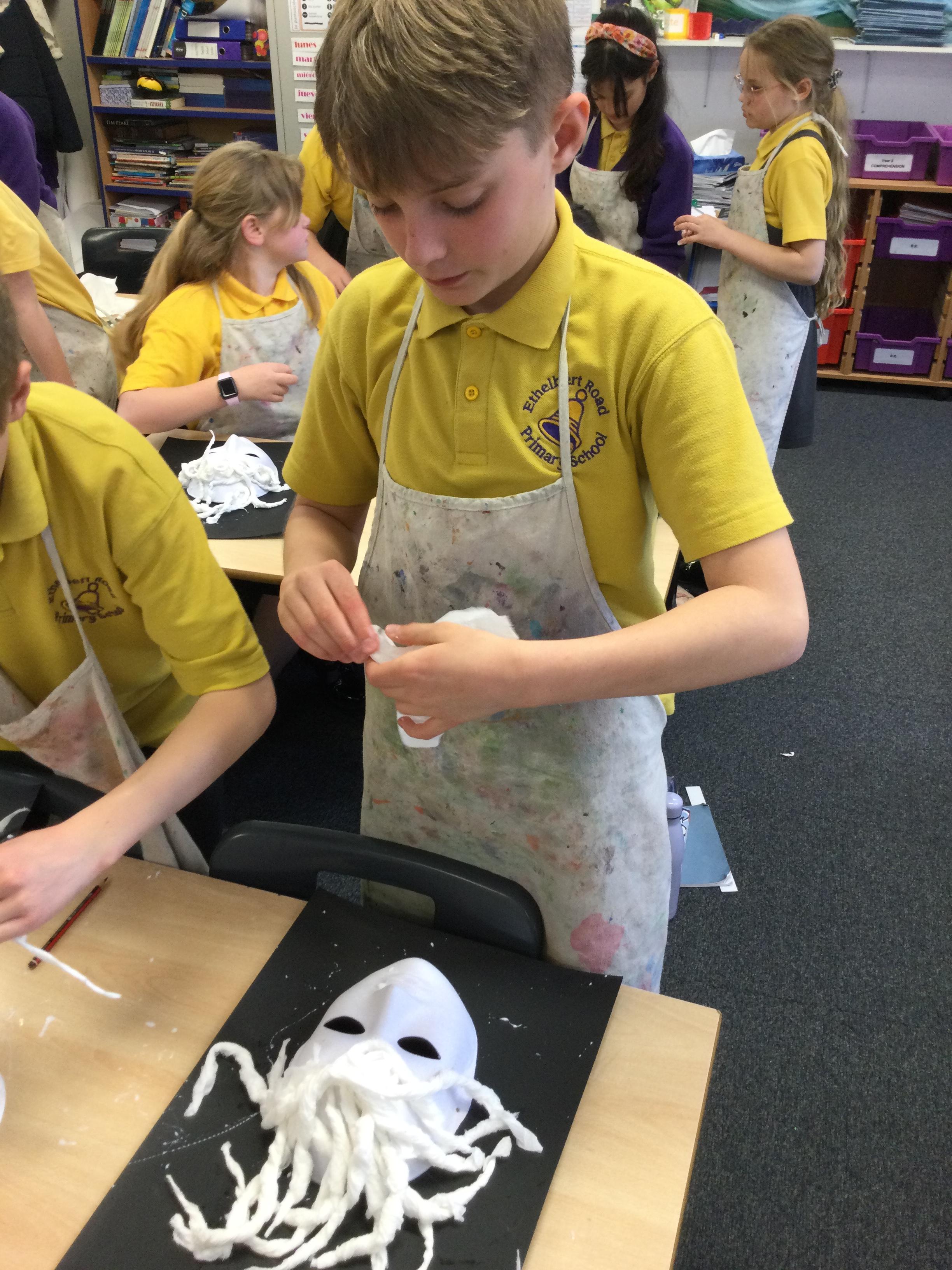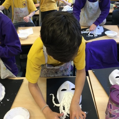 Year 6 are learning about ancient Greece. In art they used kitchen roll and pva glue to sculpt heads of Medusa; messy but fun!