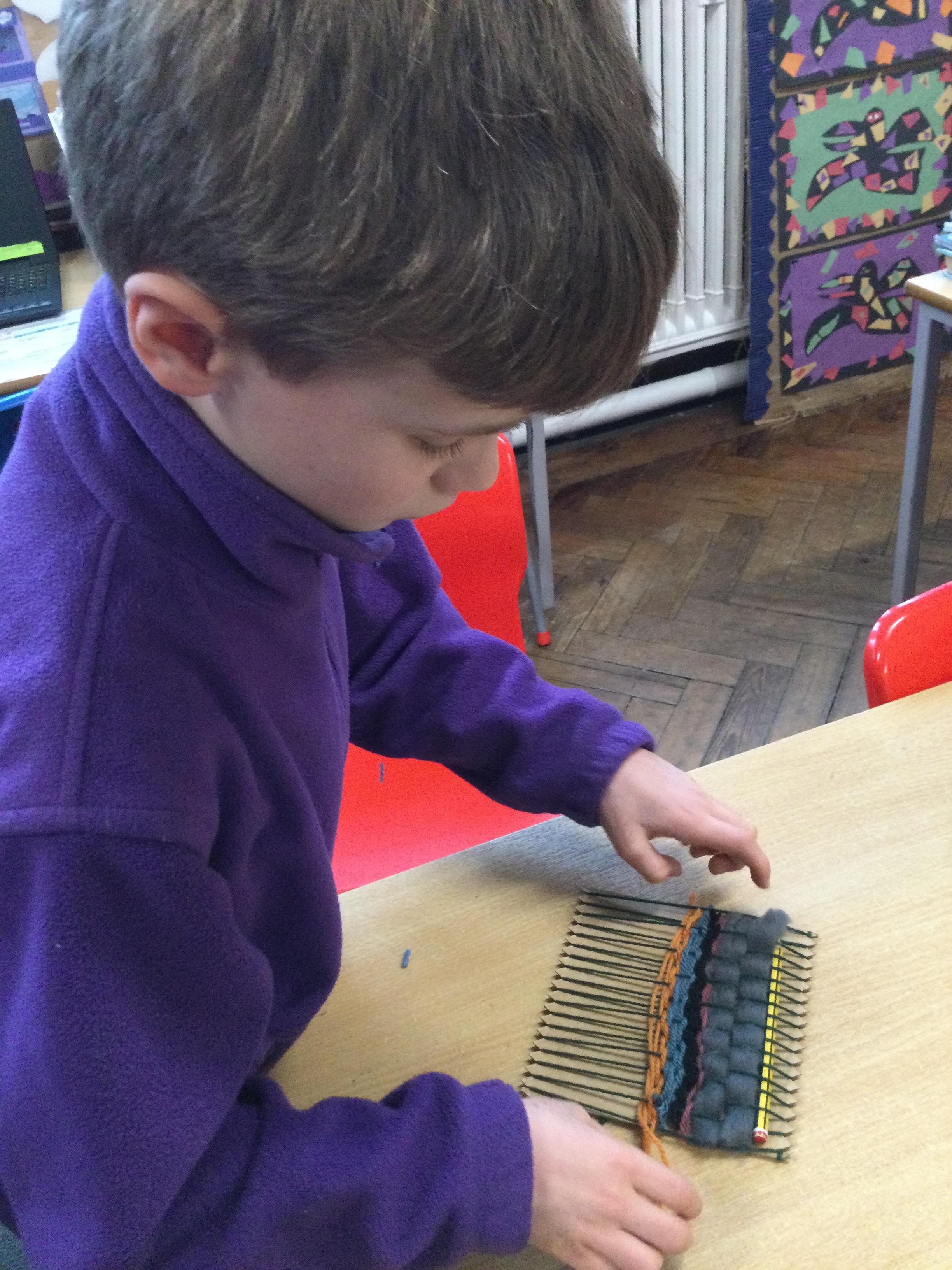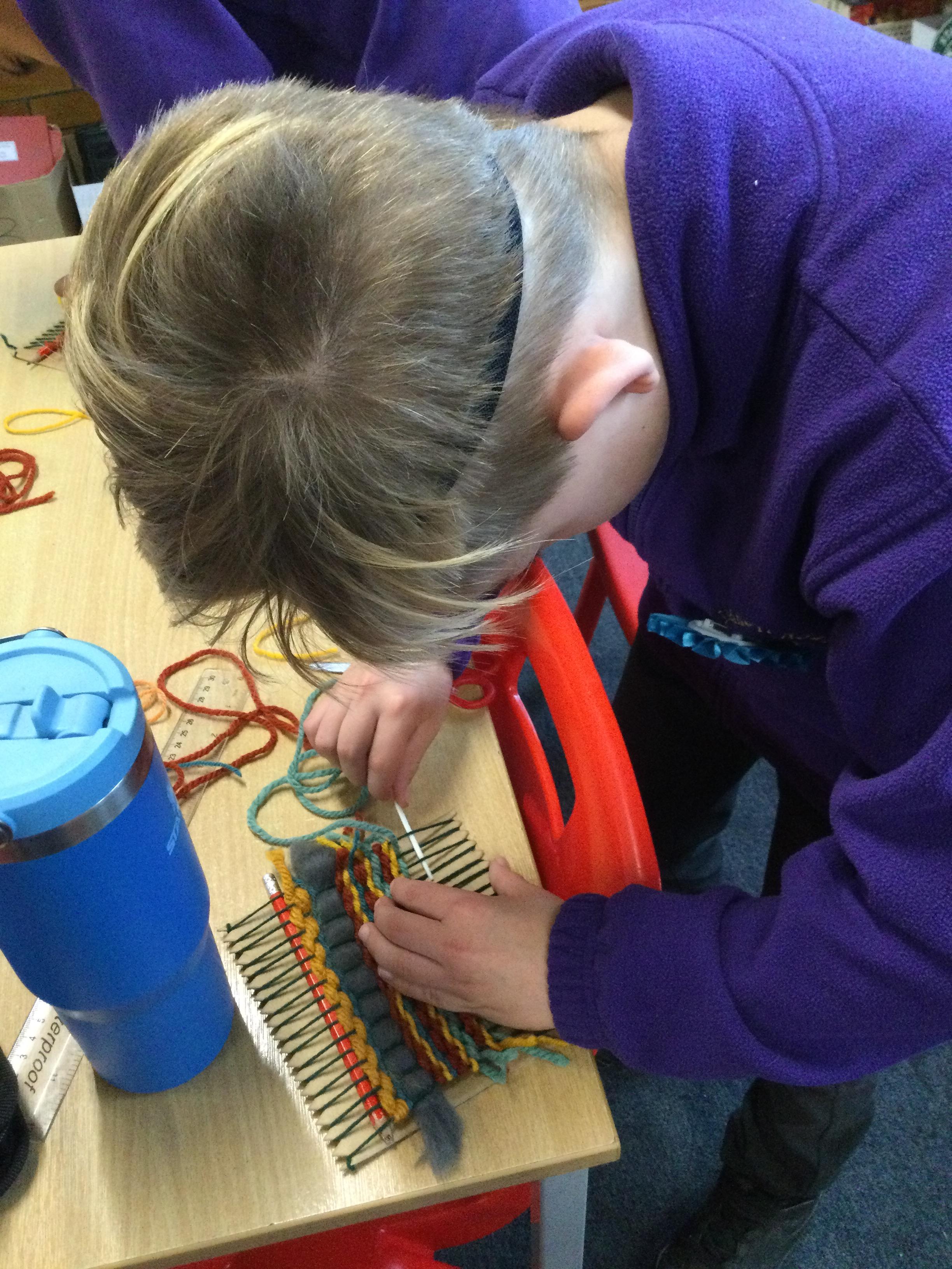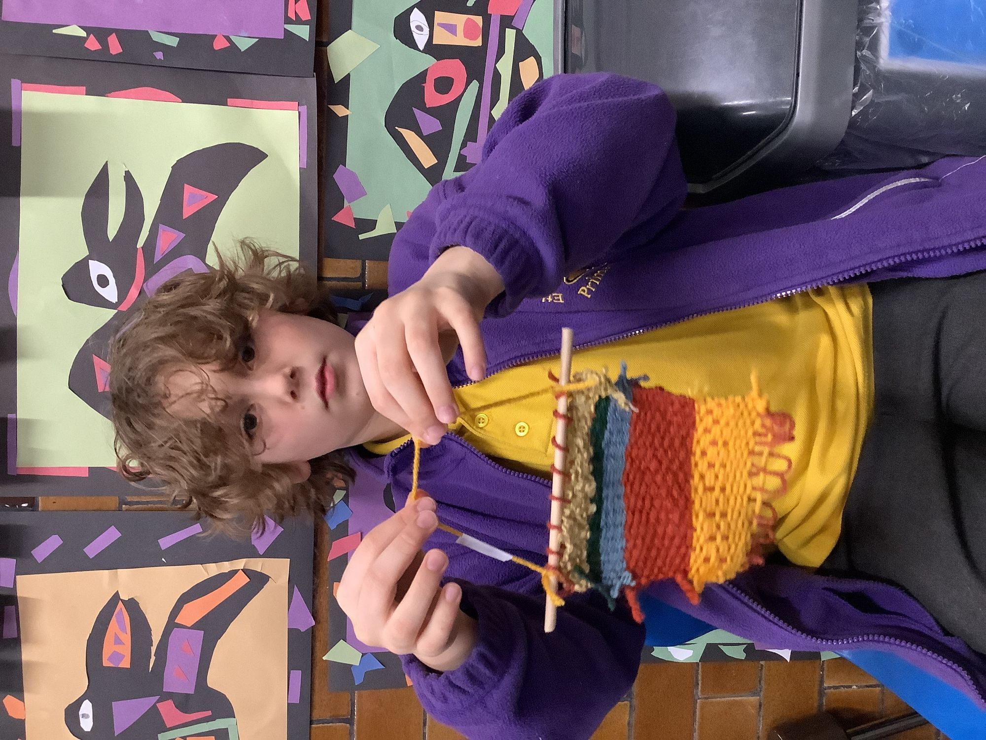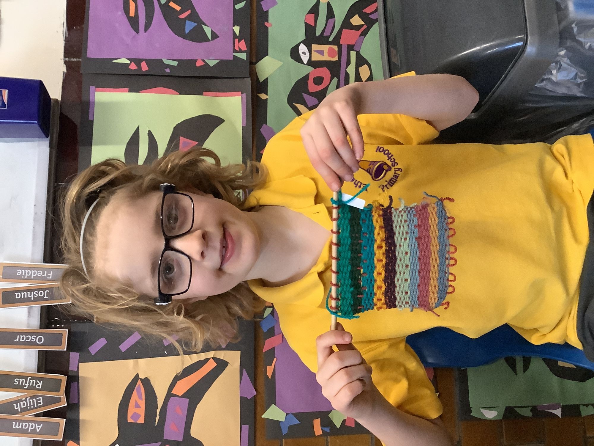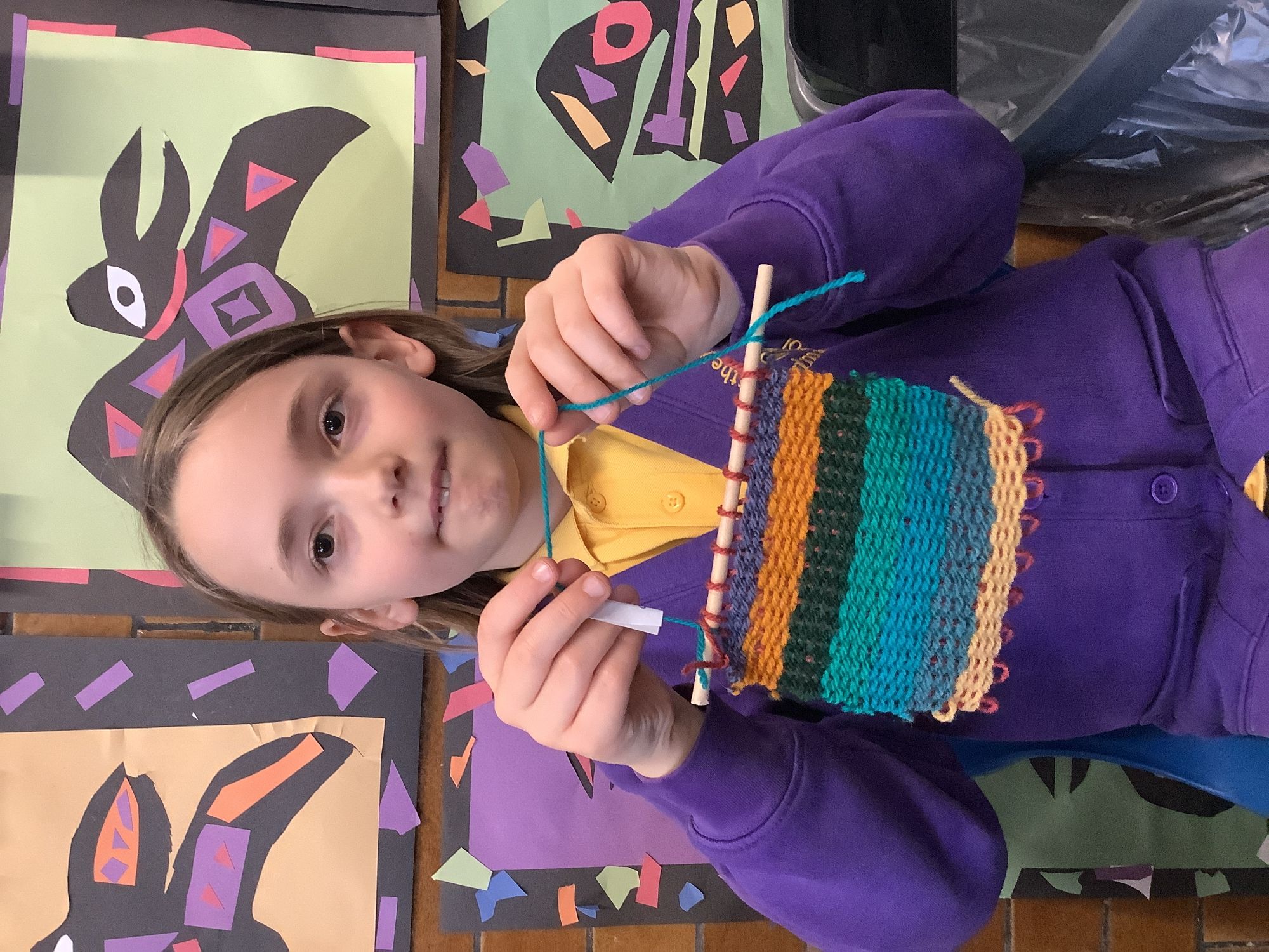 Year 4 were inspired by the textile art of Native Americans. They used wool and a cardboard loom to weave a wall hanging.