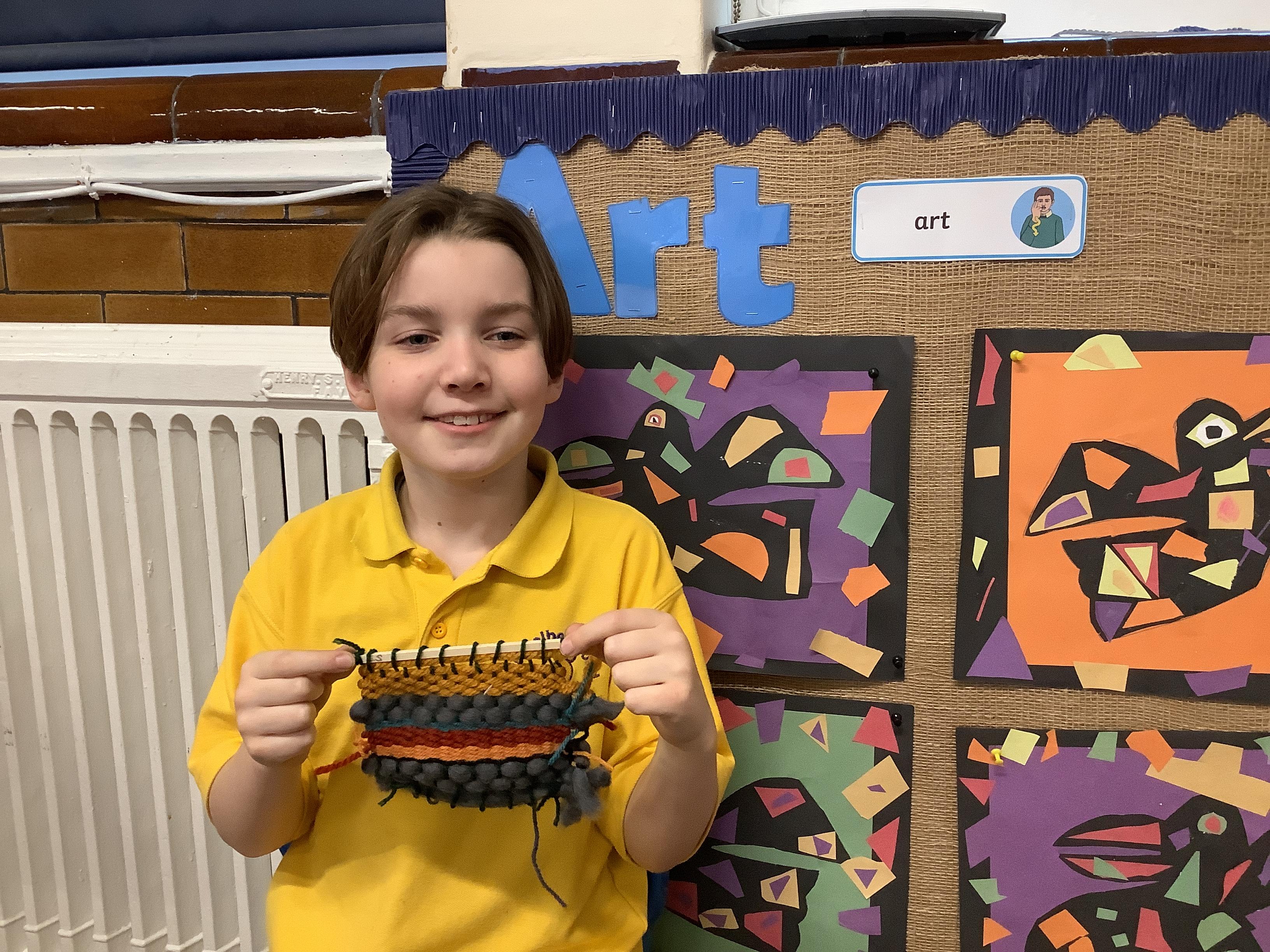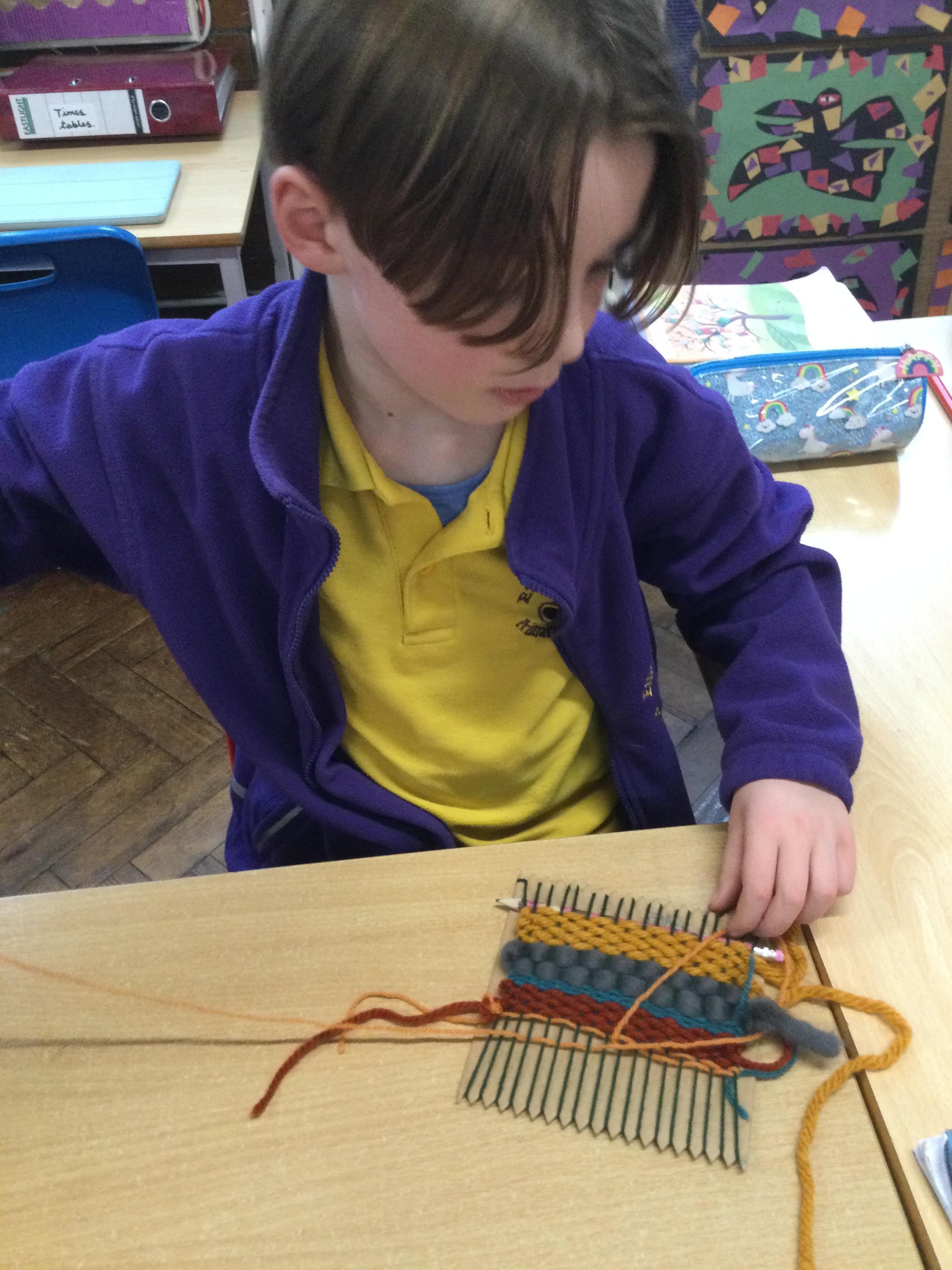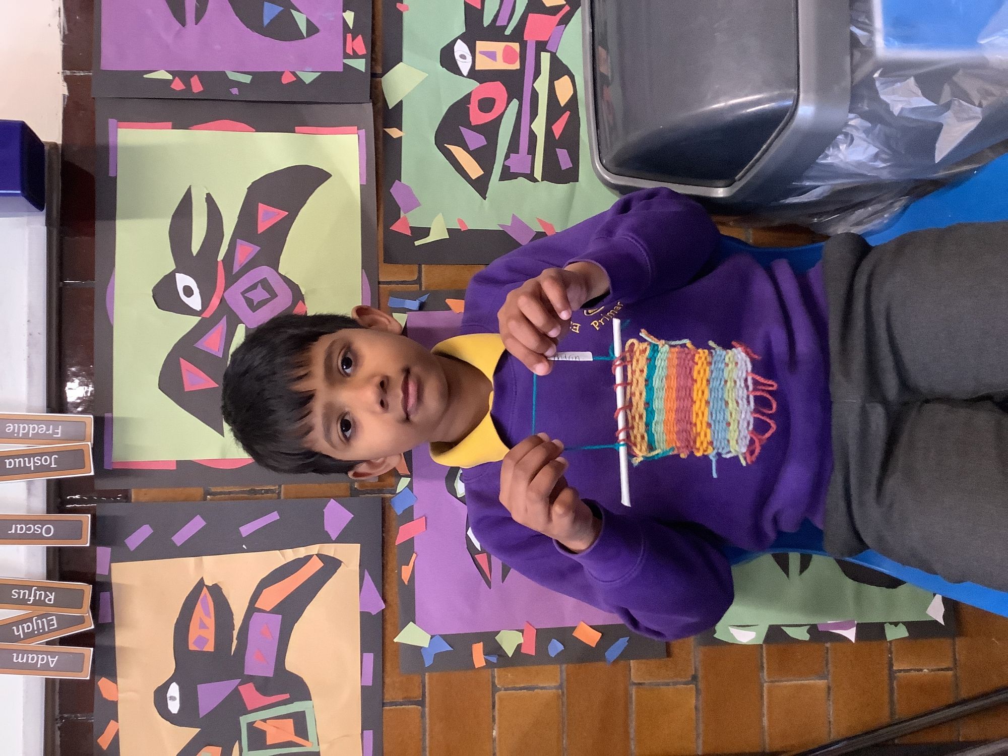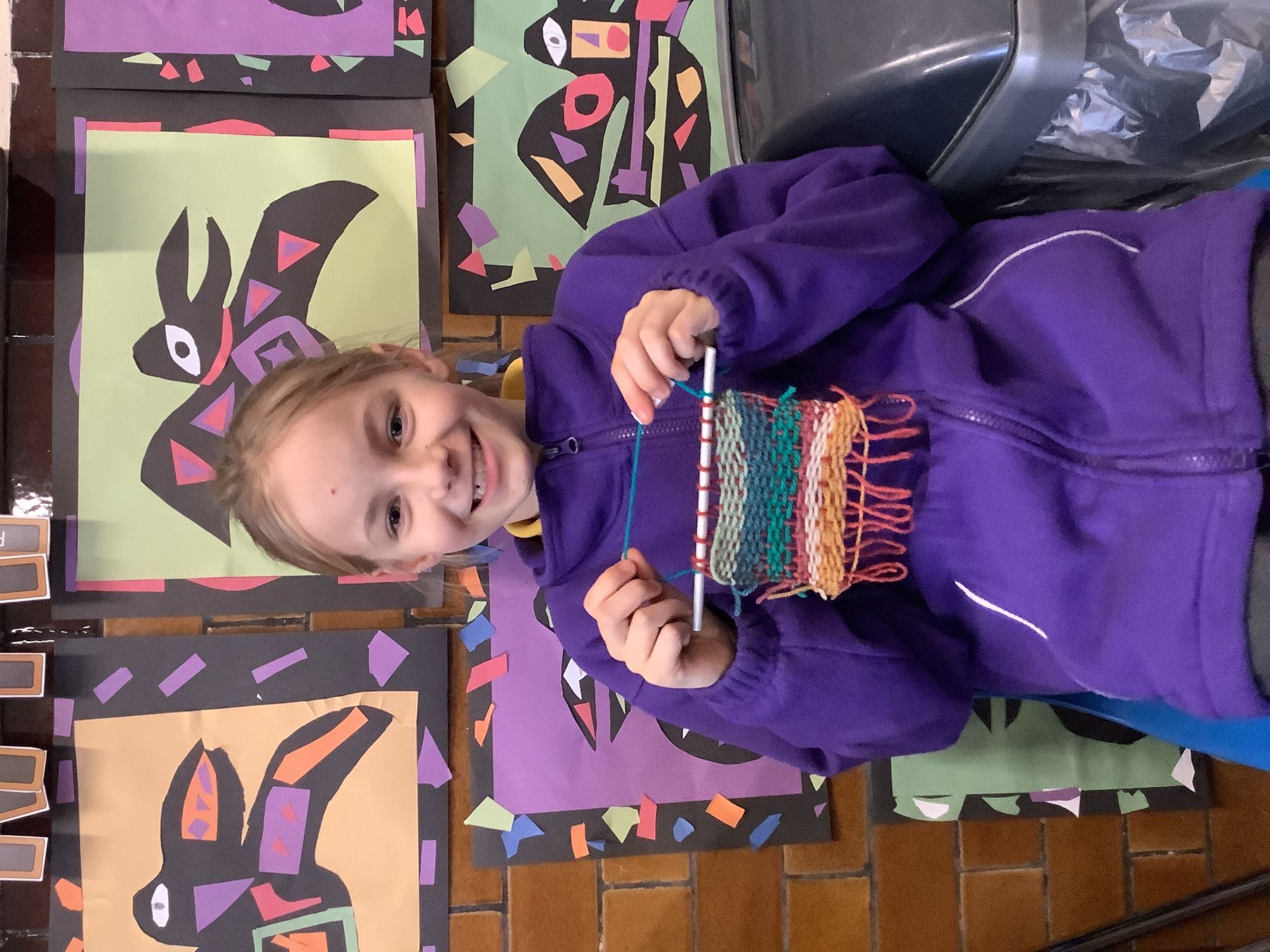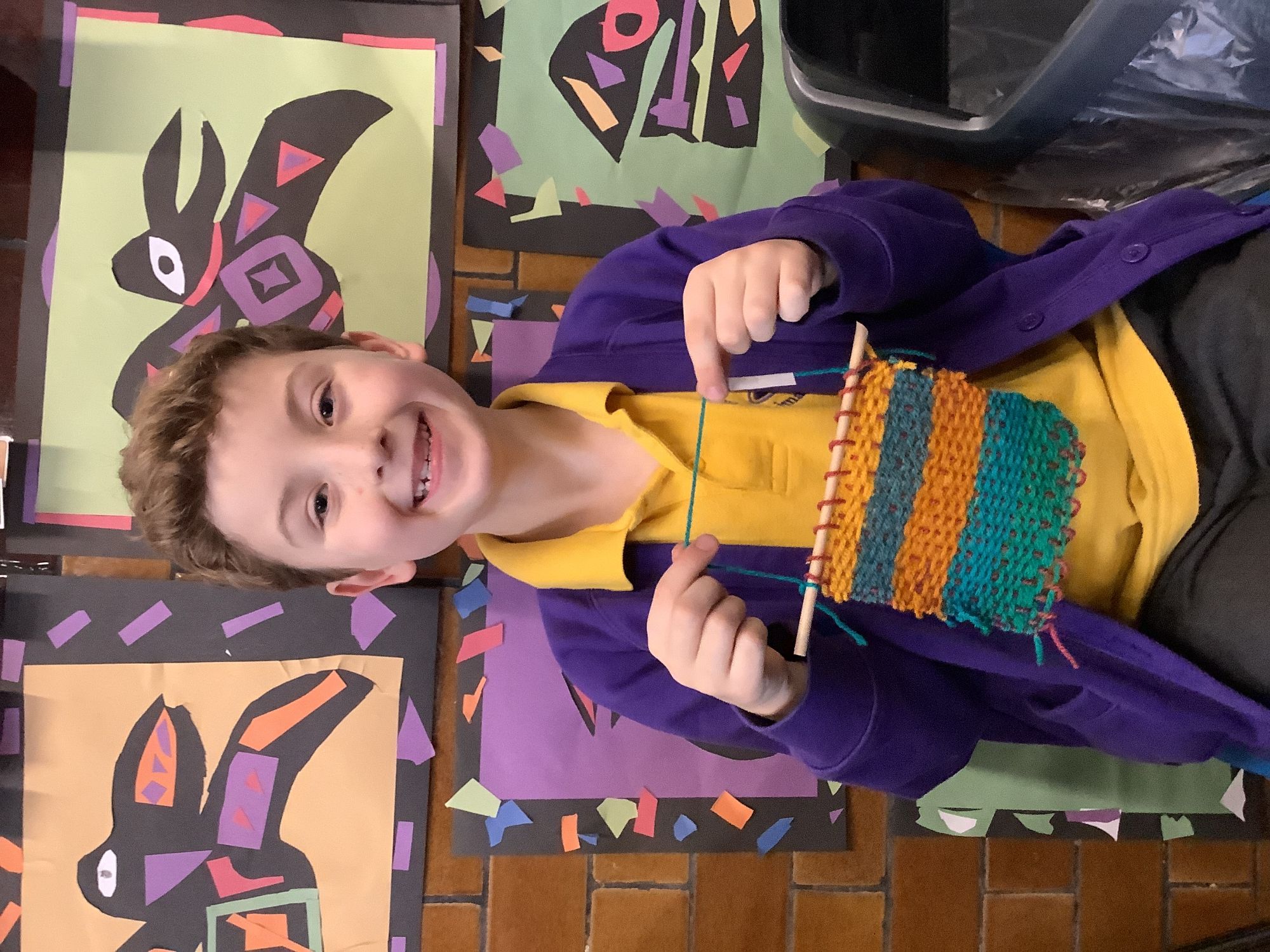 Year 4 were inspired by the textile art of Native Americans. They used wool and a cardboard loom to weave a wall hanging.