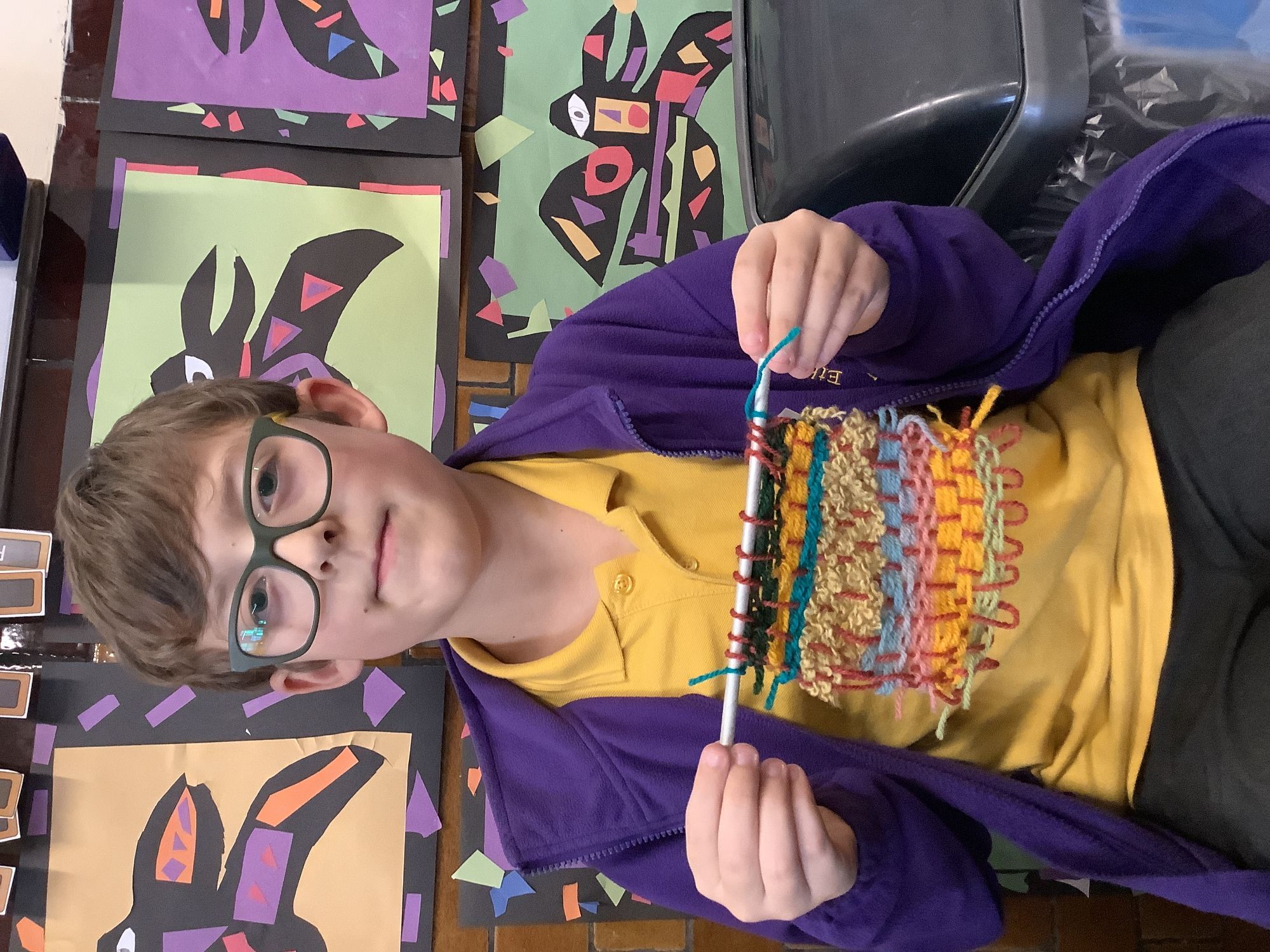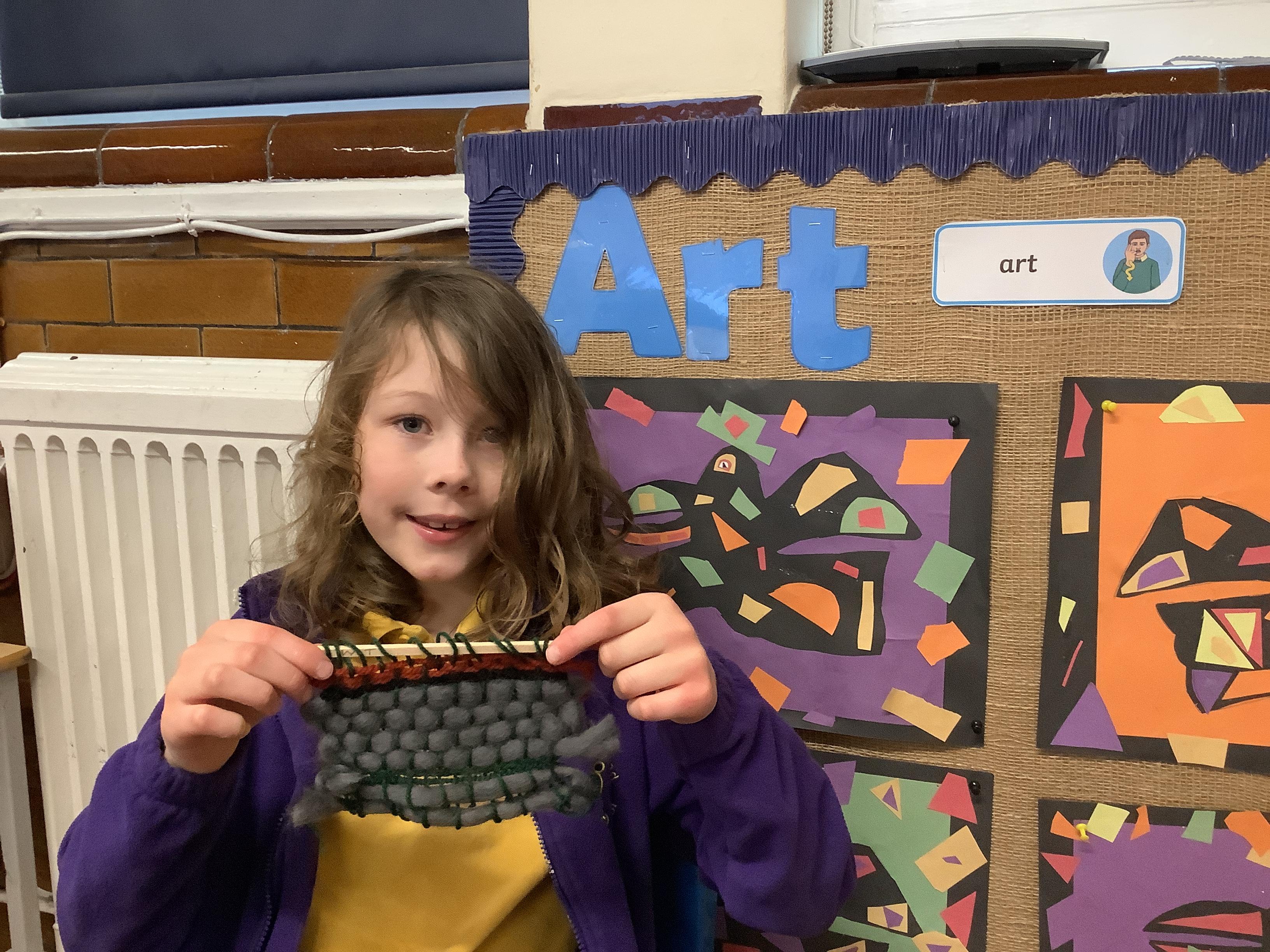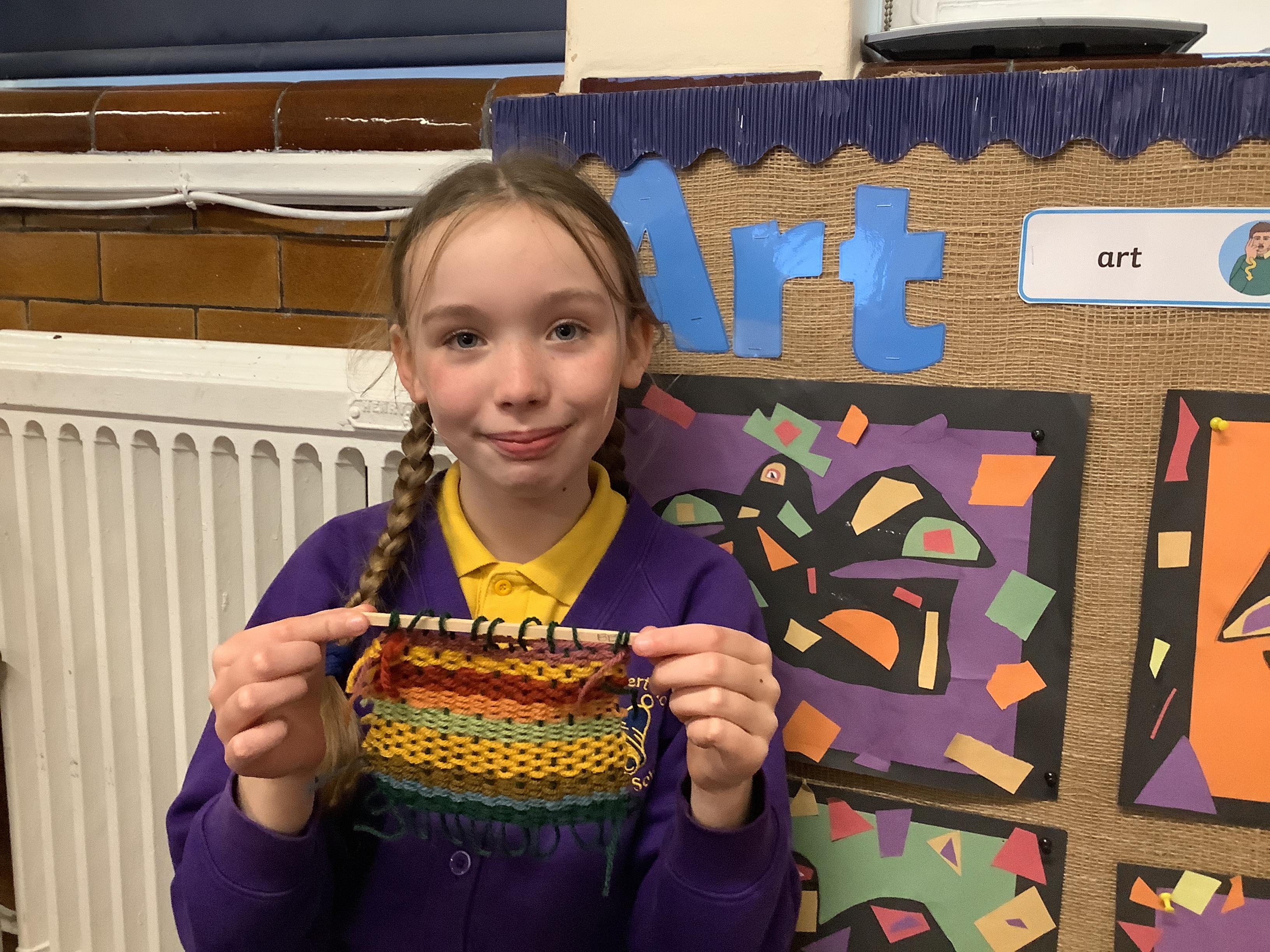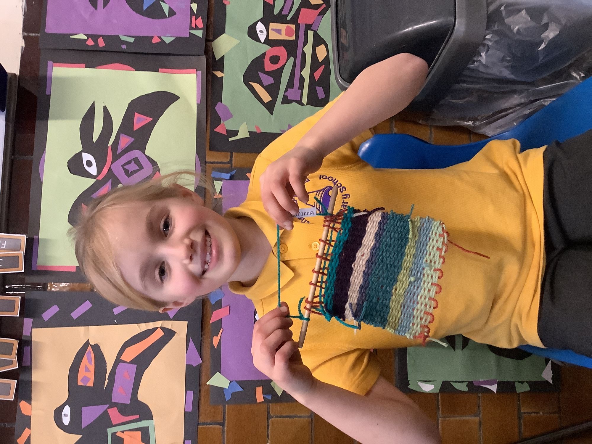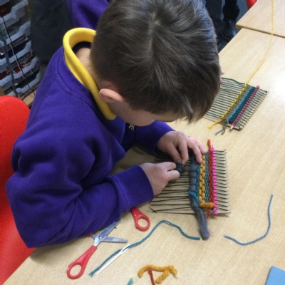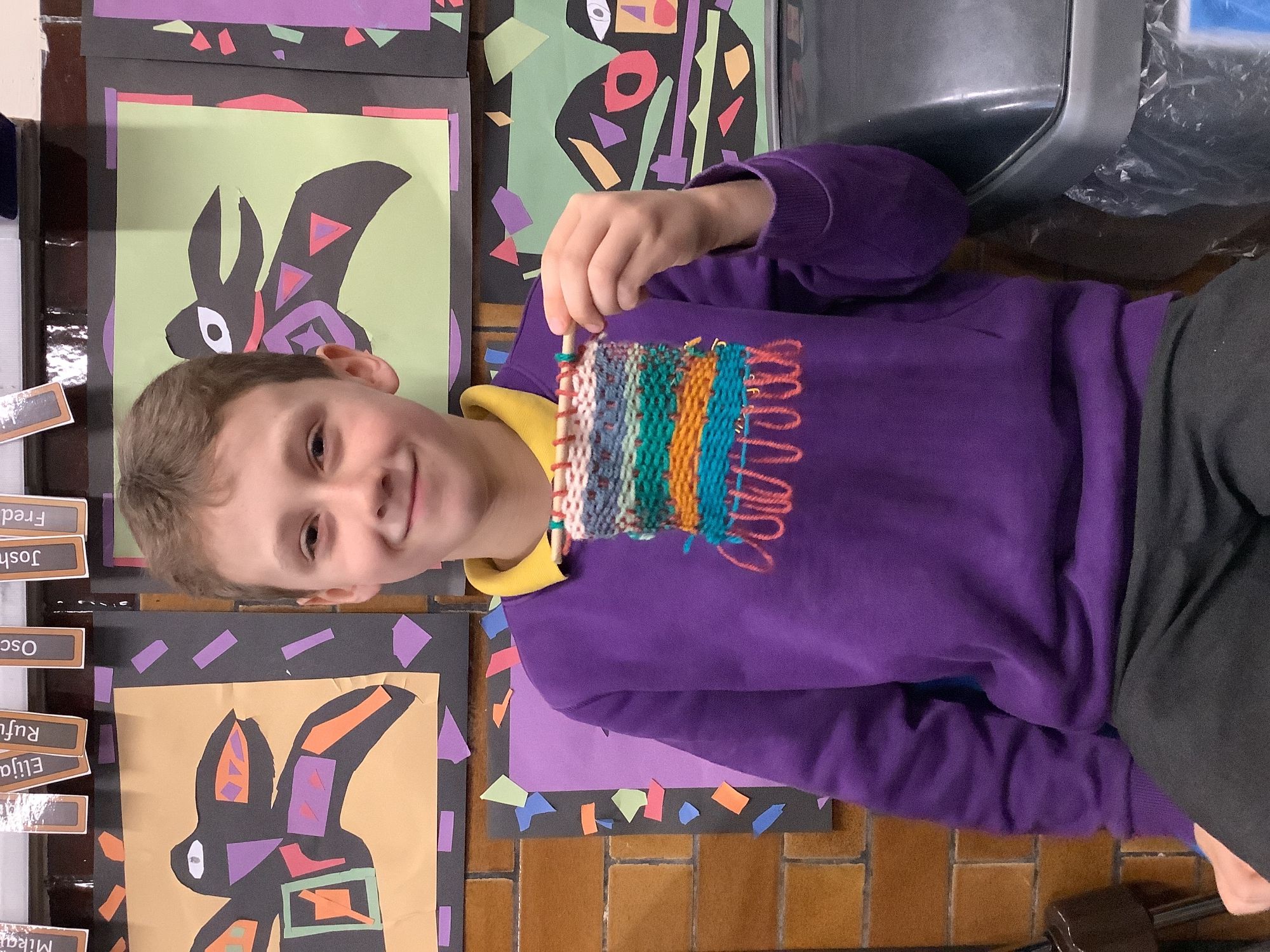 Year 4 were inspired by the textile art of Native Americans. They used wool and a cardboard loom to weave a wall hanging.