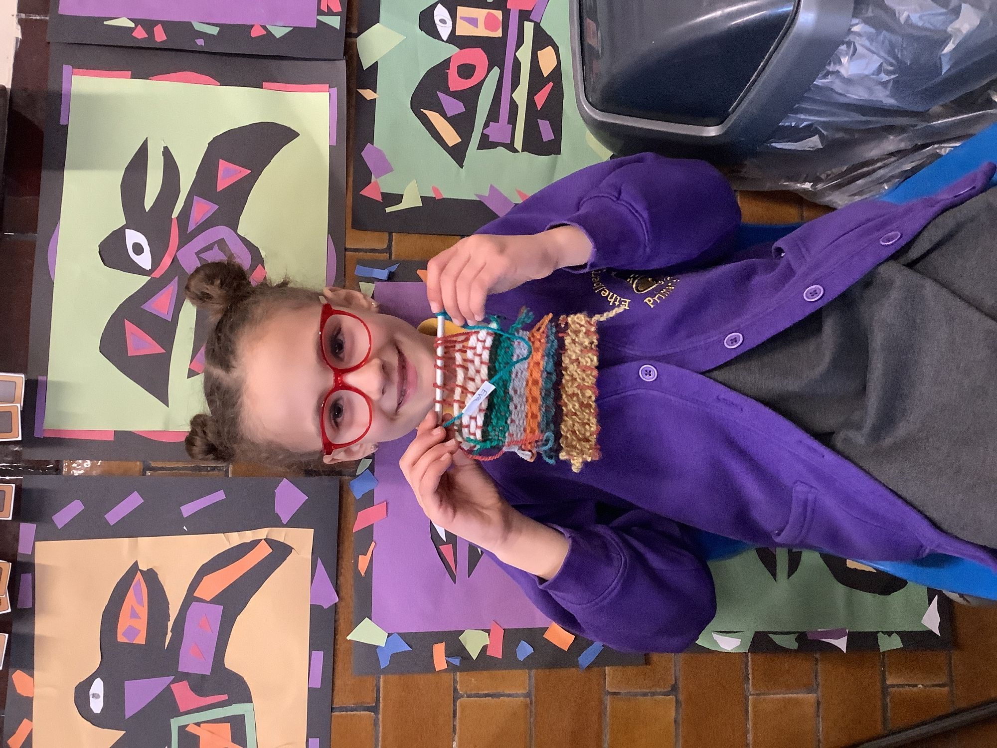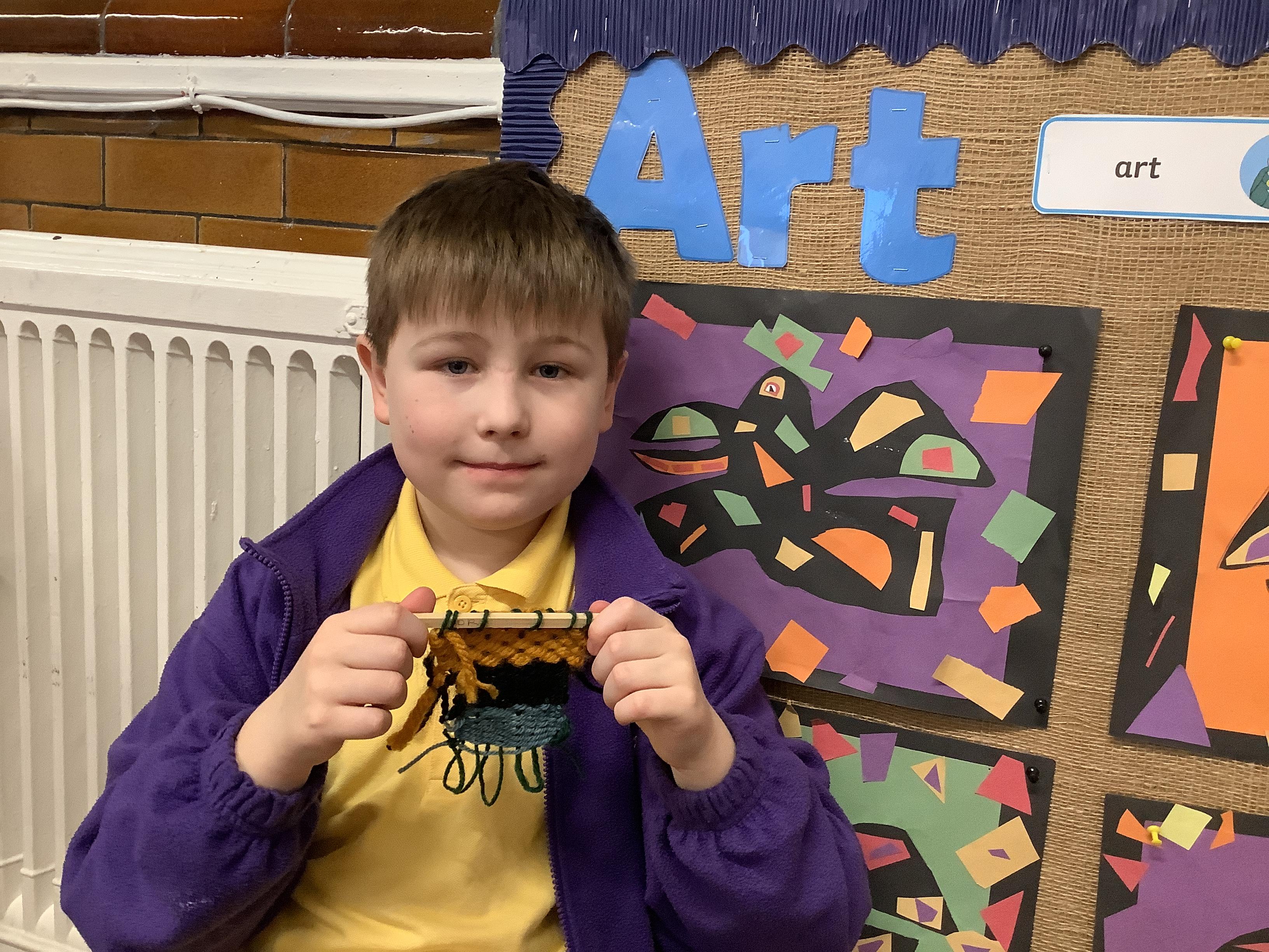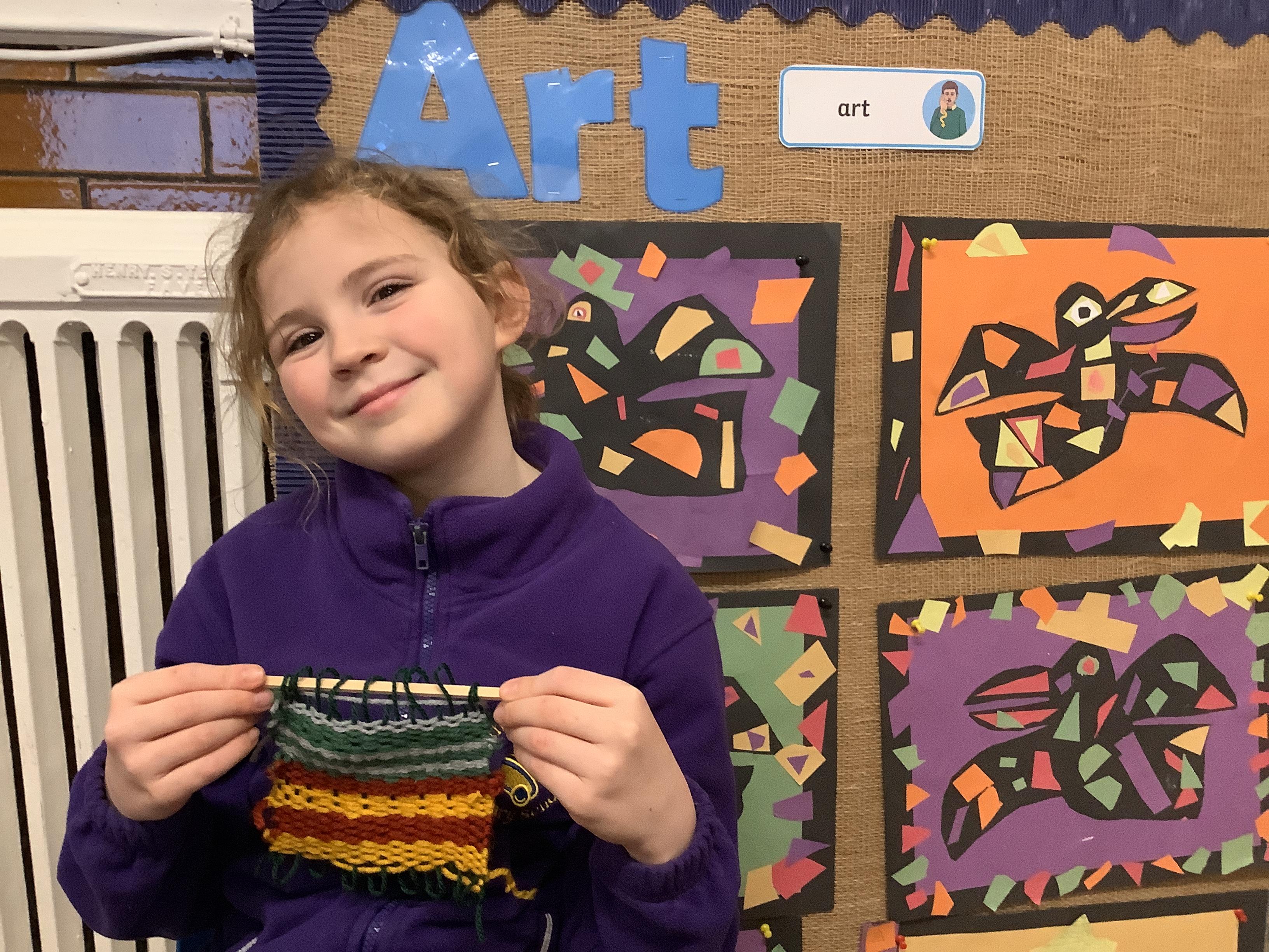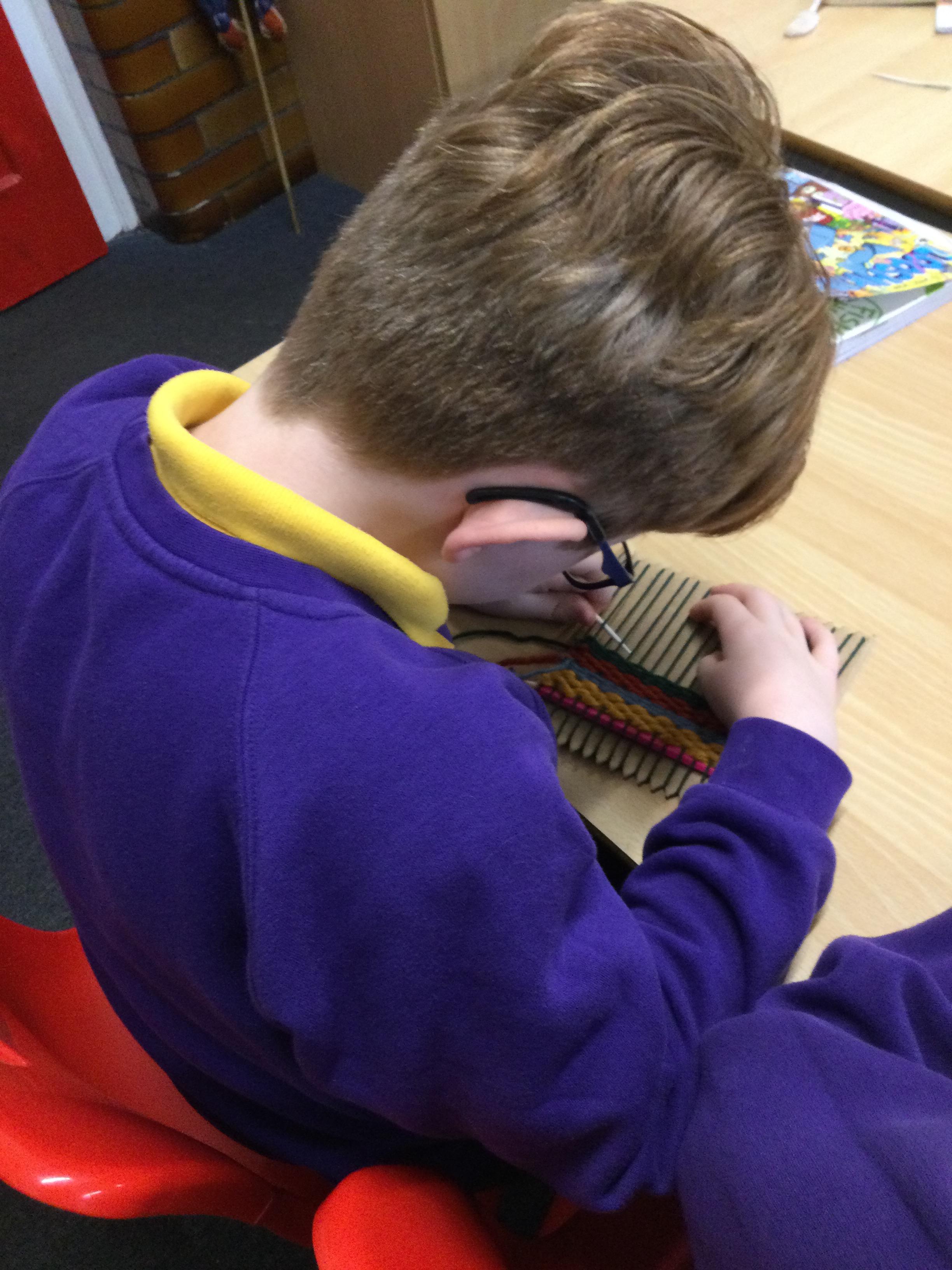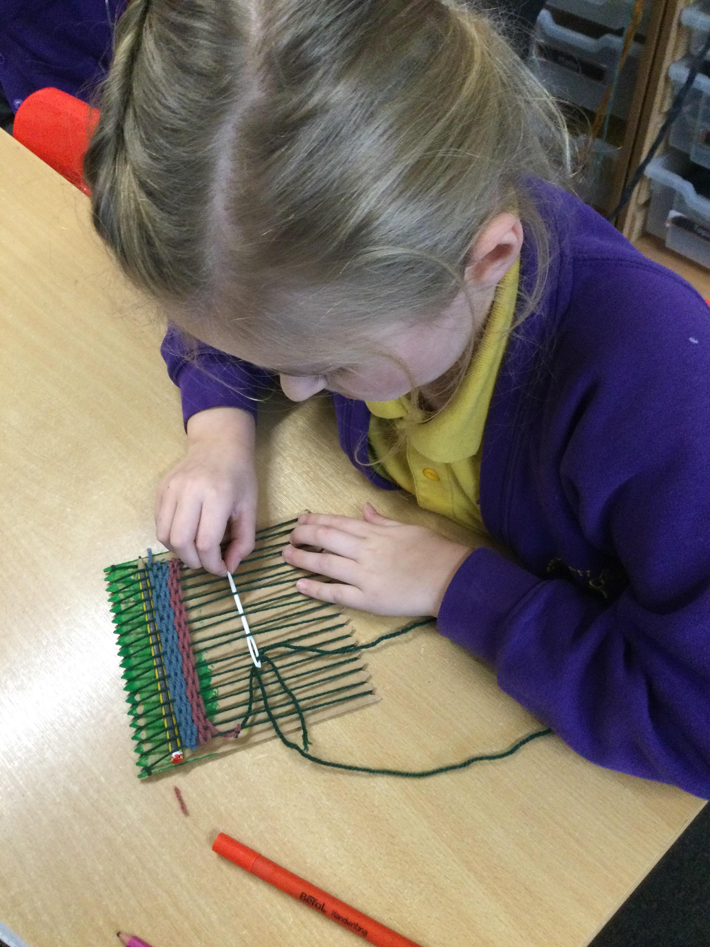Year 4 were inspired by the textile art of Native Americans. They used wool and a cardboard loom to weave a wall hanging.