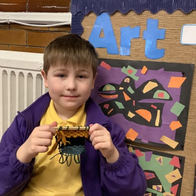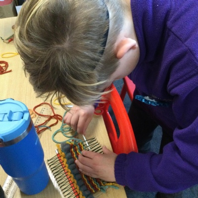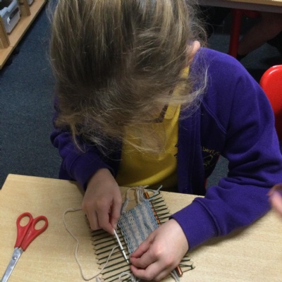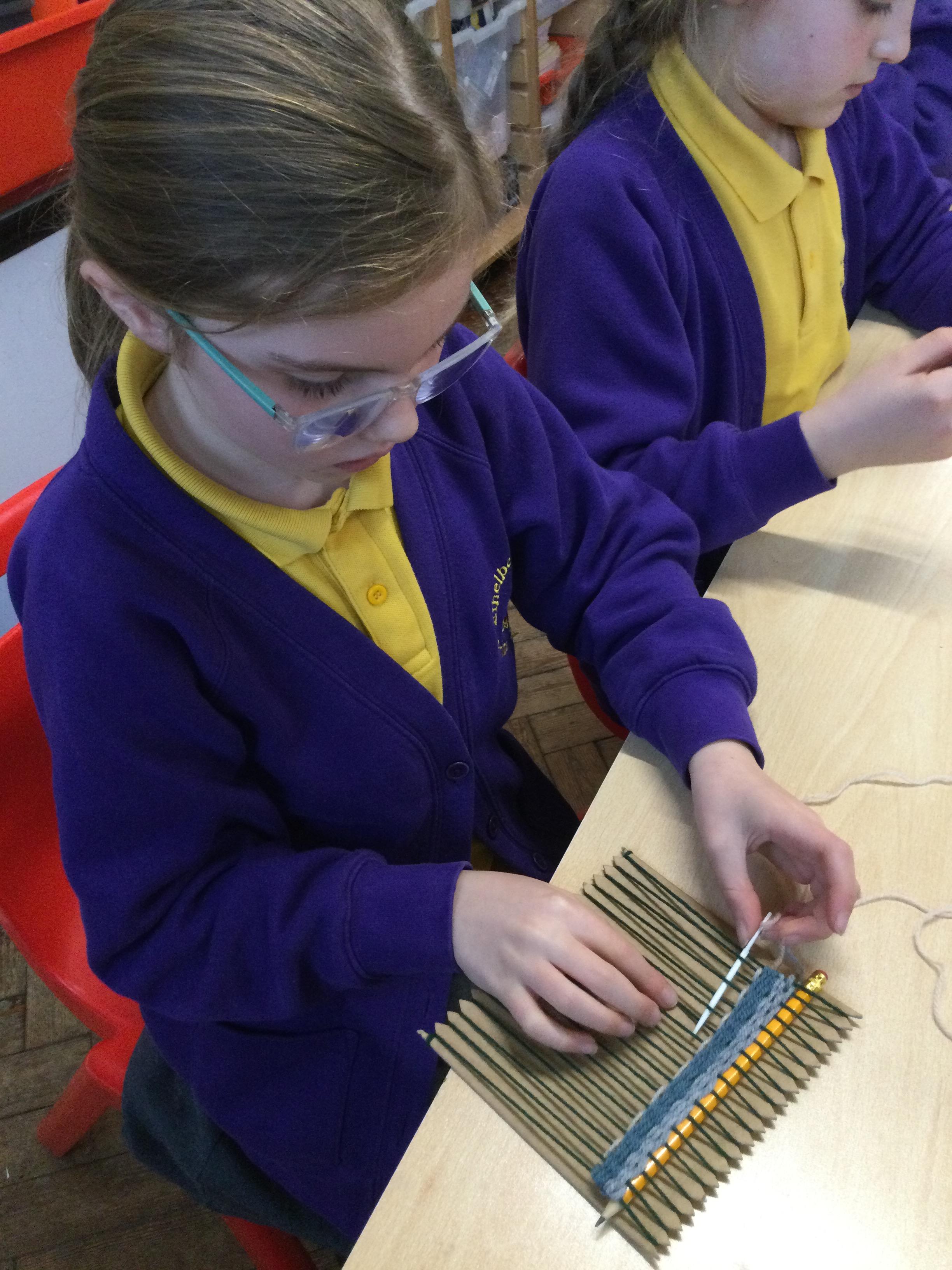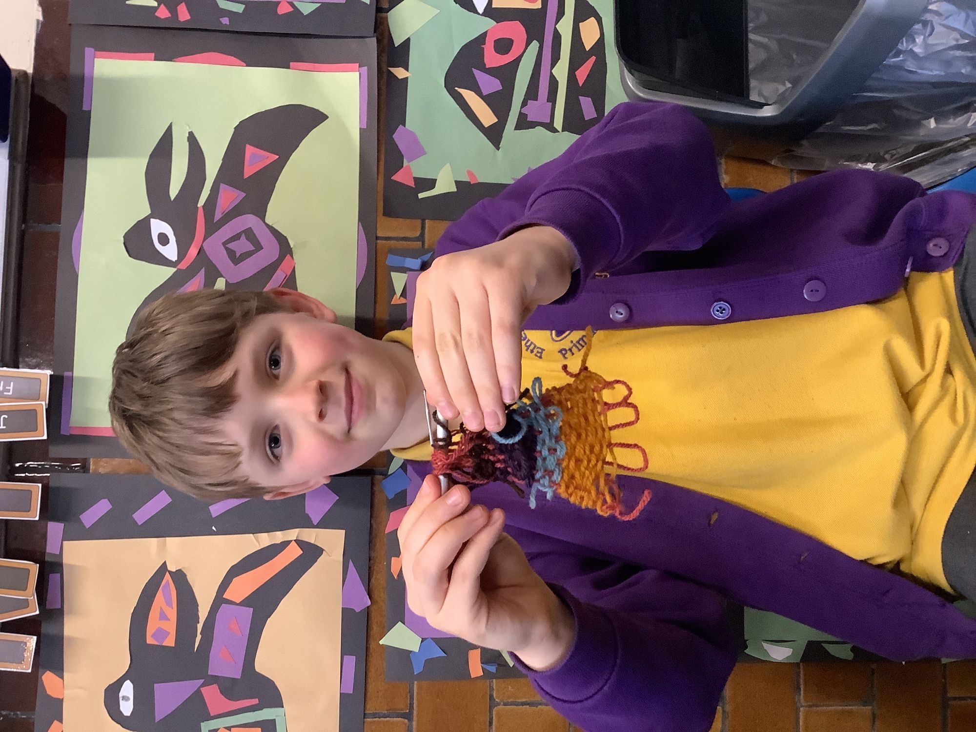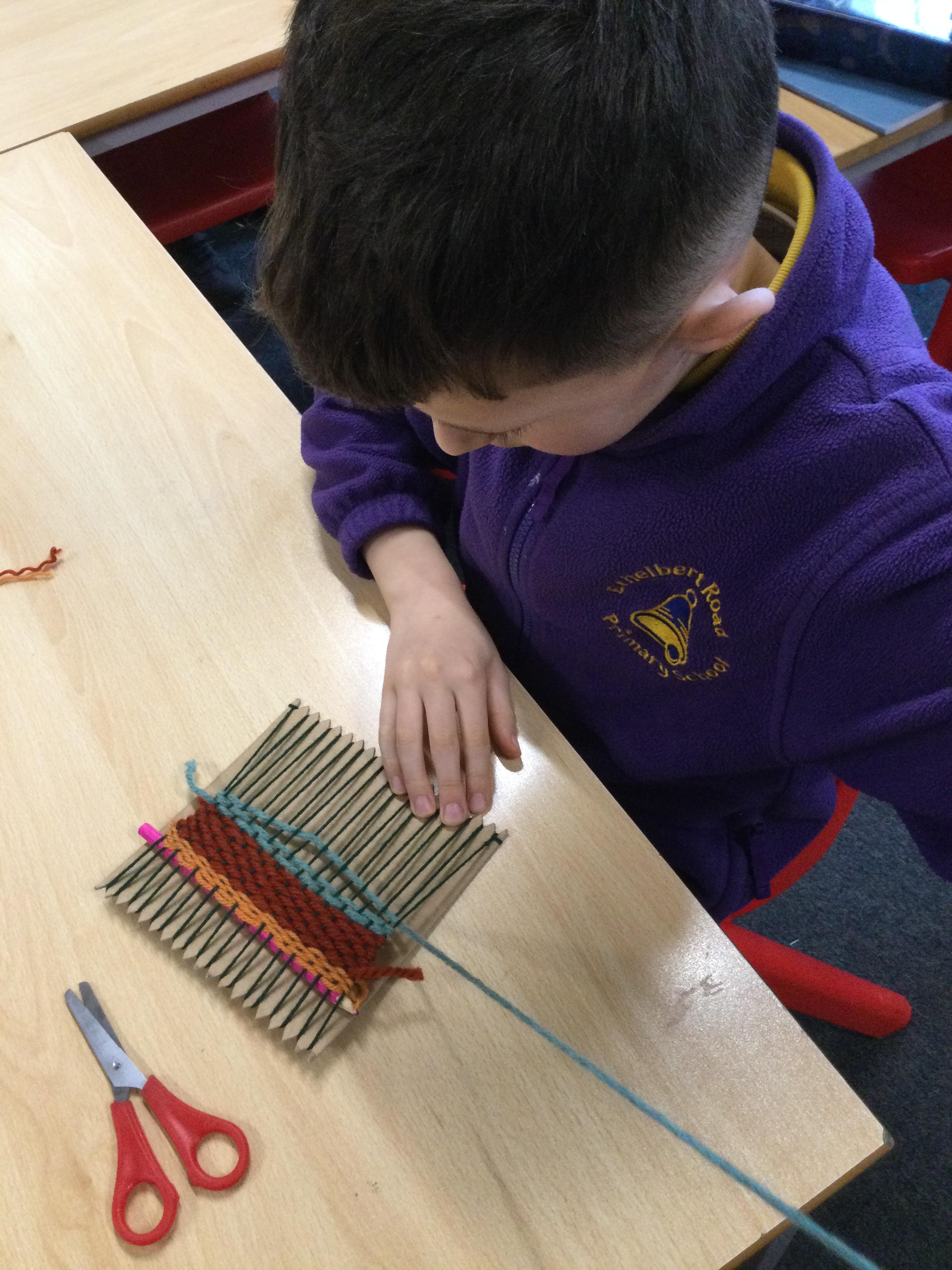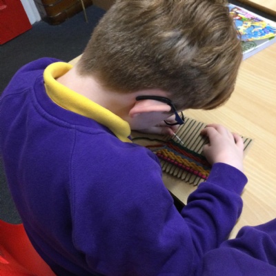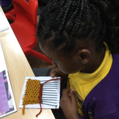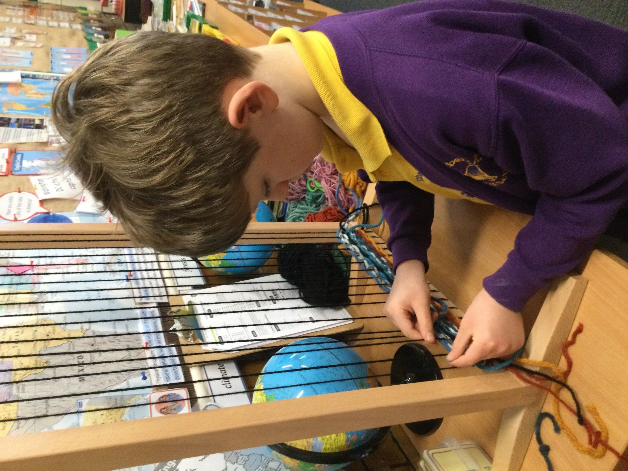 Year 4 were inspired by the textile art of Native Americans. They used wool and a cardboard loom to weave a wall hanging.