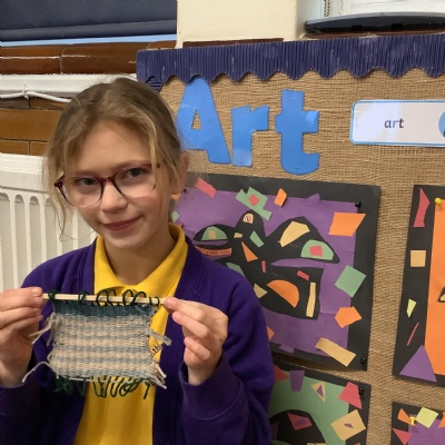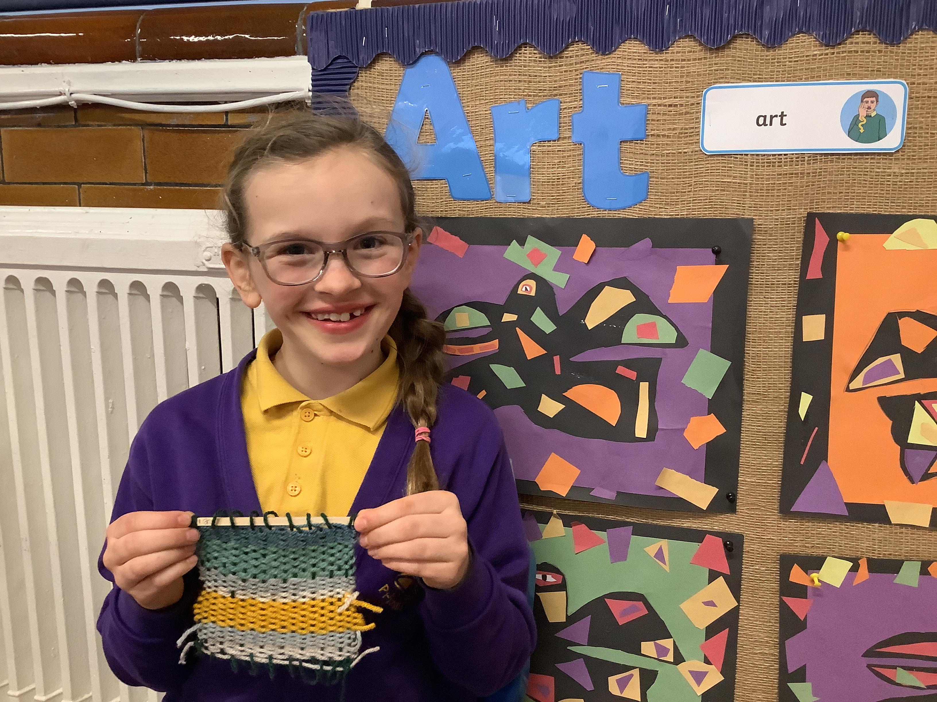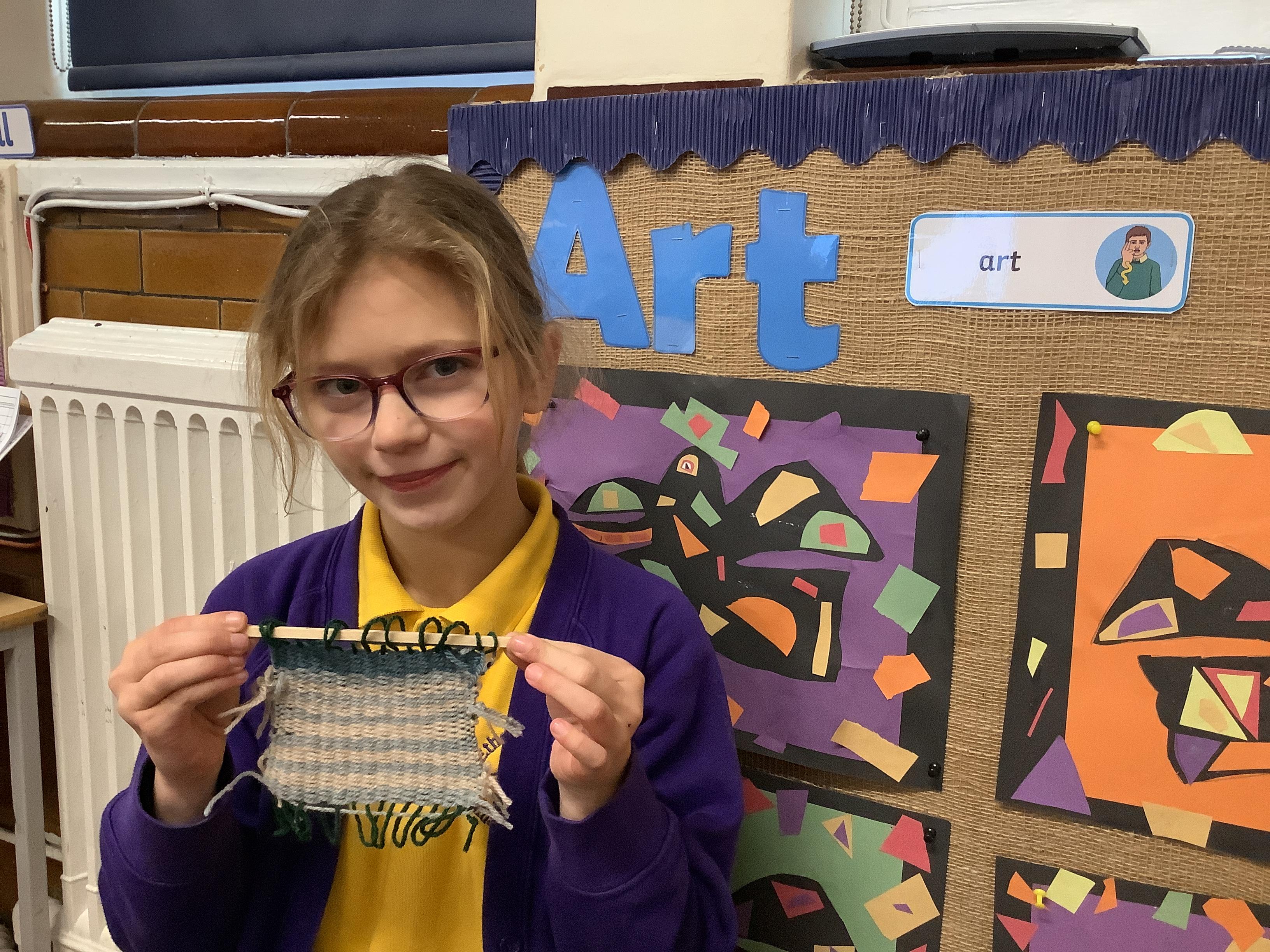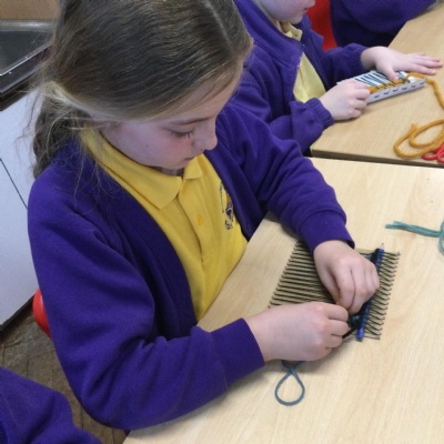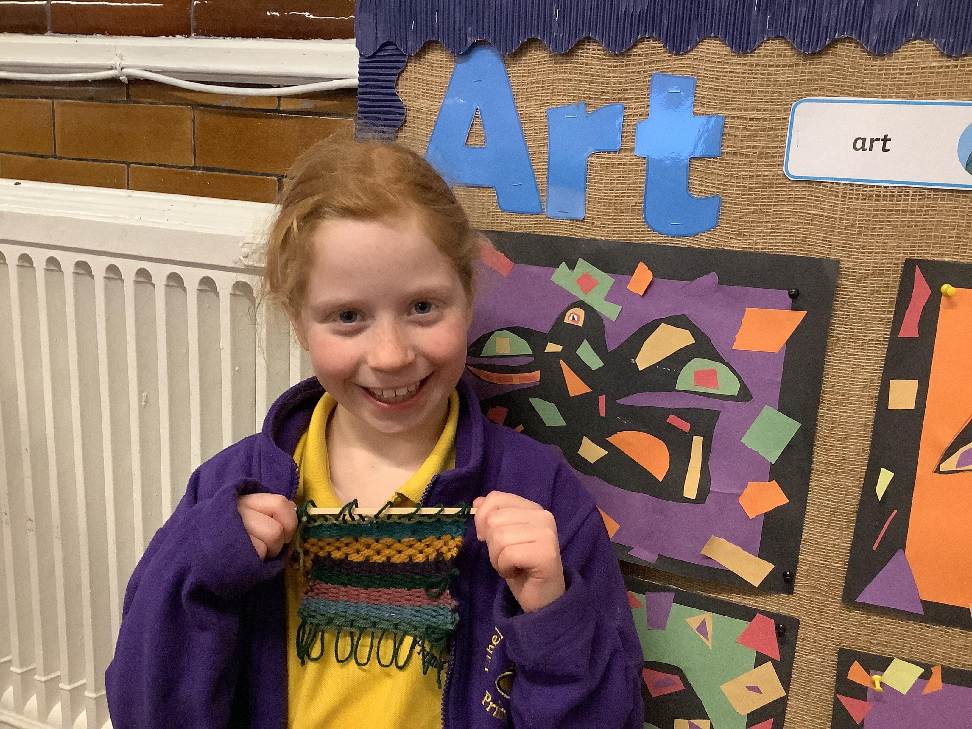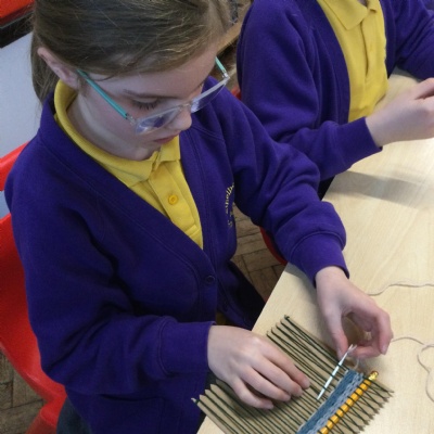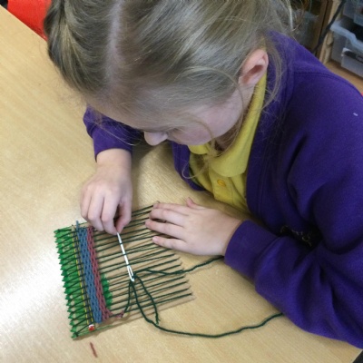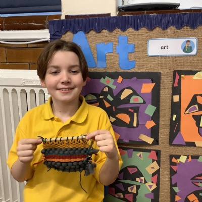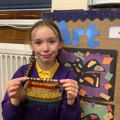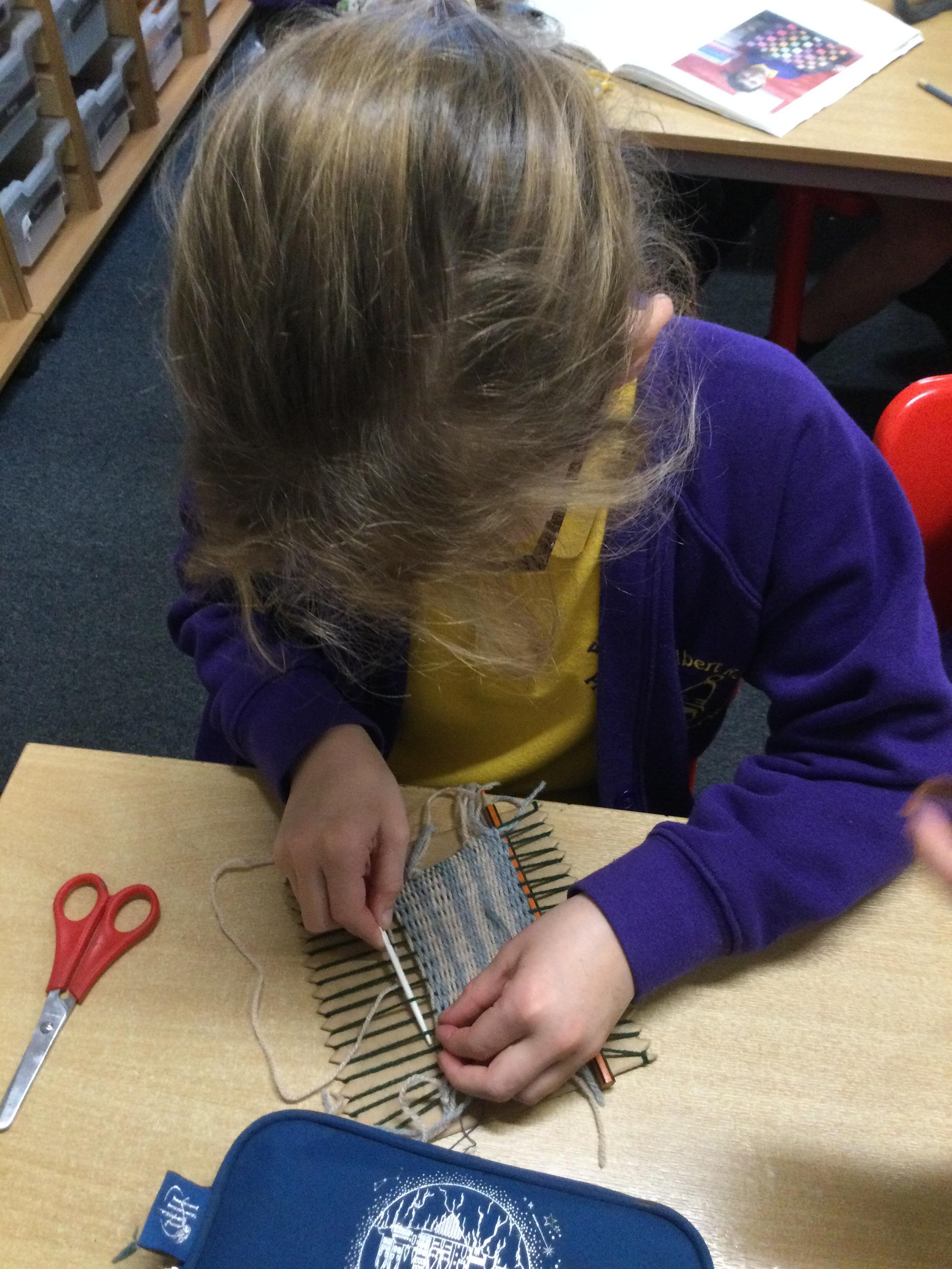 Year 4 were inspired by the textile art of Native Americans. They used wool and a cardboard loom to weave a wall hanging.
