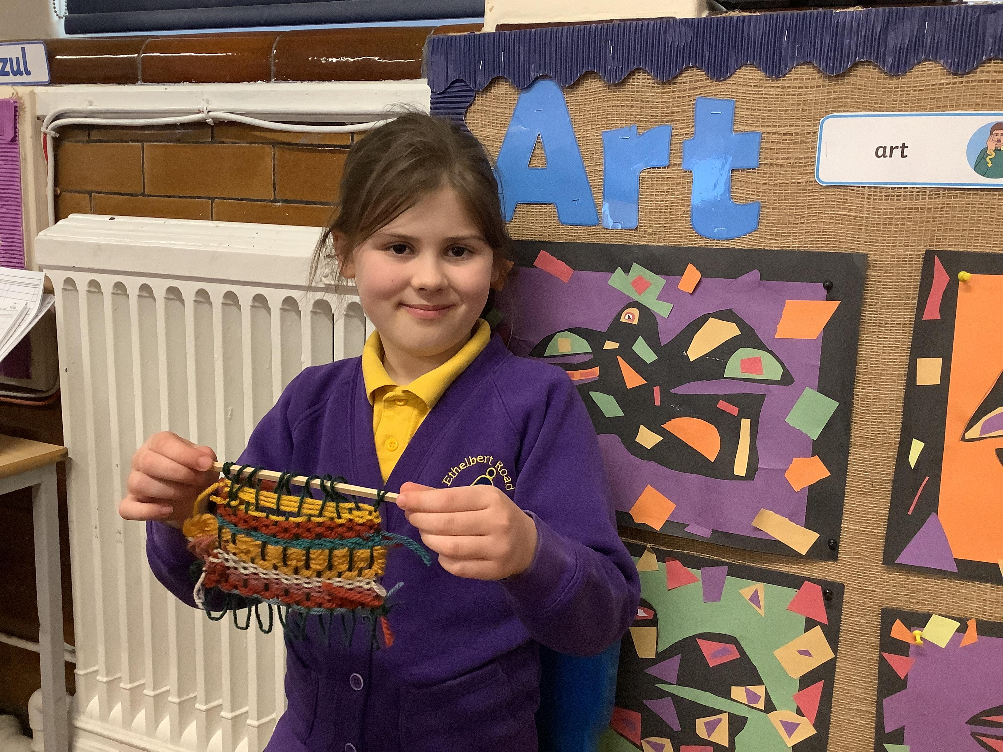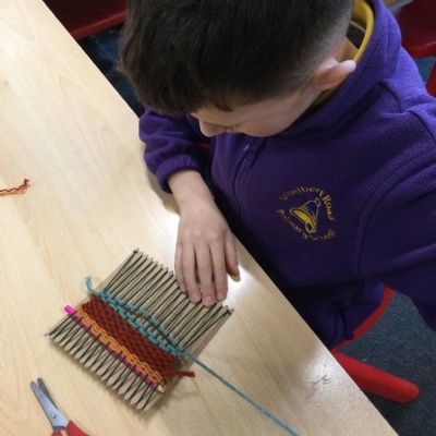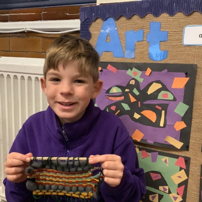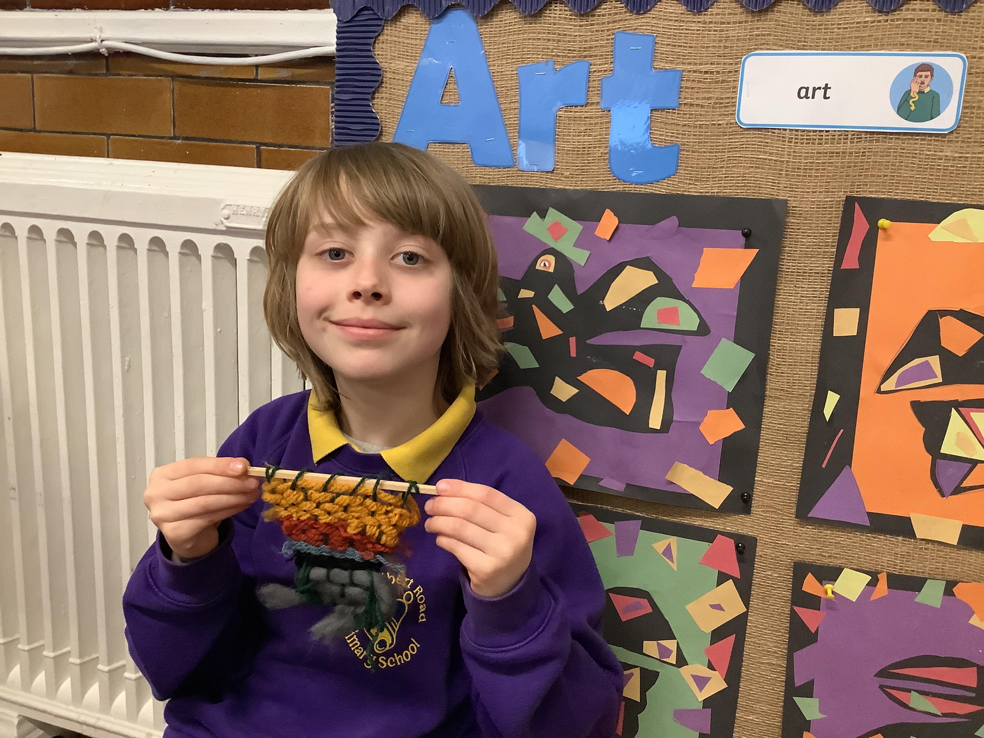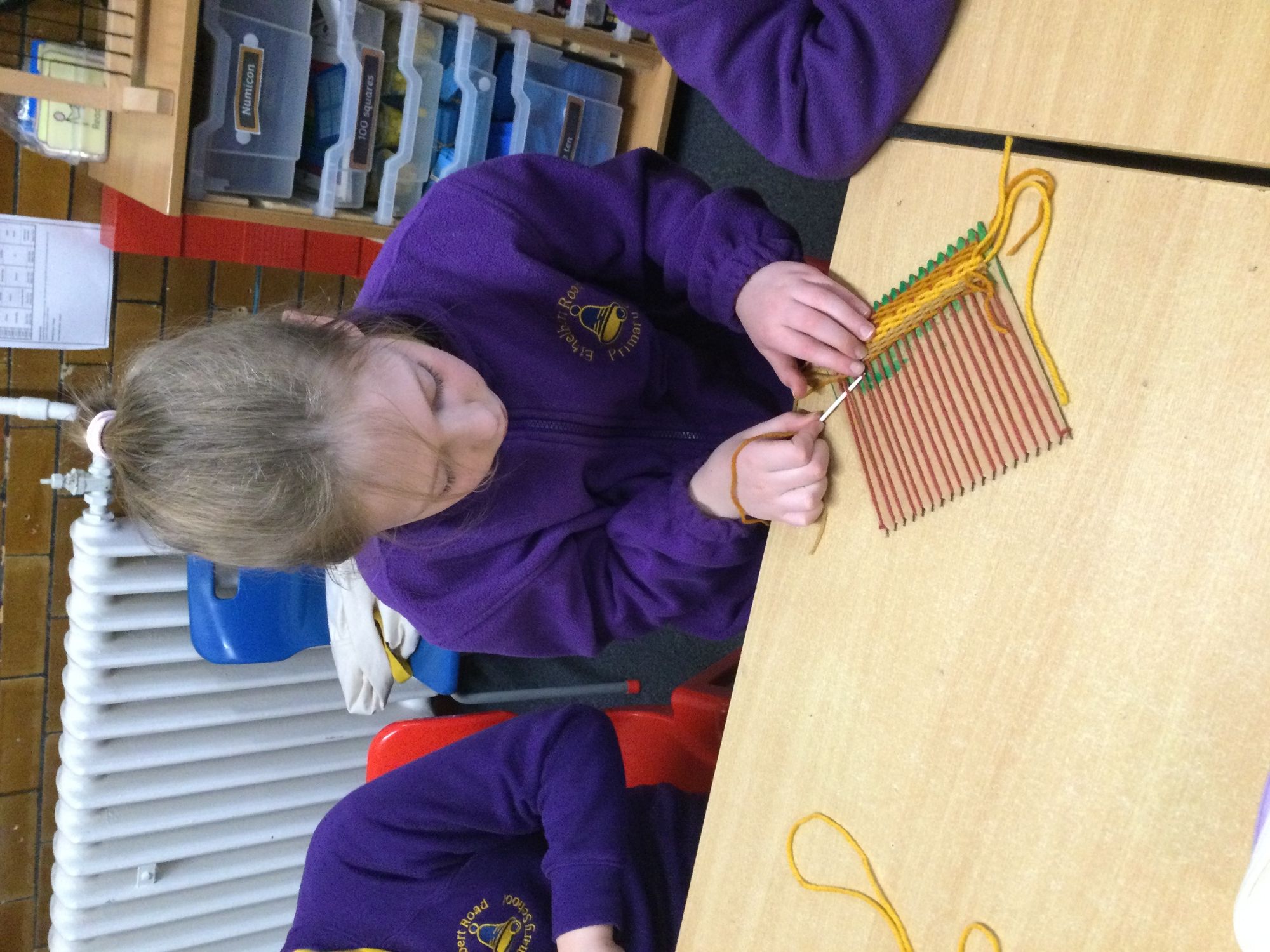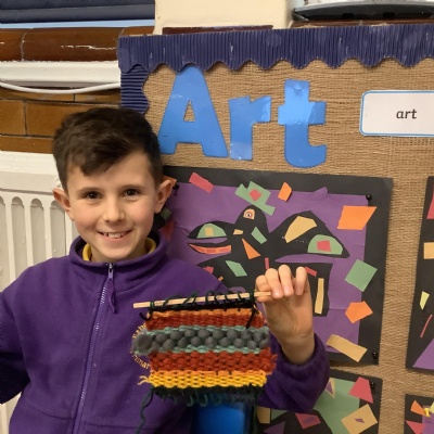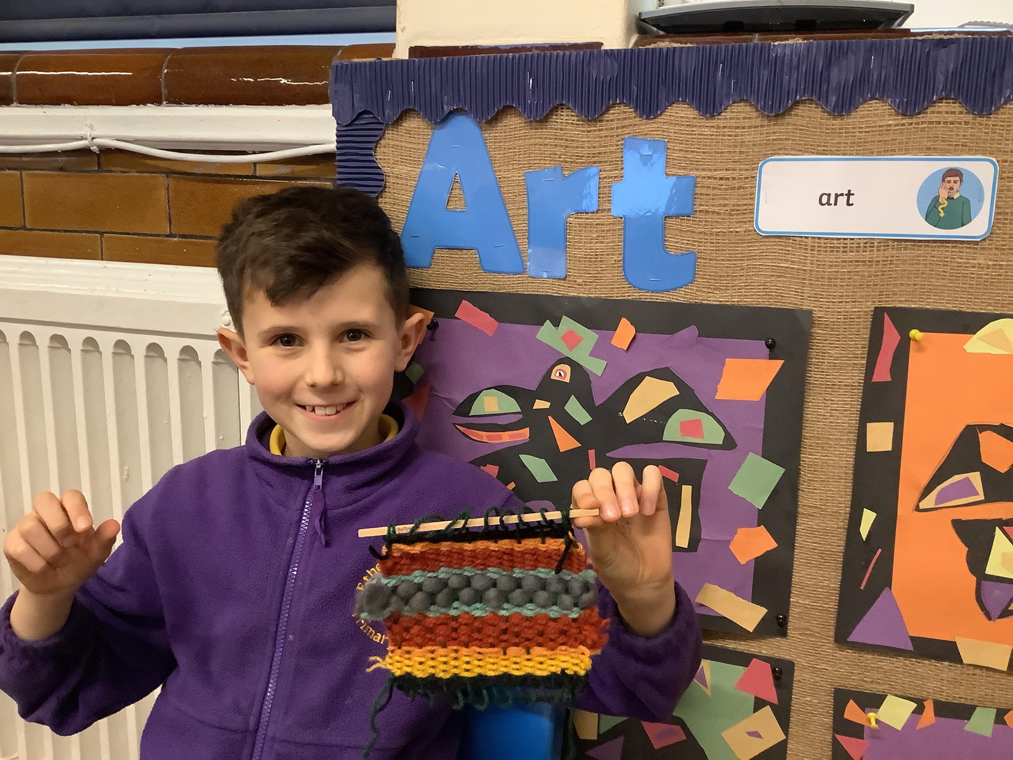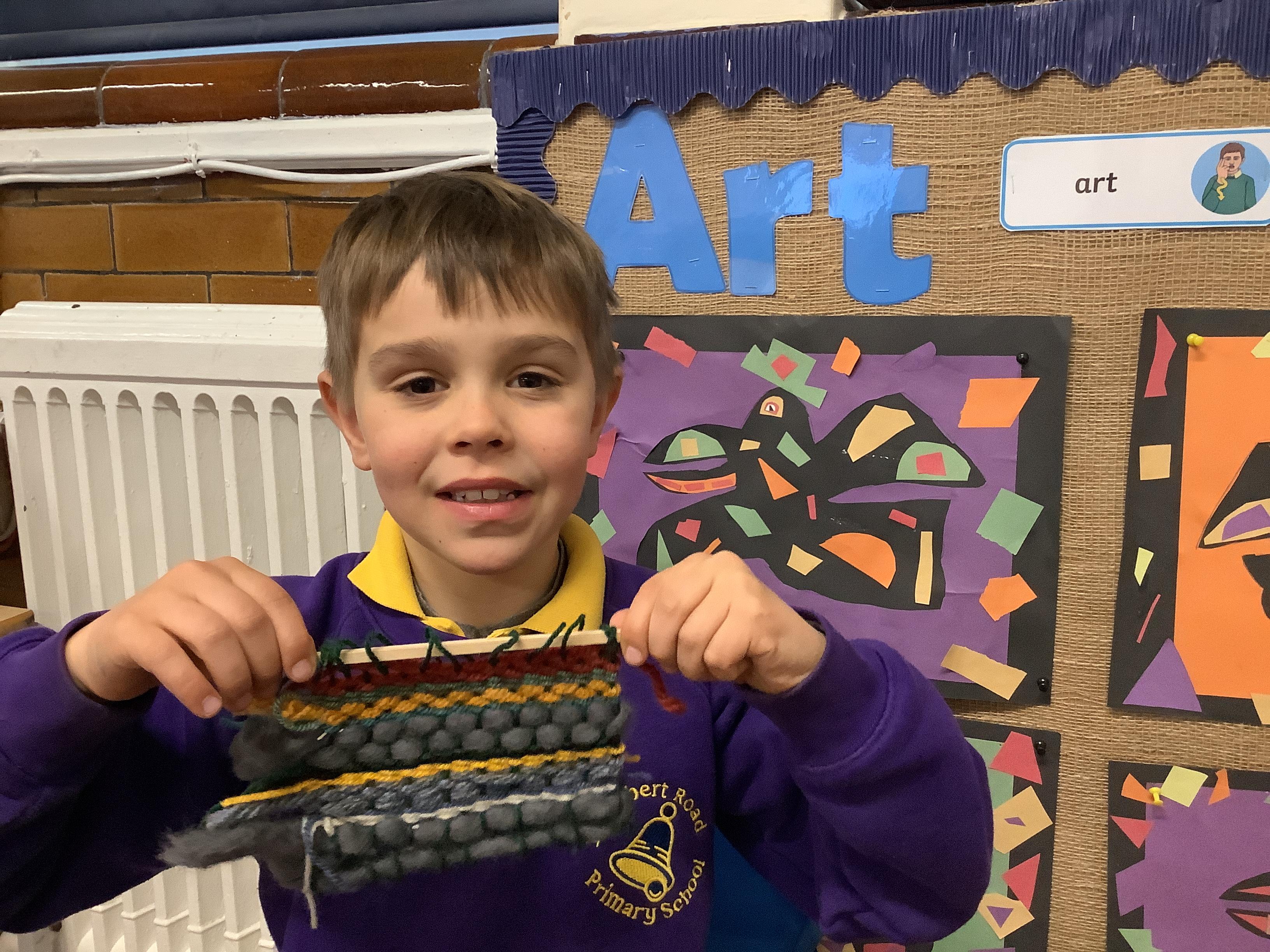 Year 4 were inspired by the textile art of Native Americans. They used wool and a cardboard loom to weave a wall hanging.