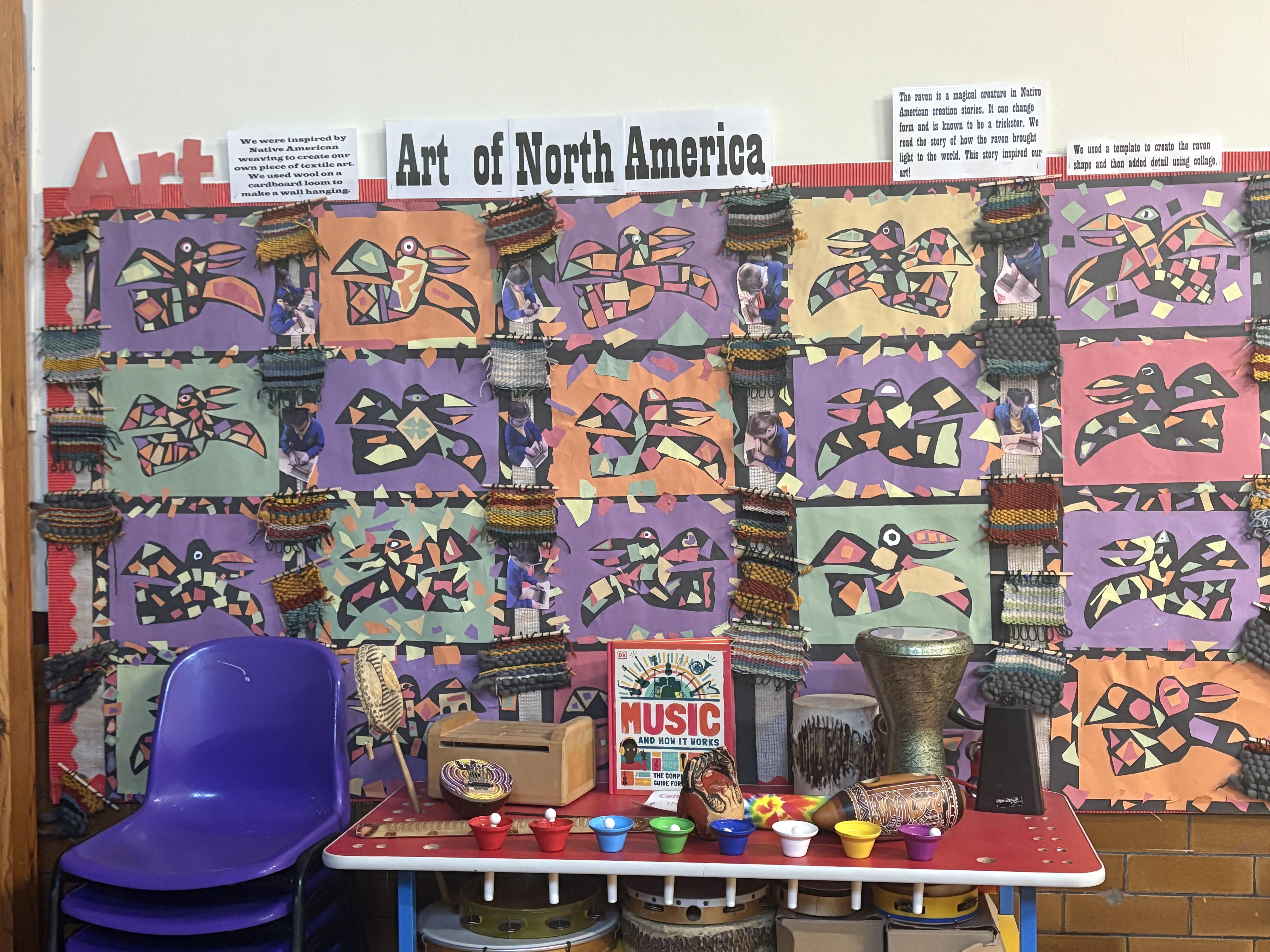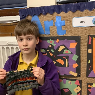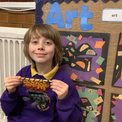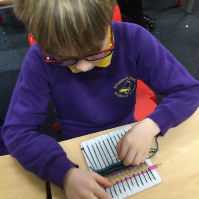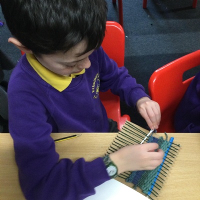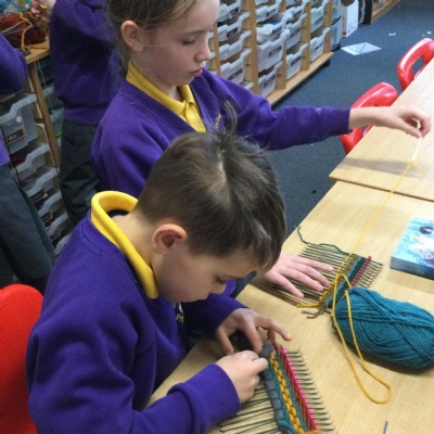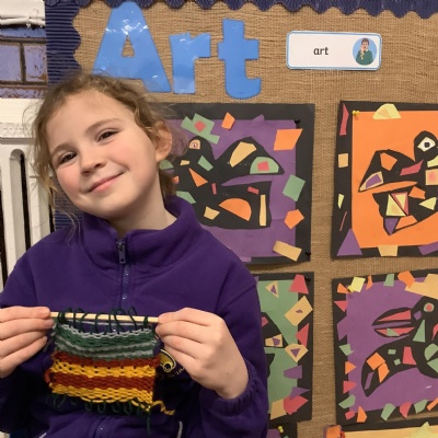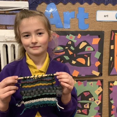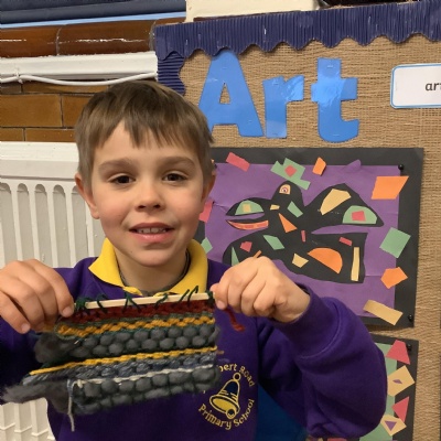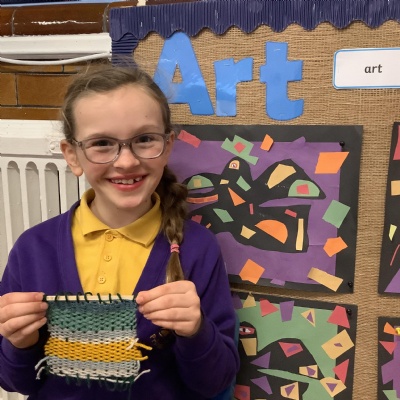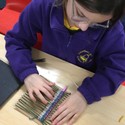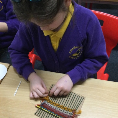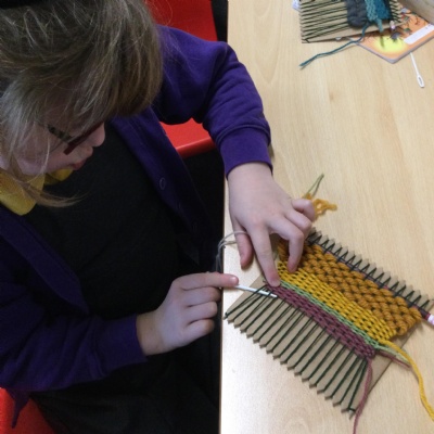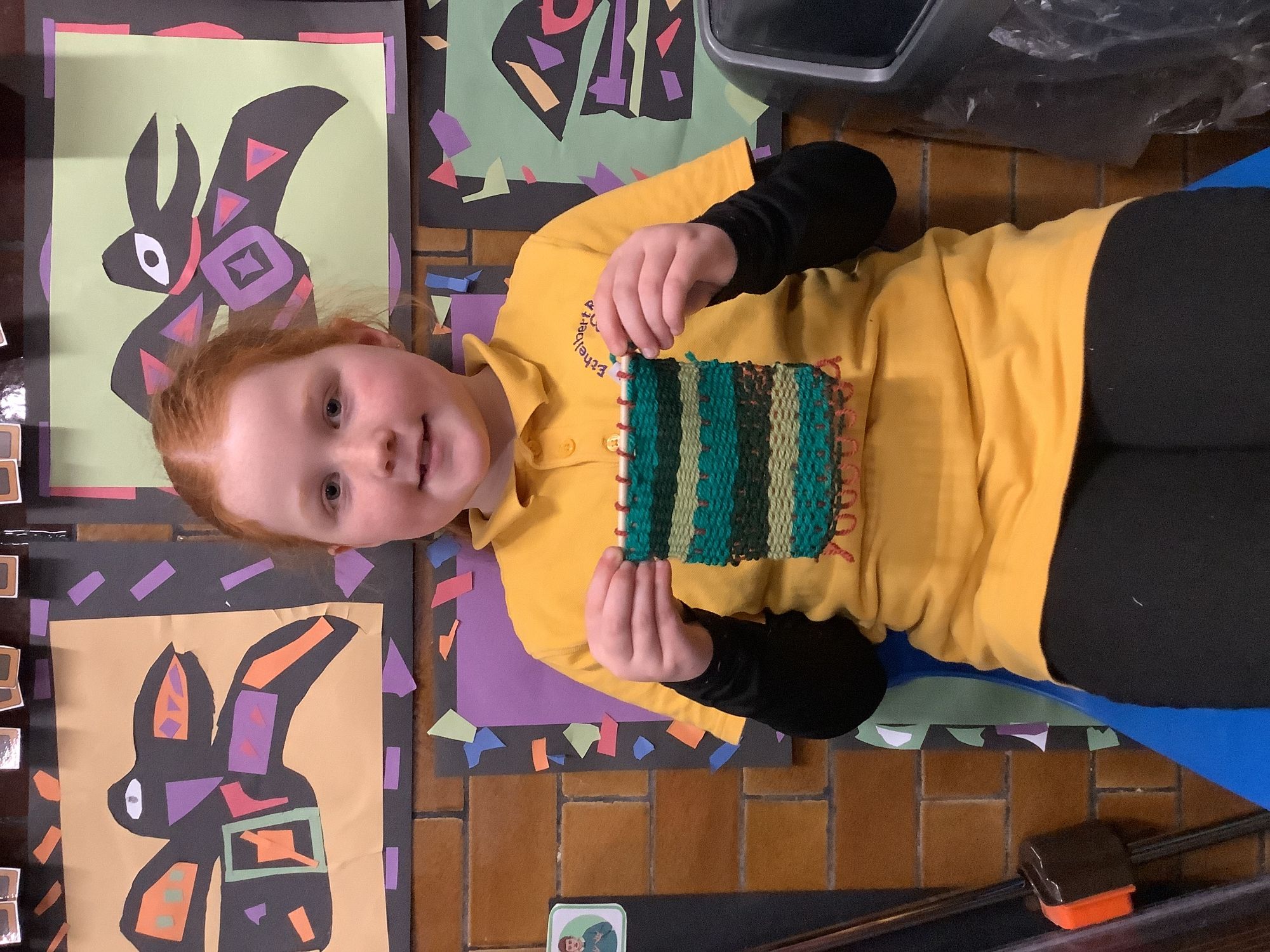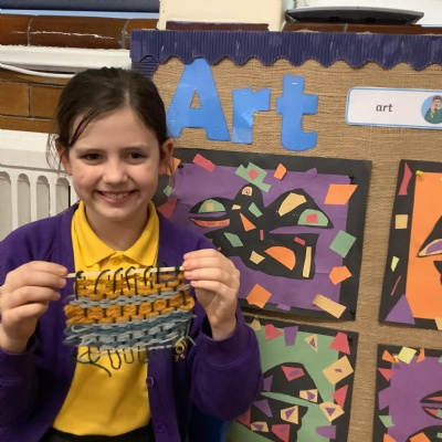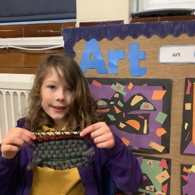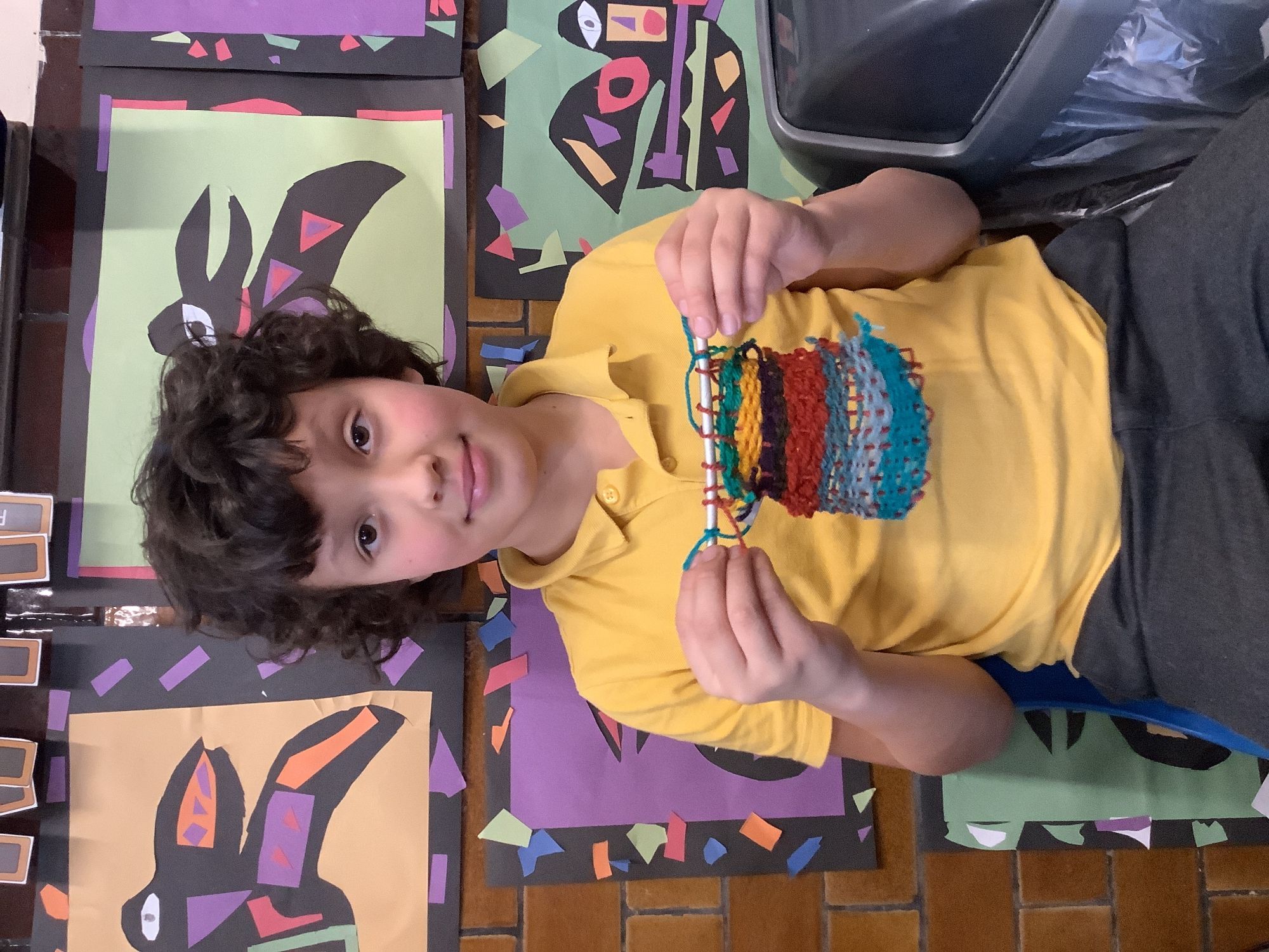 Year 4 were inspired by the textile art of Native Americans. They used wool and a cardboard loom to weave a wall hanging.