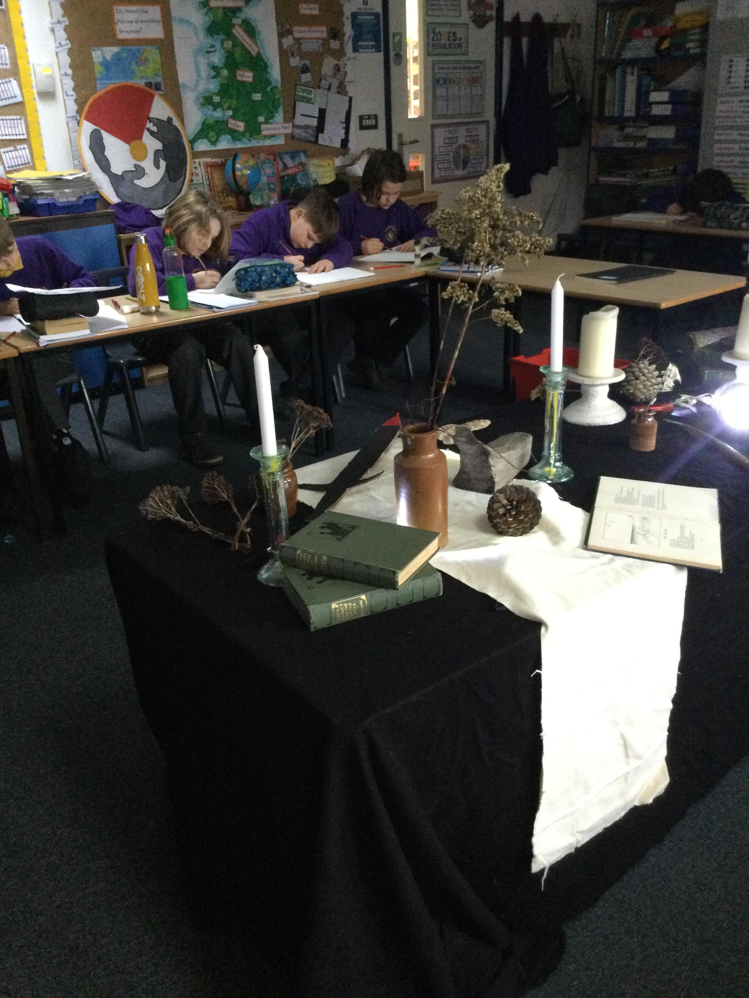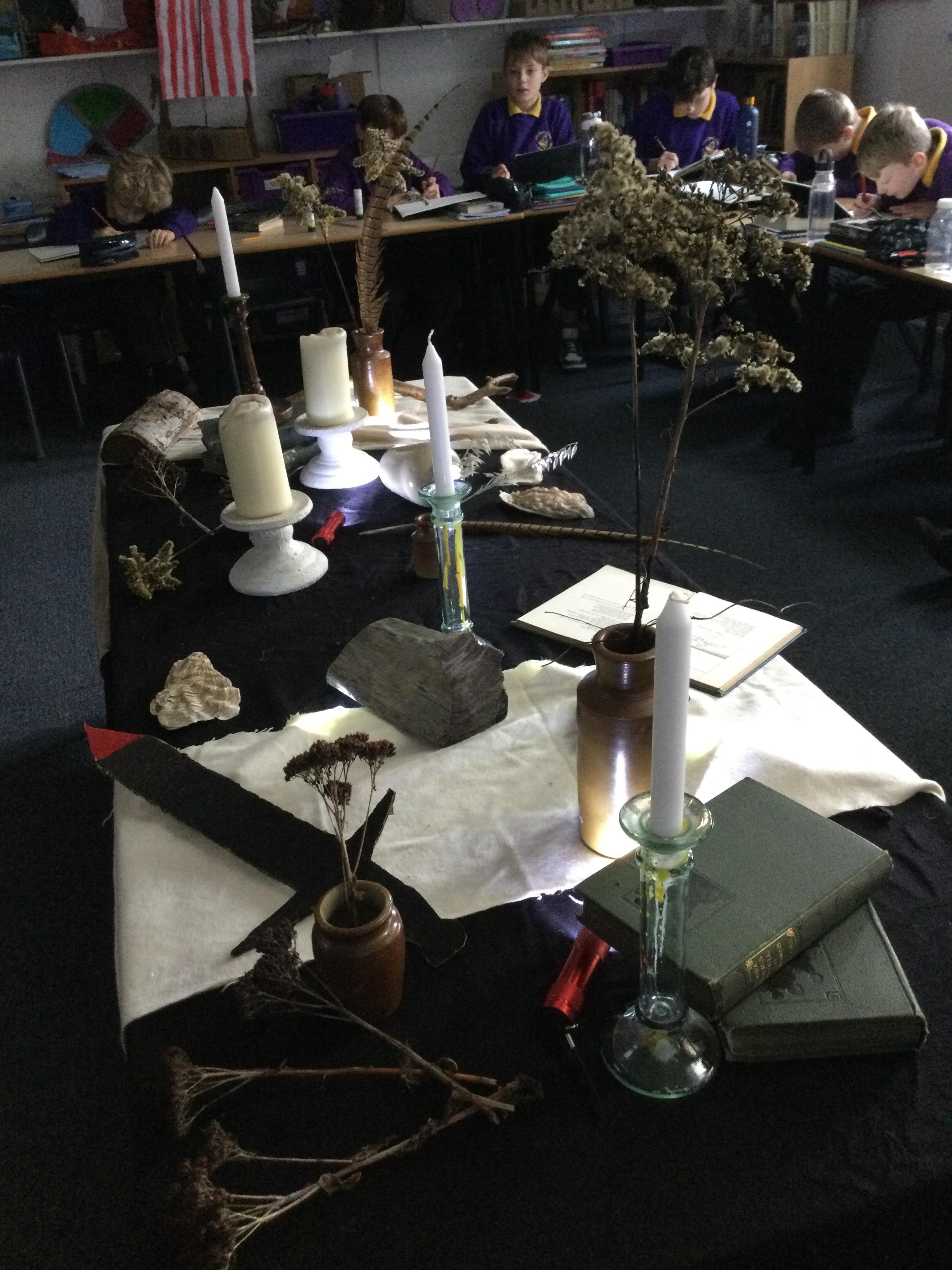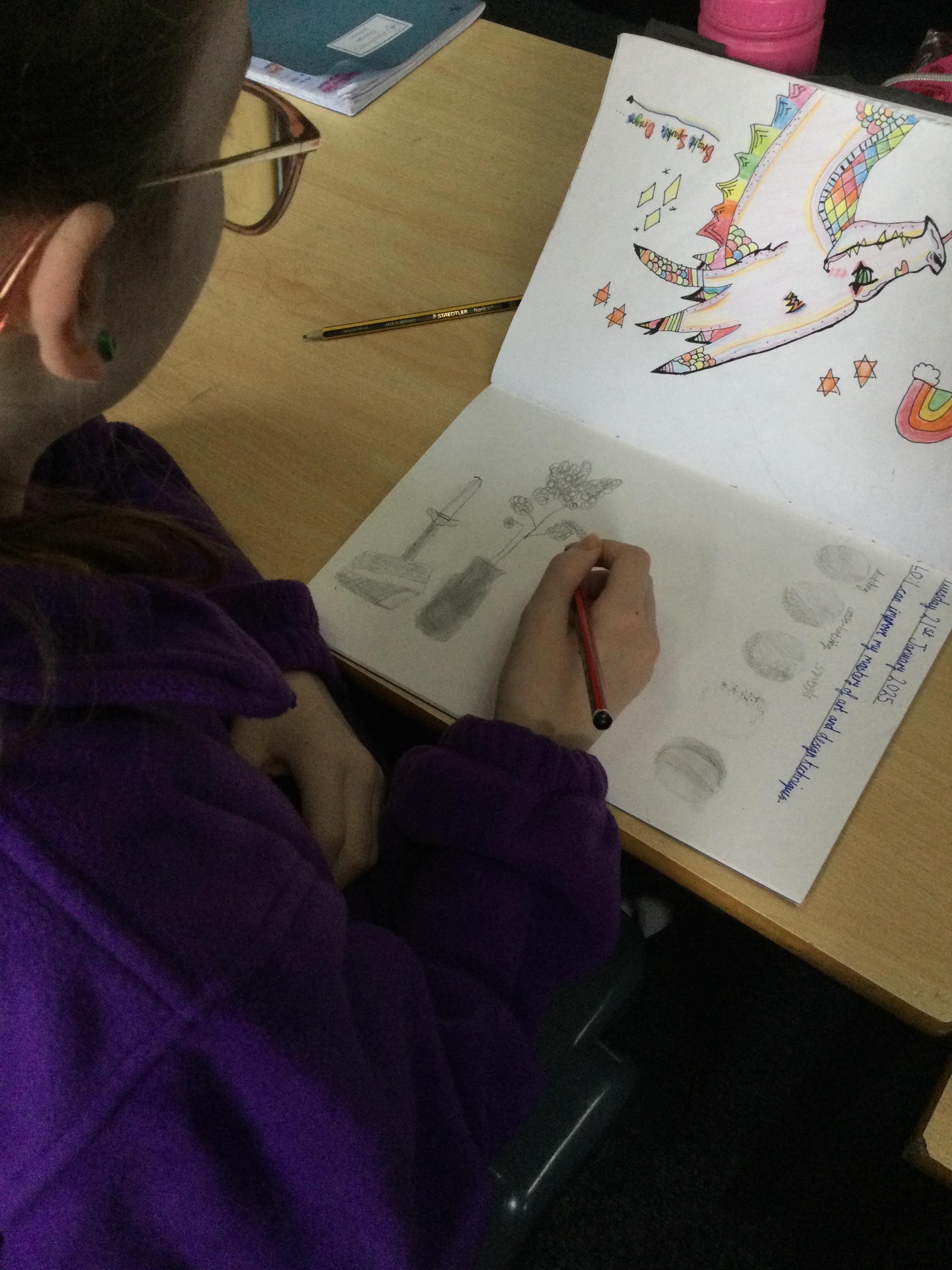 Year 6 enjoyed sketching a still life composition inspired by the themes of light and dark in Macbeth.