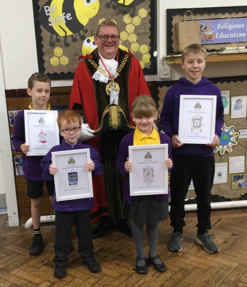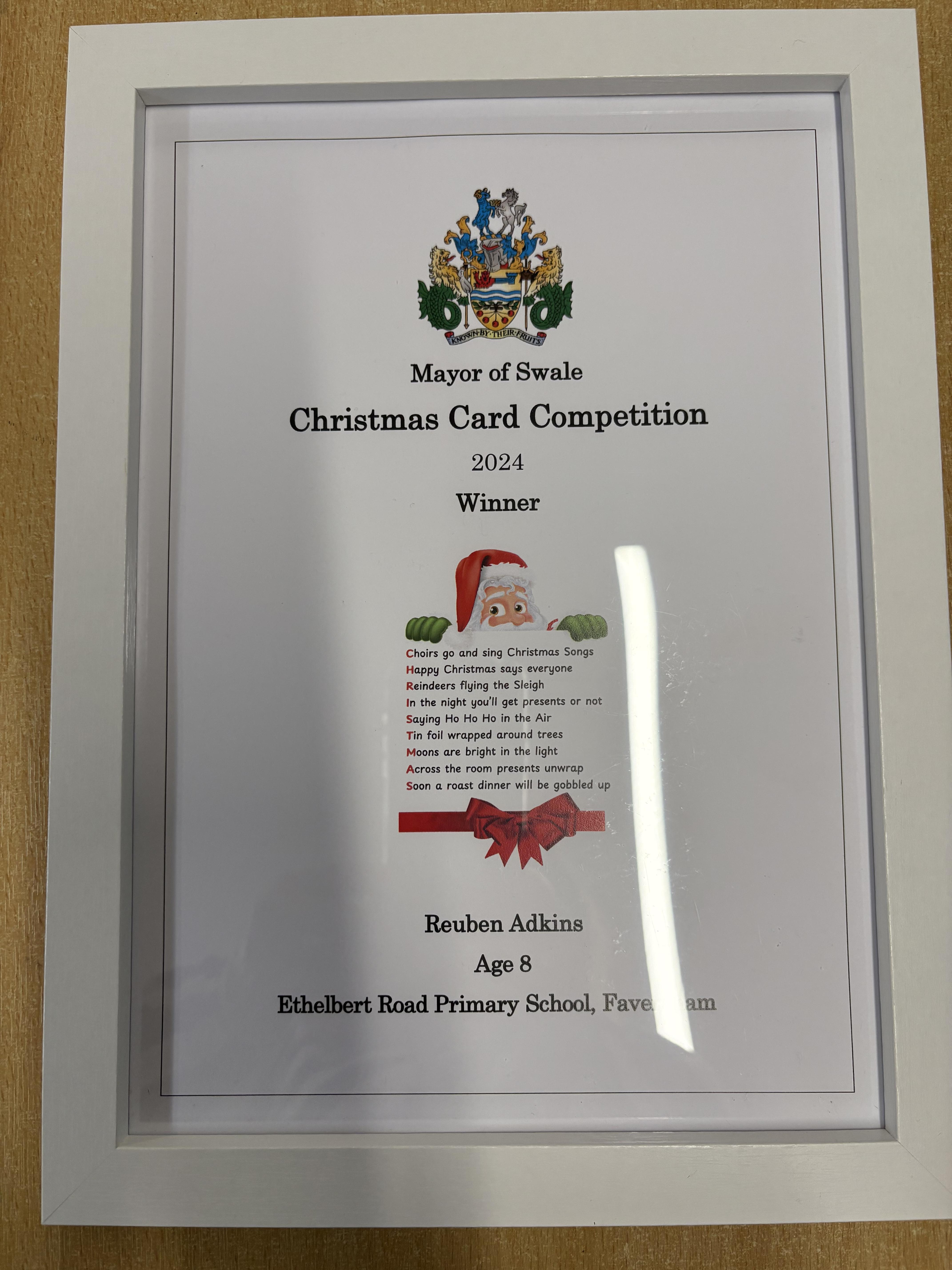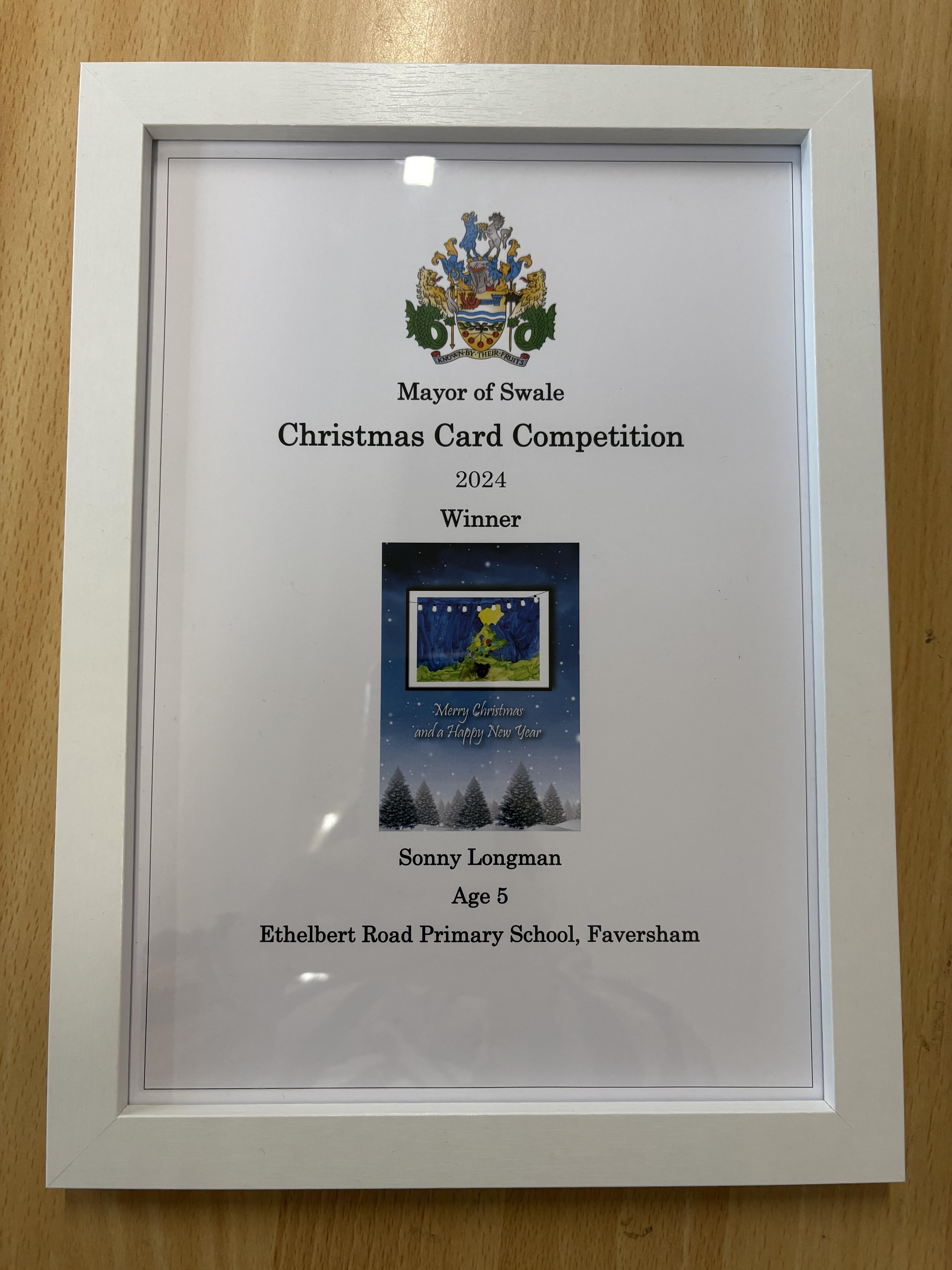 We had an exciting assembly this morning with a visit from the Mayor of Swale. Some of our classes entered a competion to design the Mayor’s Christmas card. Here are the winners: