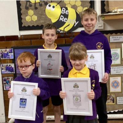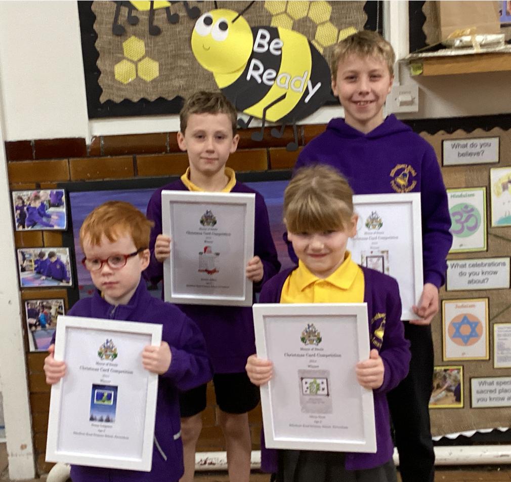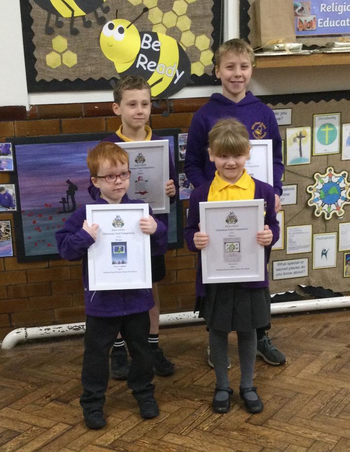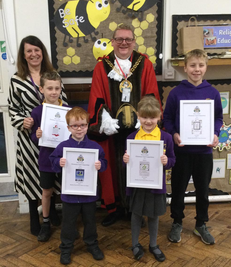 We had an exciting assembly this morning with a visit from the Mayor of Swale. Some of our classes entered a competion to design the Mayor’s Christmas card. Here are the winners: