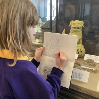 We took part in The Big Draw this term with 3 classes taking their sketchbooks on their school trips. They completed drawings in The Ropery at the Historic Dockyard, Maidstone Museum and Kent Life. Mrs Willis made thaumatropes with years 2,4 & 5 which went down really well! Overall,120 children took part in drawing activities whilst out at about. Well done everyone.