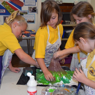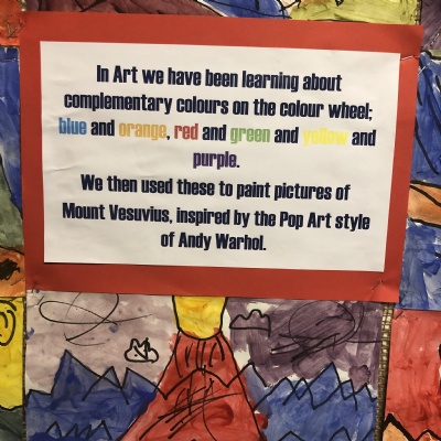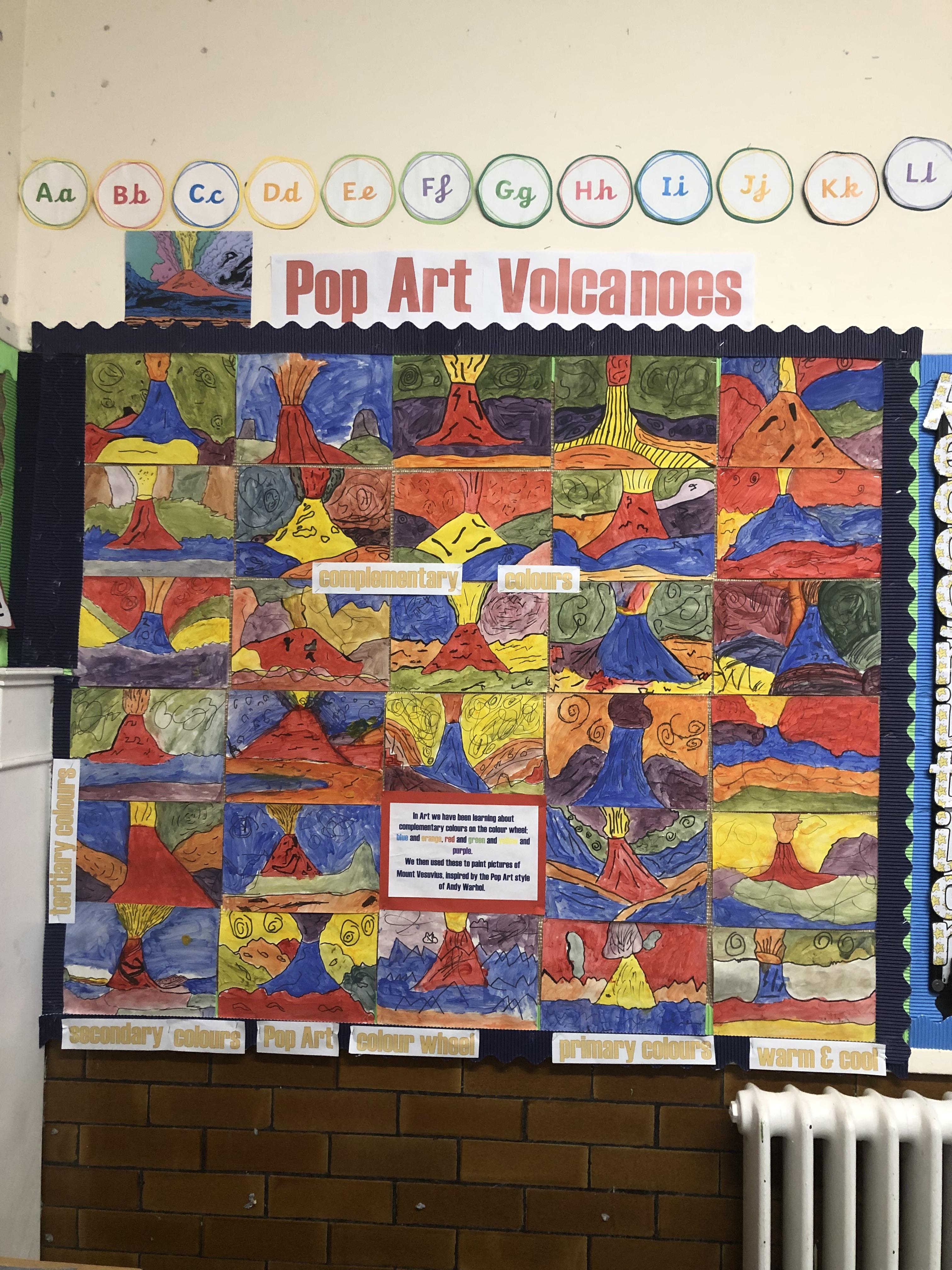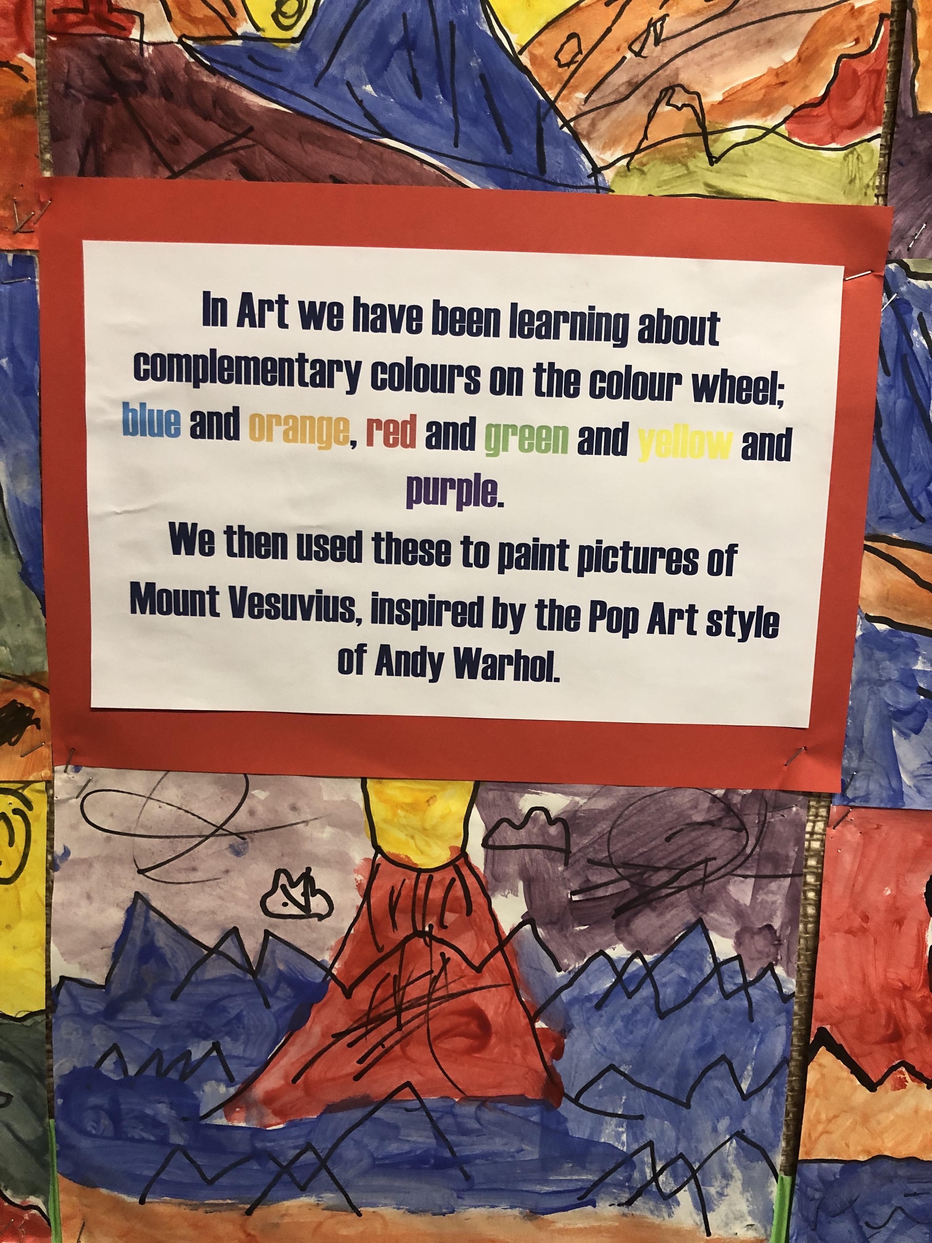 Year 3 have been learning about complimentary colours on the colour wheel. Andy Warhol was the inspiration for their art work linked to their learning about volcanoes.