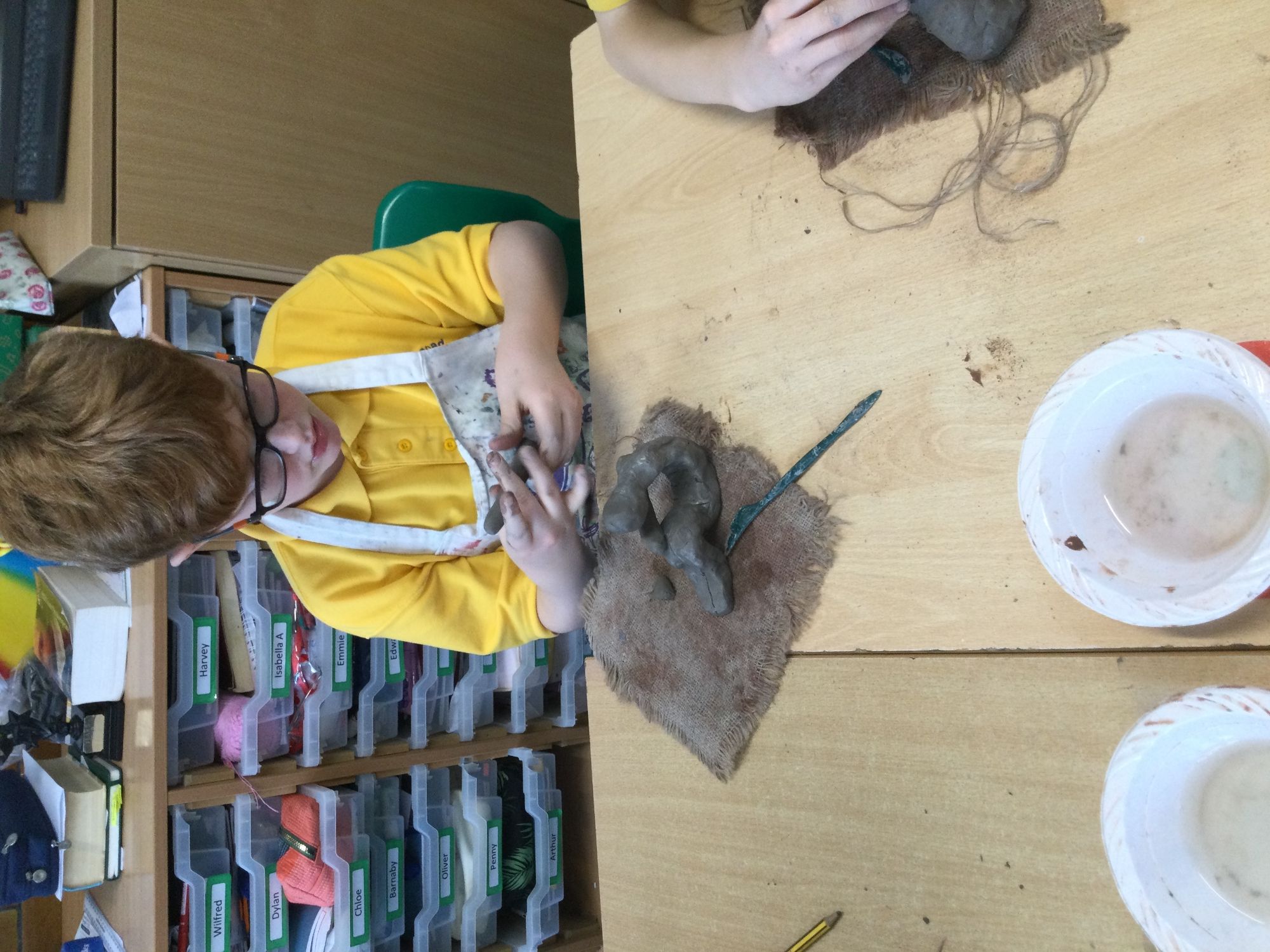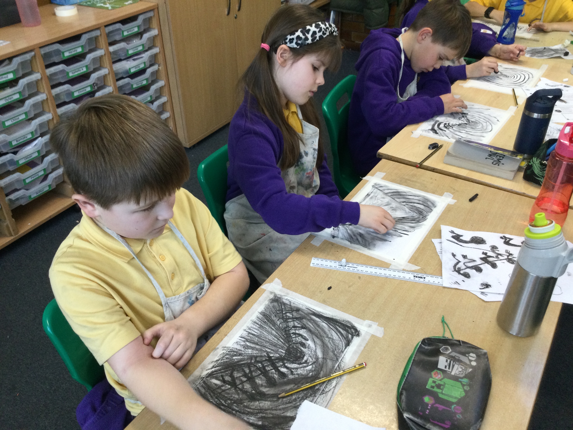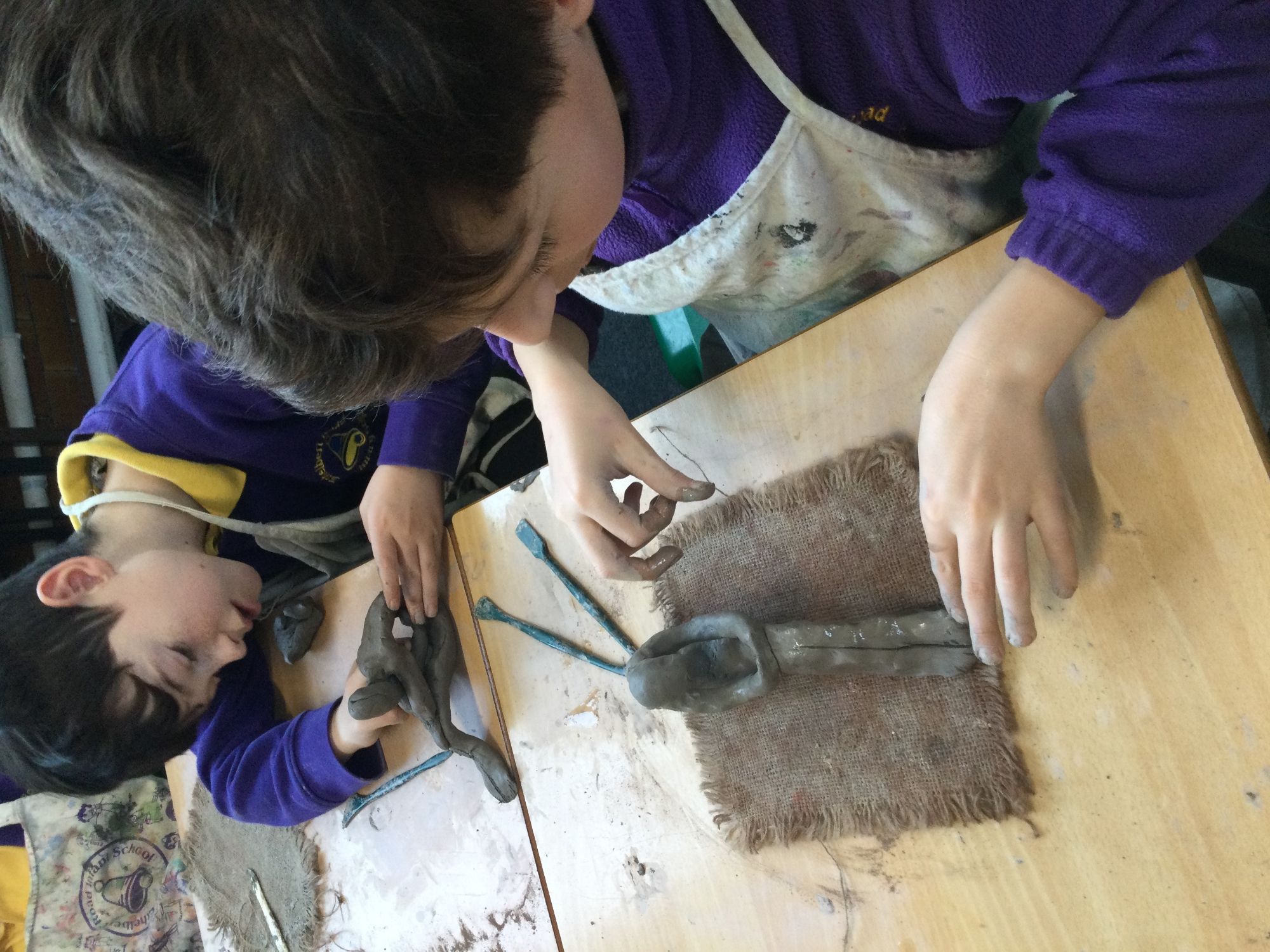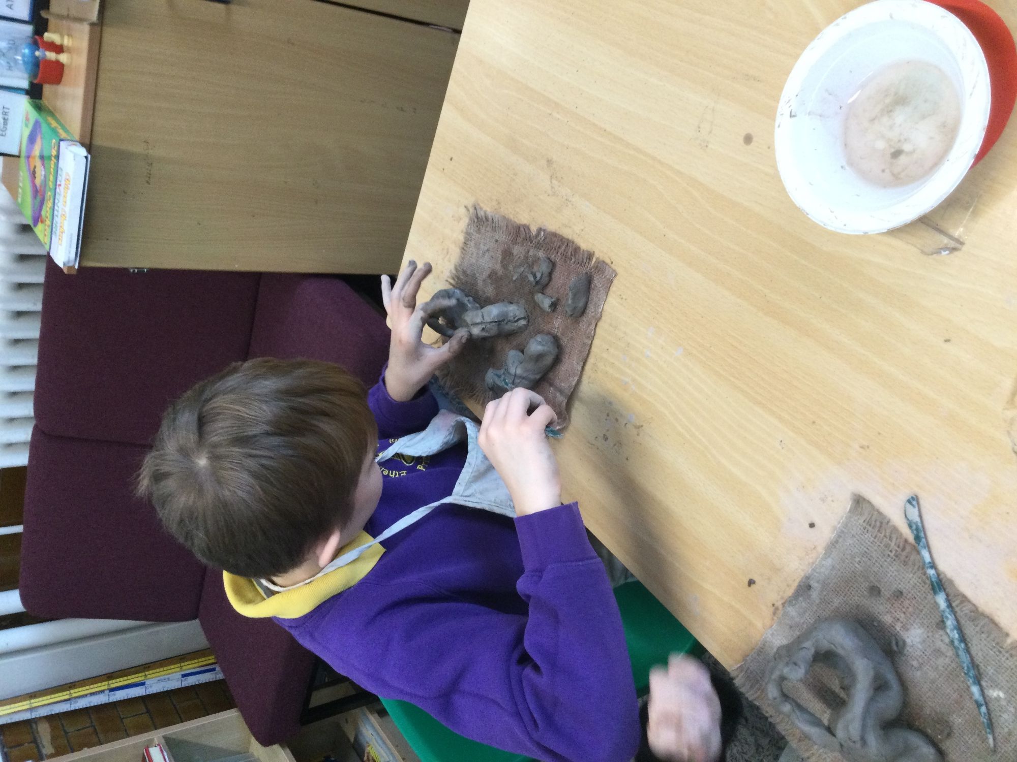 As part of our WW2 Topic, years 5 & 6 have been learning about the work of war artist, Henry Moore. They studied his wartime tunnel drawings and created their own pictures using charcoal and chalk. They used clay to sculpt a figure seated in the tunnels and thought carefully about how we can convey emotions through art.