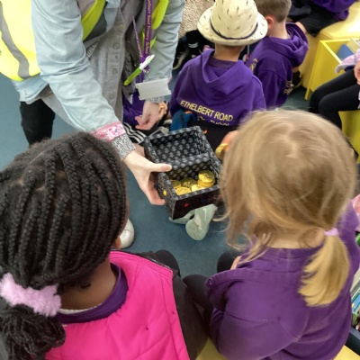Year 1 had a wonderful time on their Treasure Hunt around Faversham Town. They solved the clues while visiting various Faversham landmarks. They discussed the human and physical features and spent some time sketching the Guildhall. They found the treasure at the library and enjoyed sharing a story while we were there.