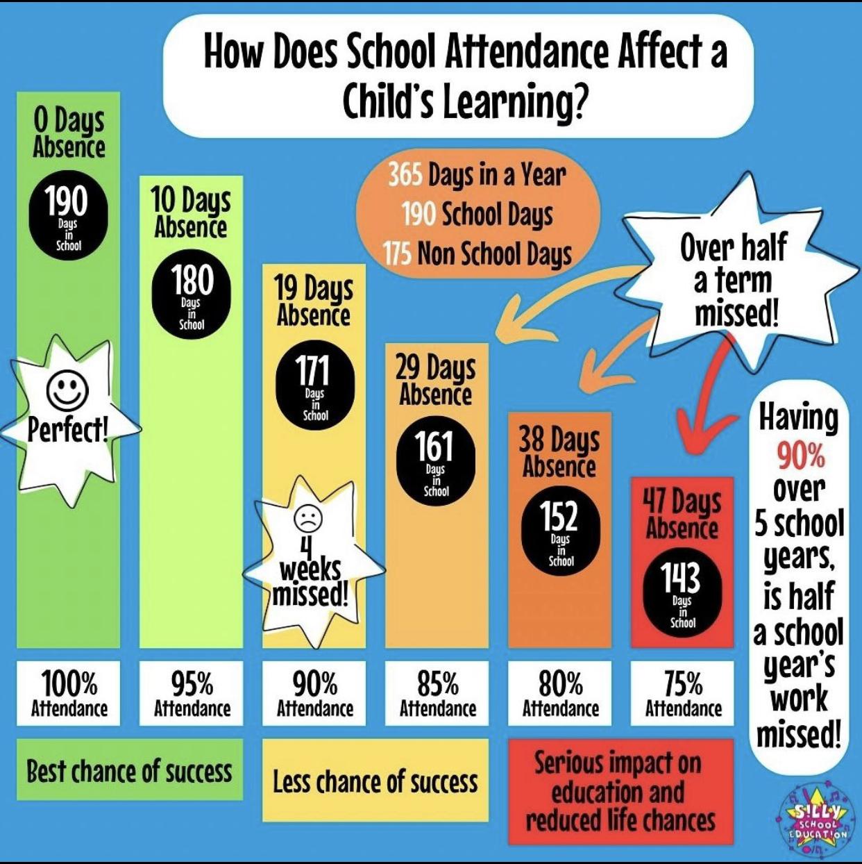• We will work in close collaboration with parents to achieve our aim of 100% attendance.