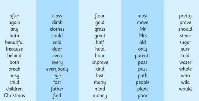 Common Exception Words:
