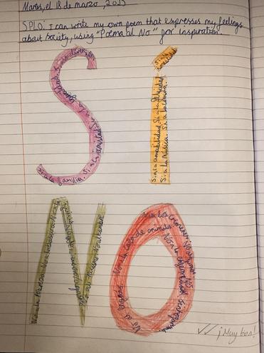 We will be using dictionaries to support our translation work and will write our own poem with the same structure as Fuertes' poem called "Poema al No".