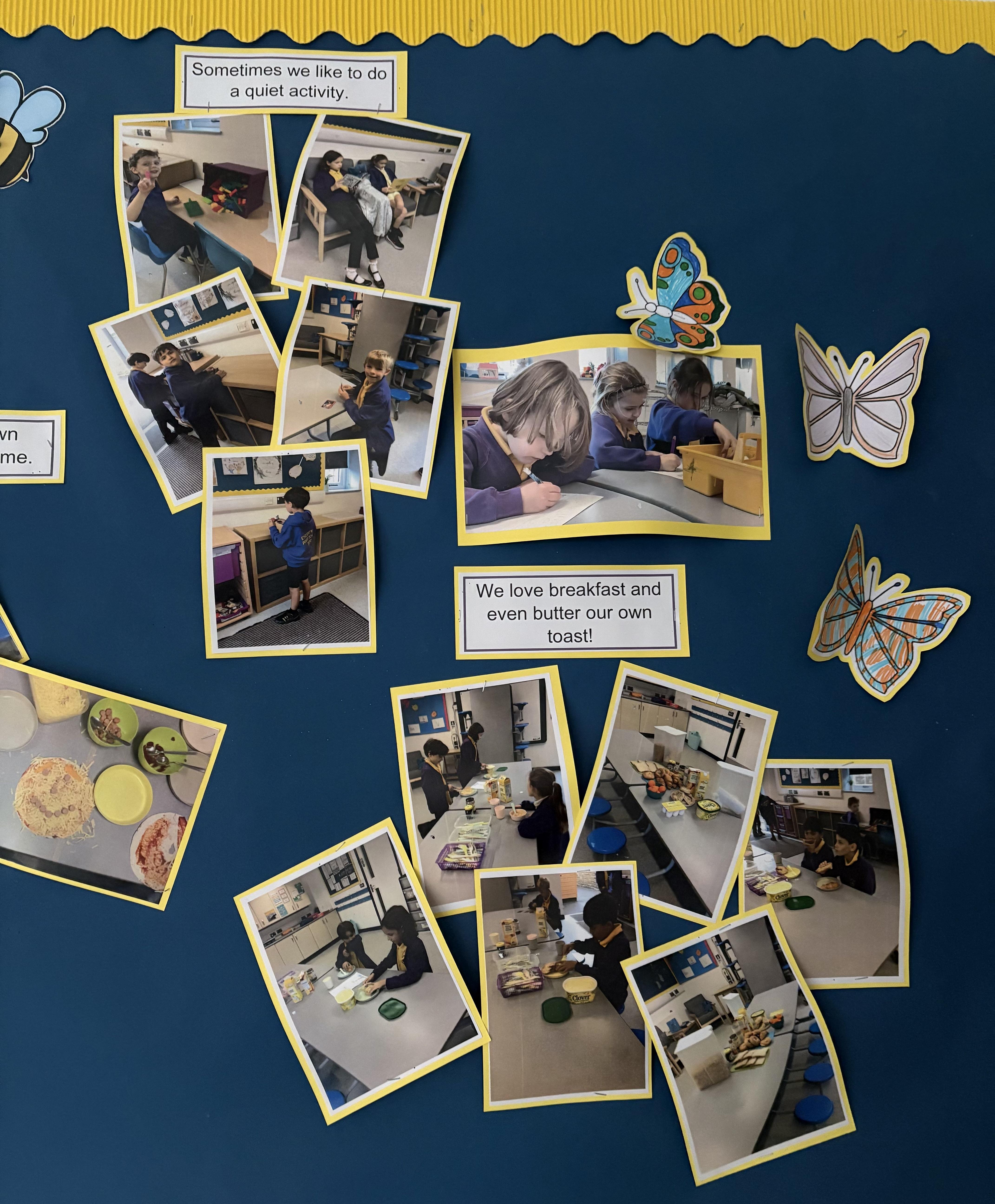 Meal times are an important time for children to socialise. Children at Breakfast Club are offered a choice of cereal, toast, fruit or yoghurt.